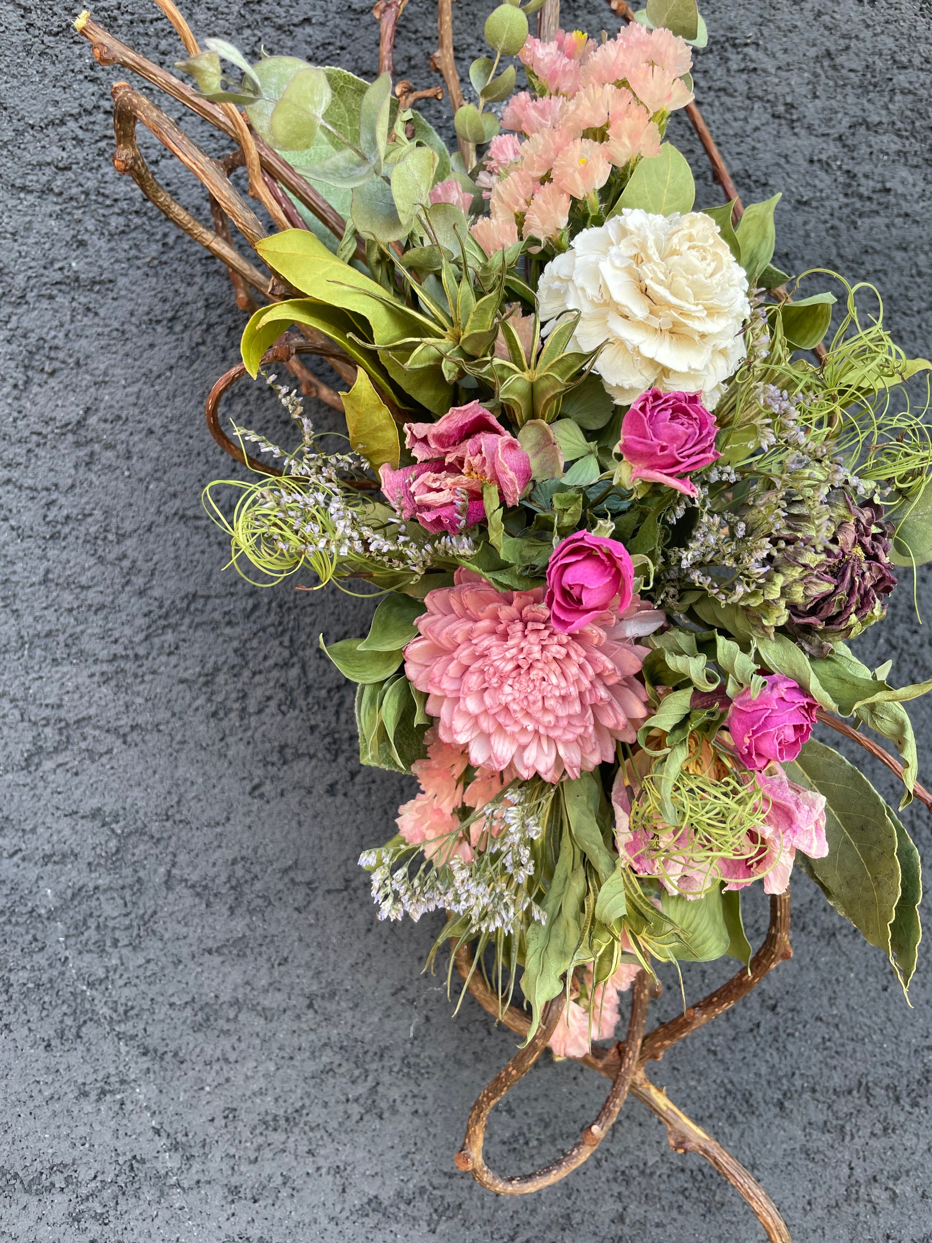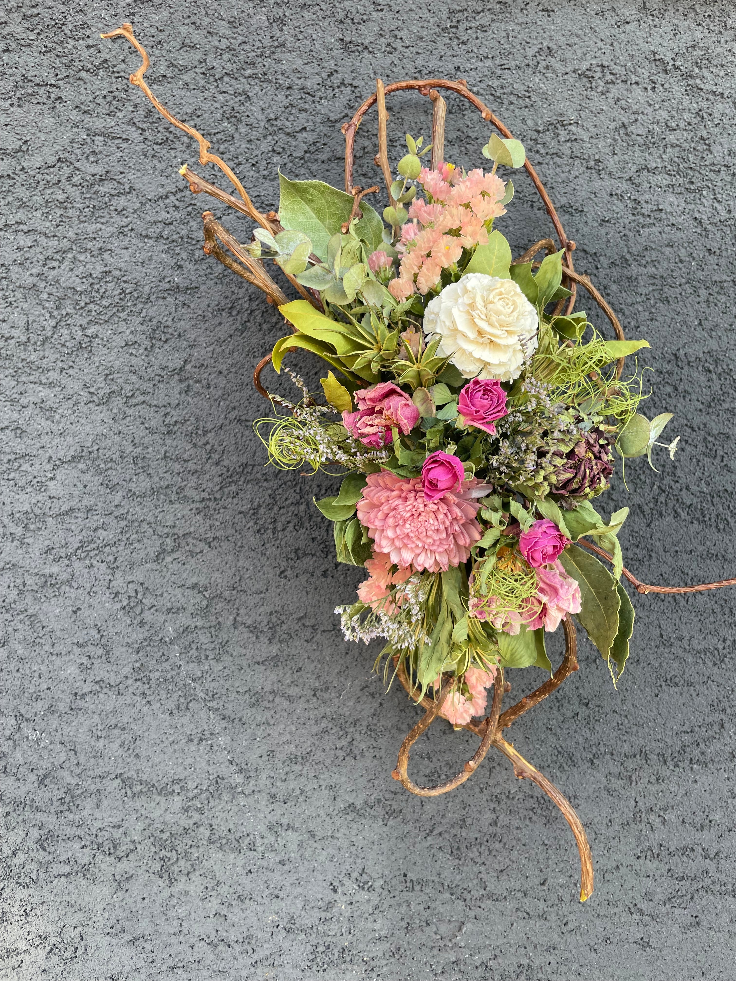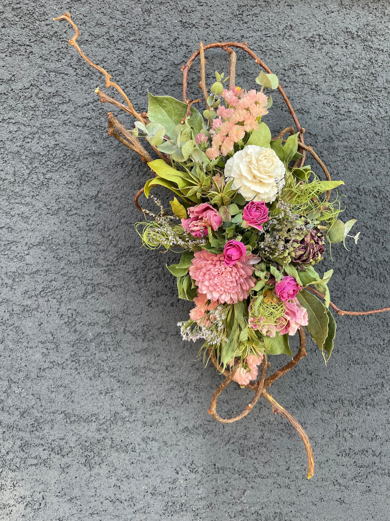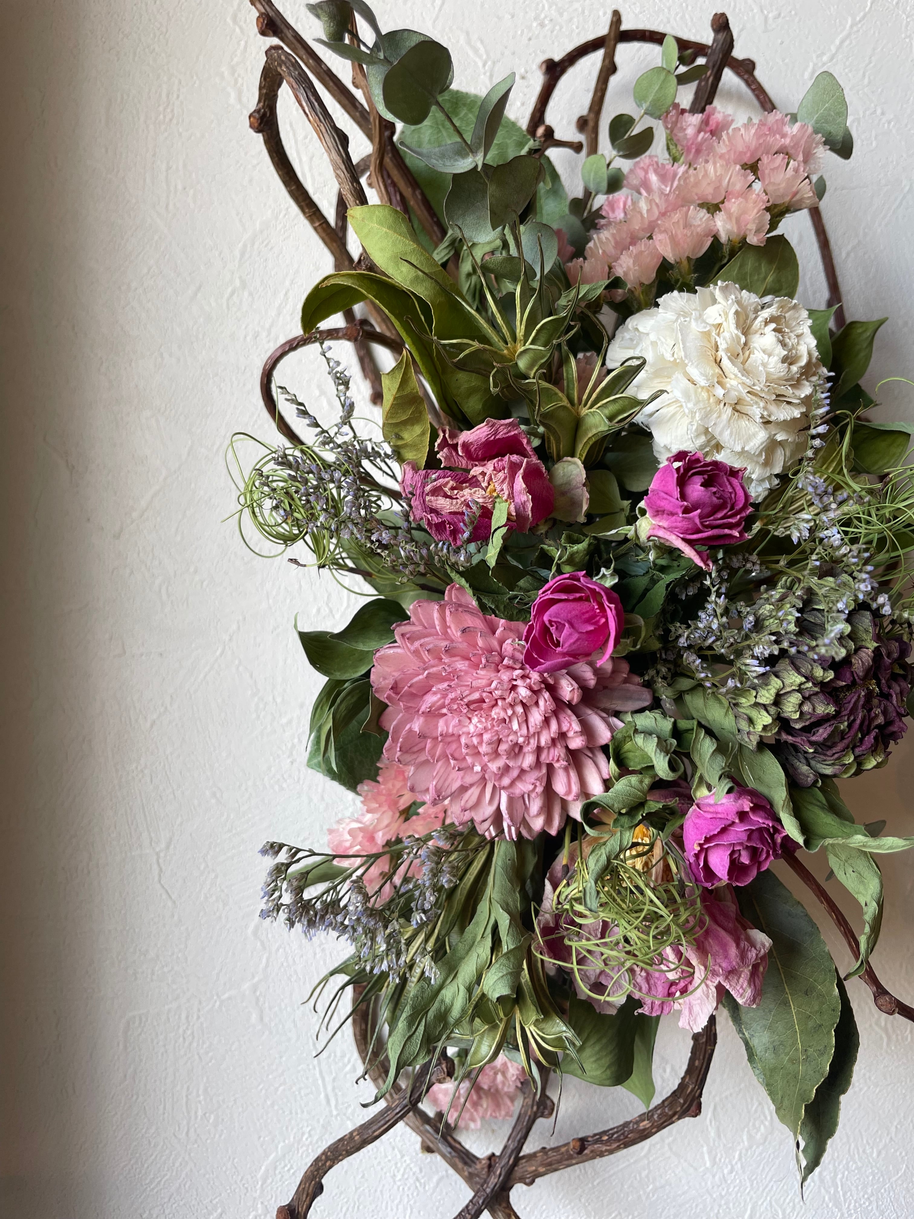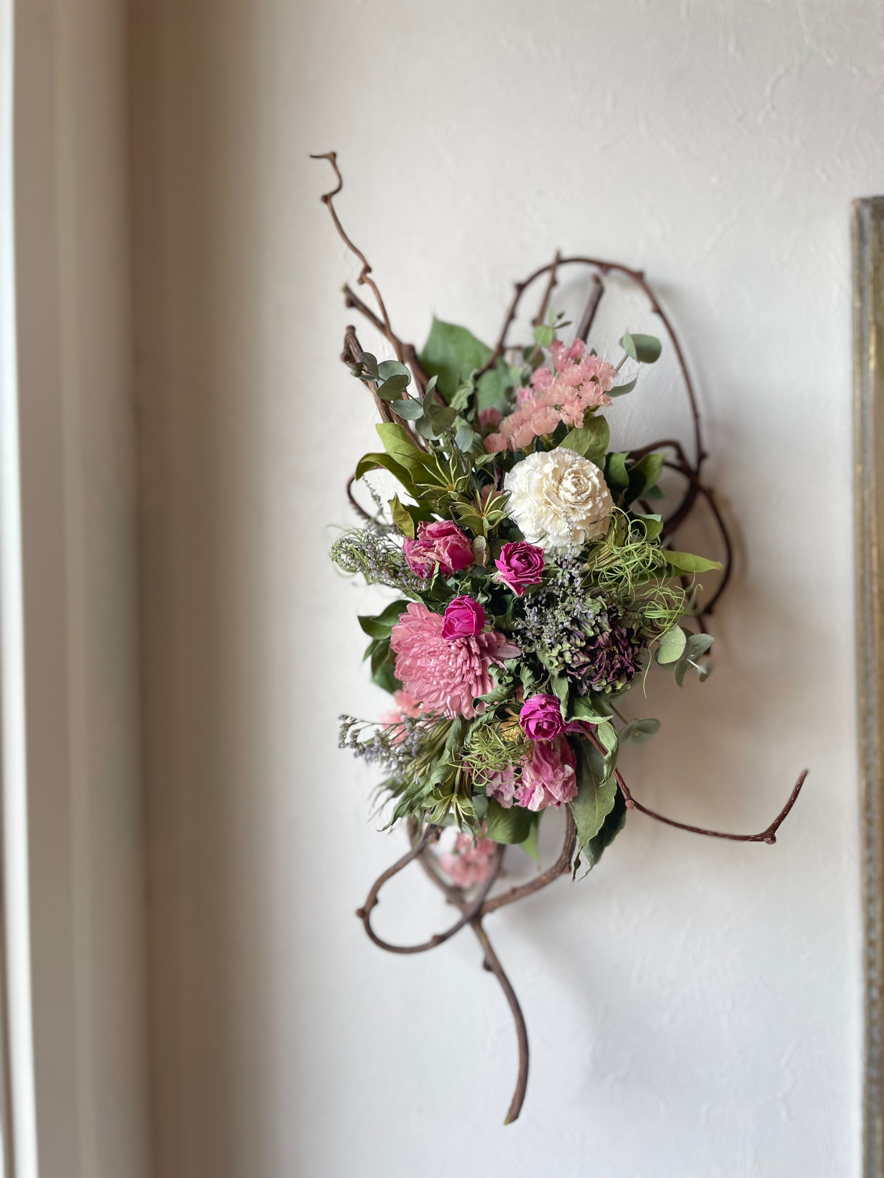 壁にかけても置いて飾るのも素敵なアレンジメントです。