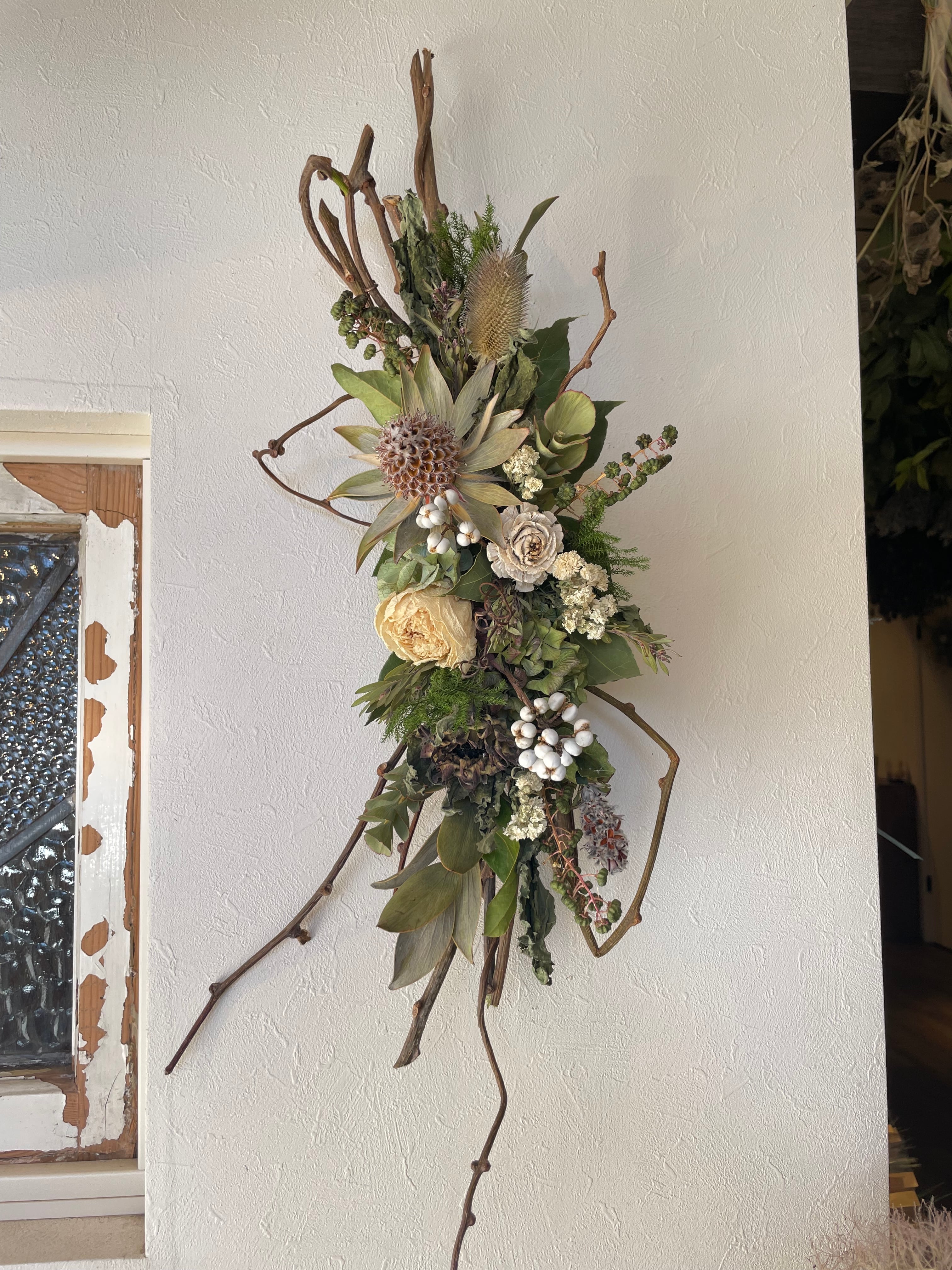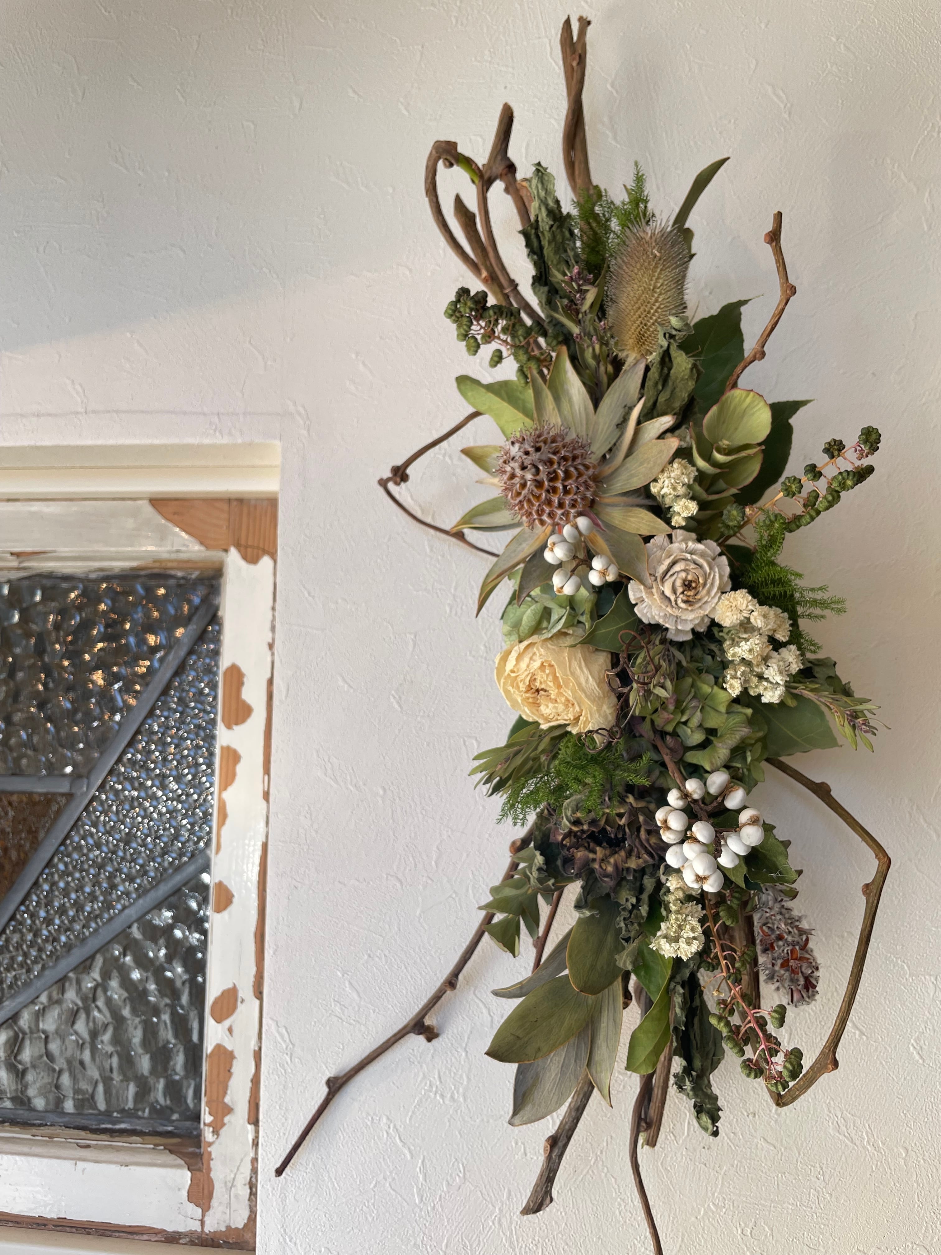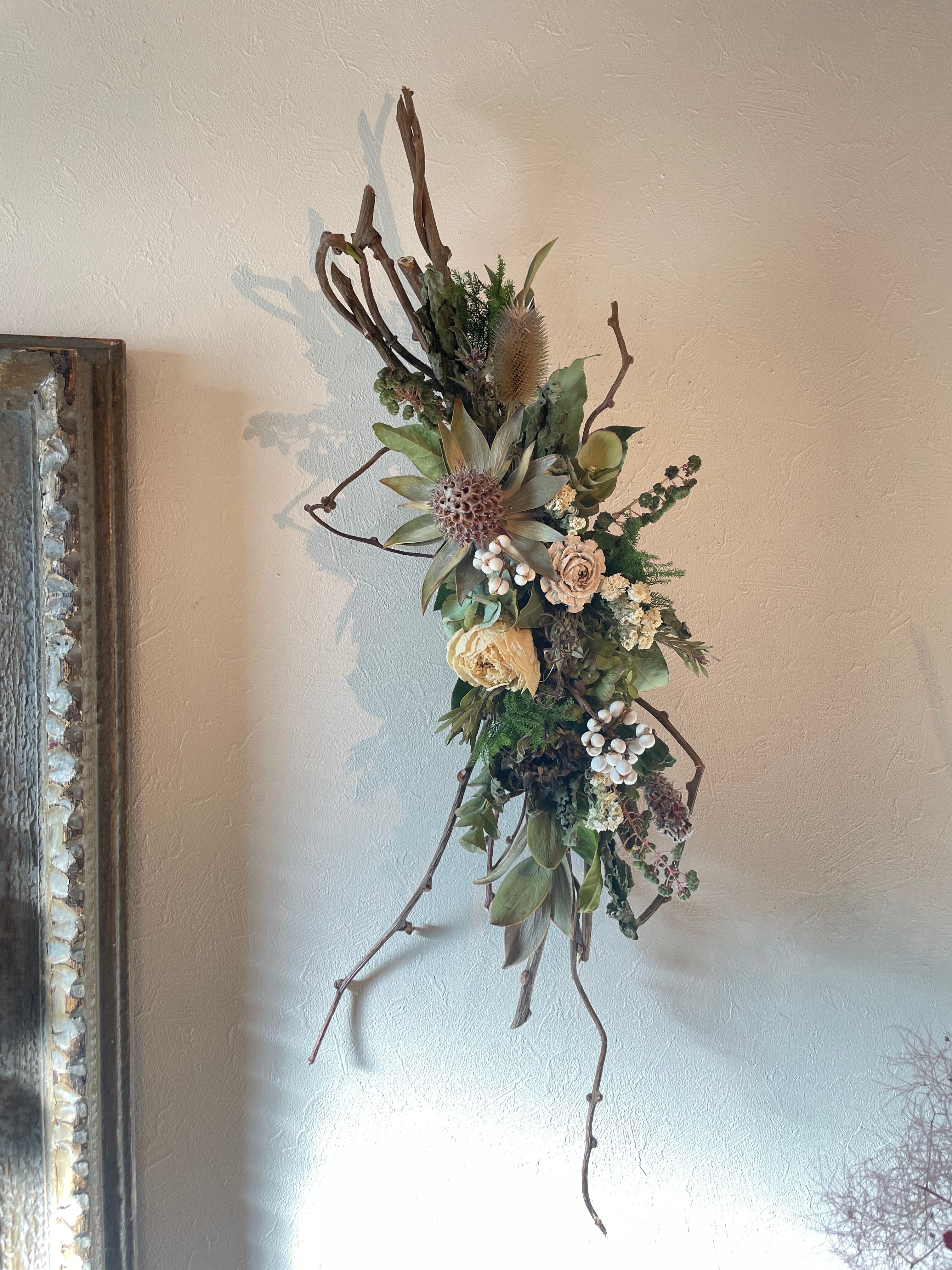 壁掛けはもちろん、置いて飾ることもできるアレンジメント。ギフトにもお勧めです。