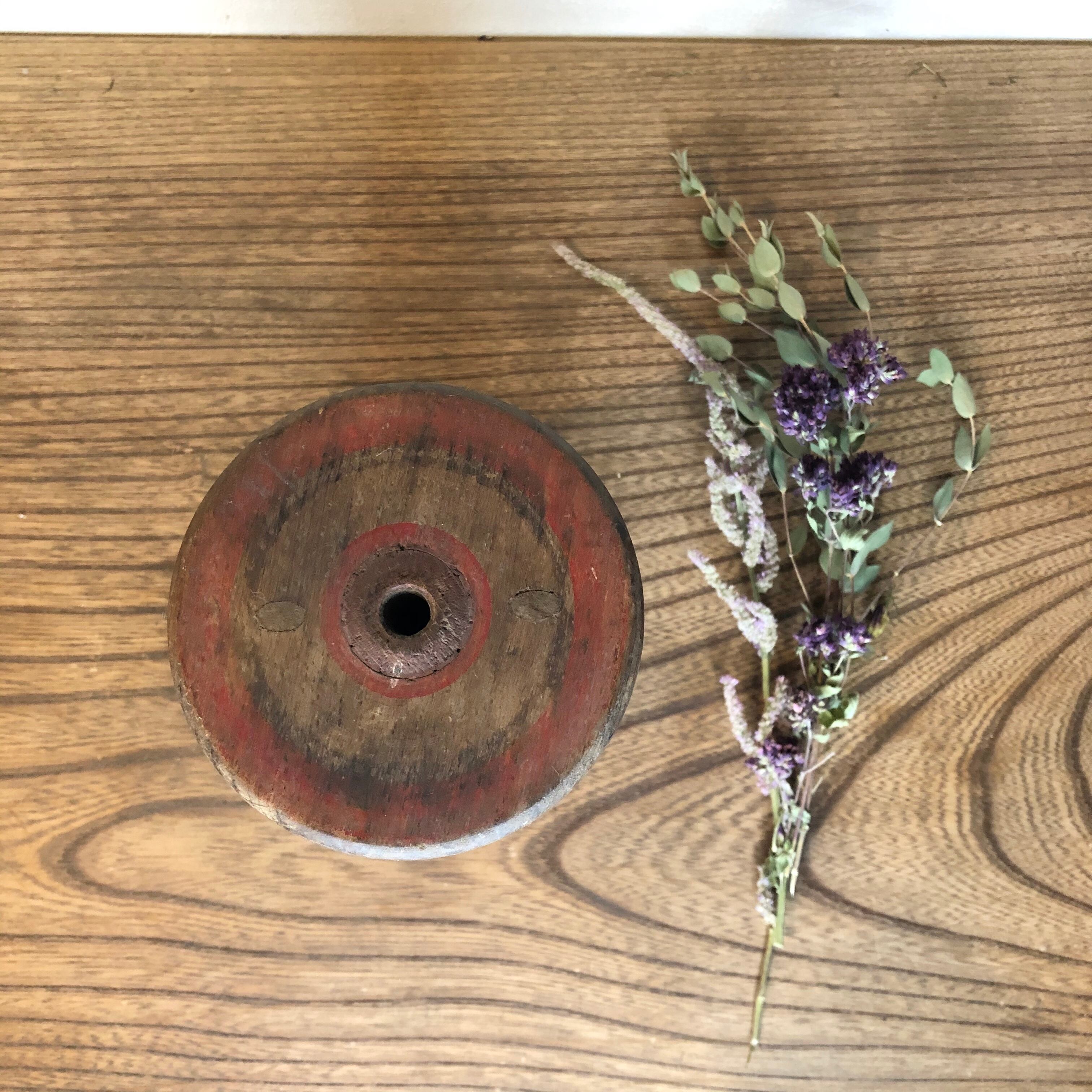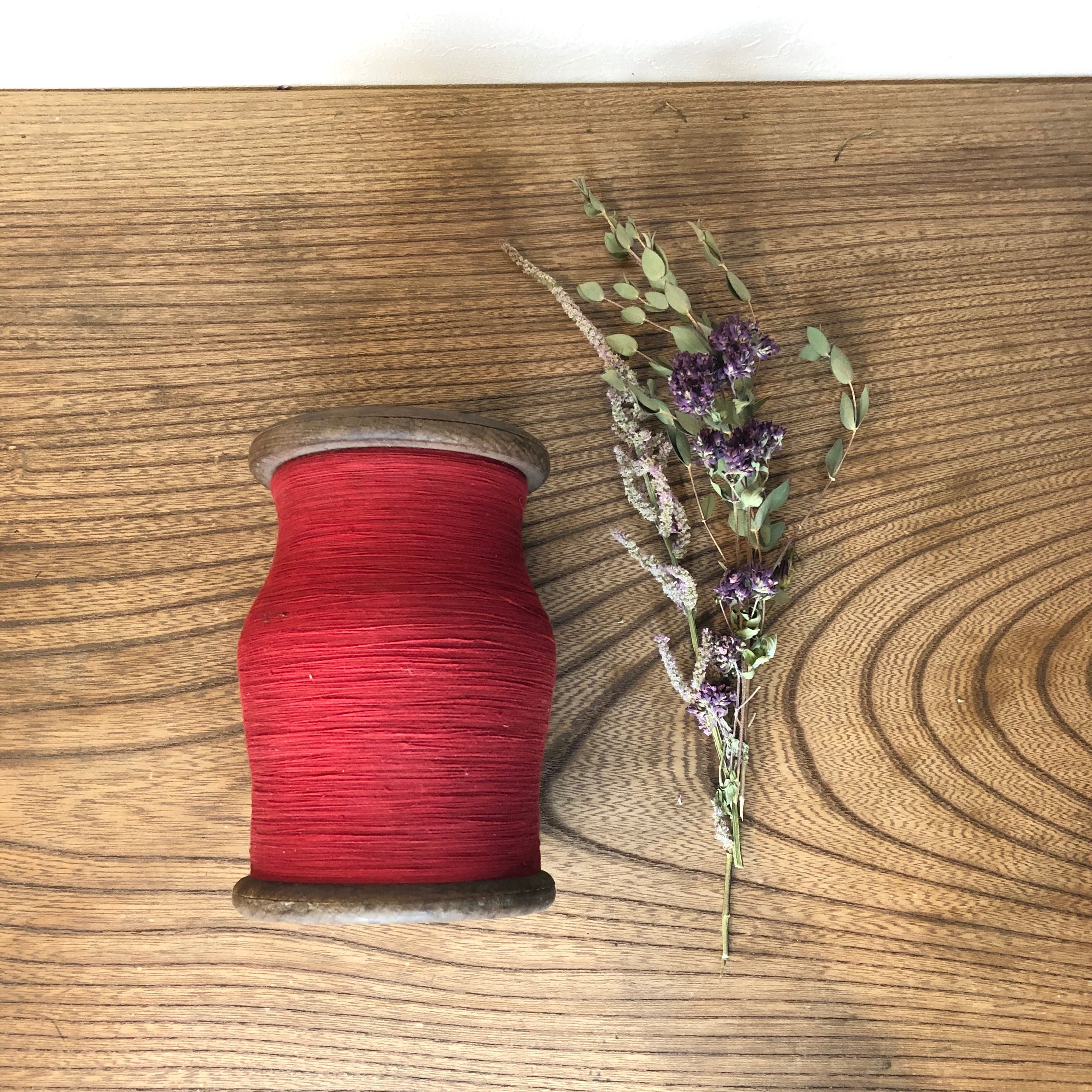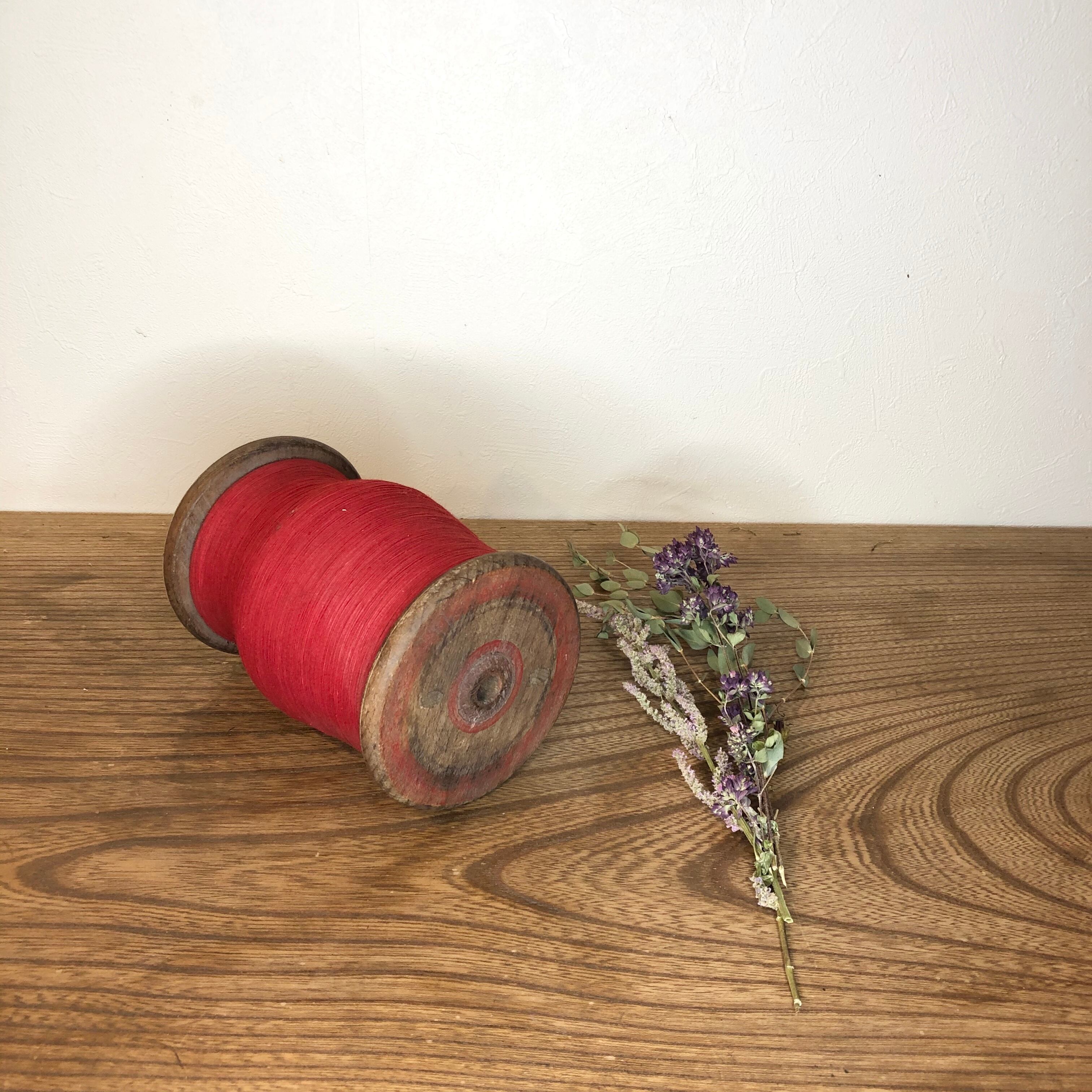【F-7】木製糸巻き(糸付き・赤)①ドライフラワー・古道具