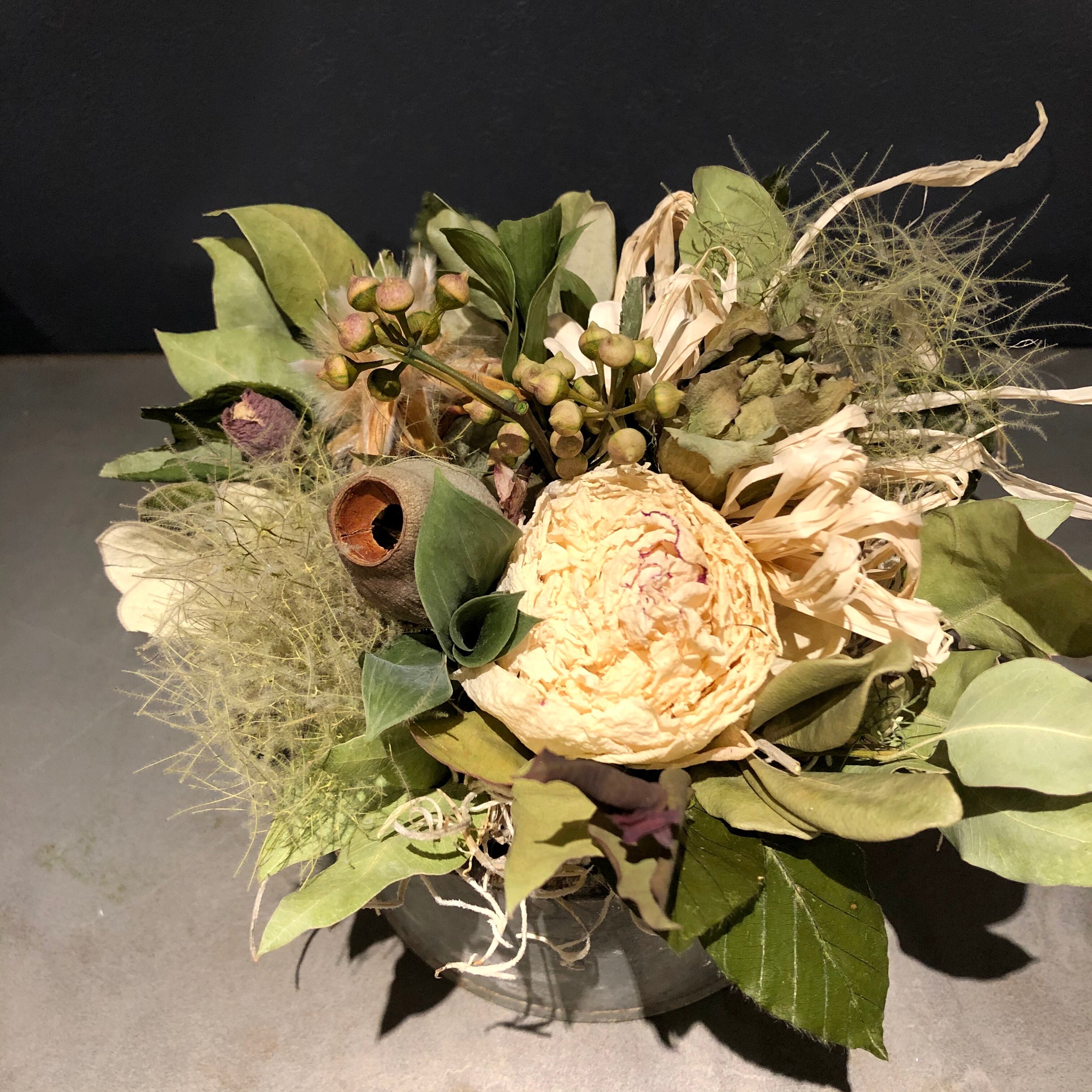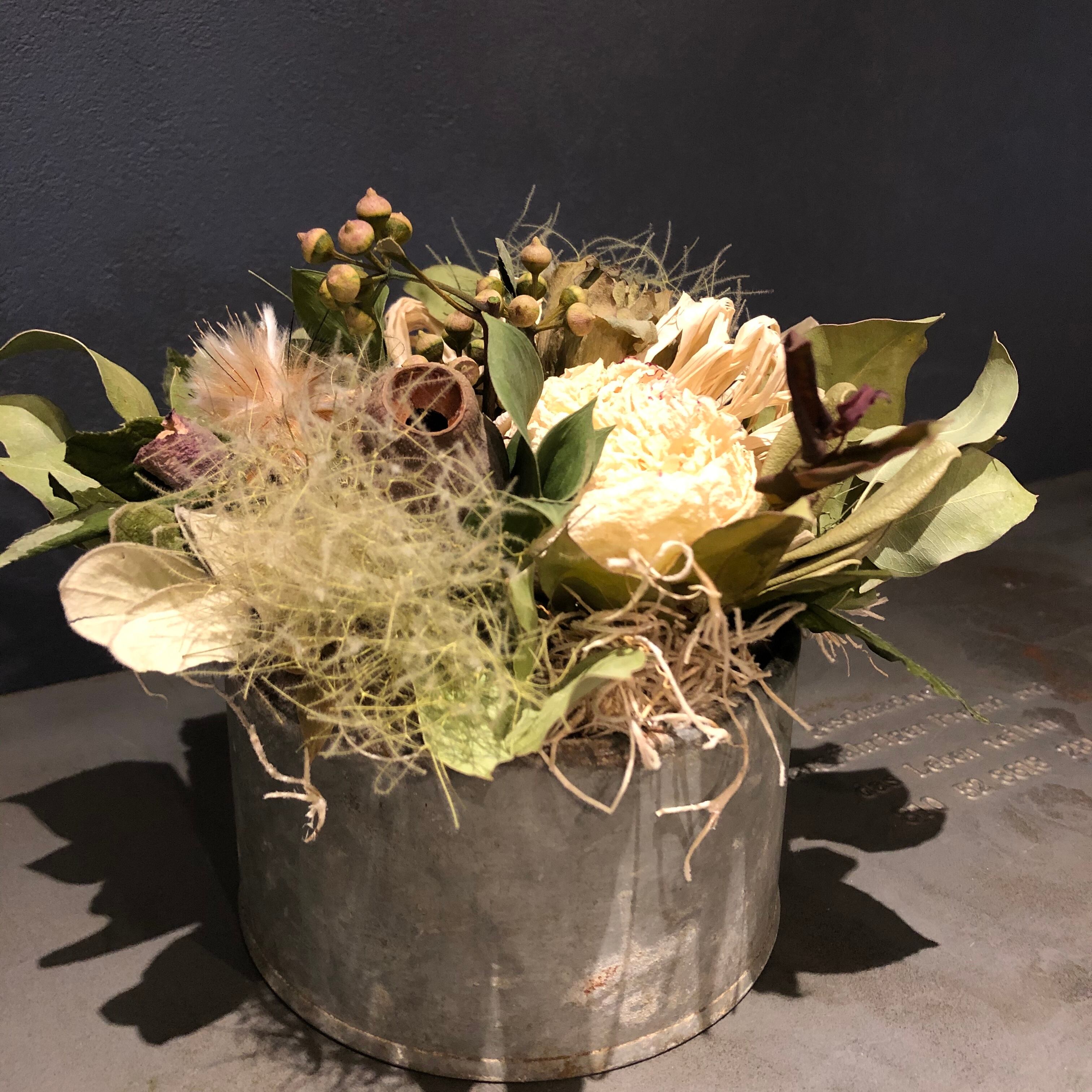 DF-2 ブリキベースのドライフラワーアレンジ(白)