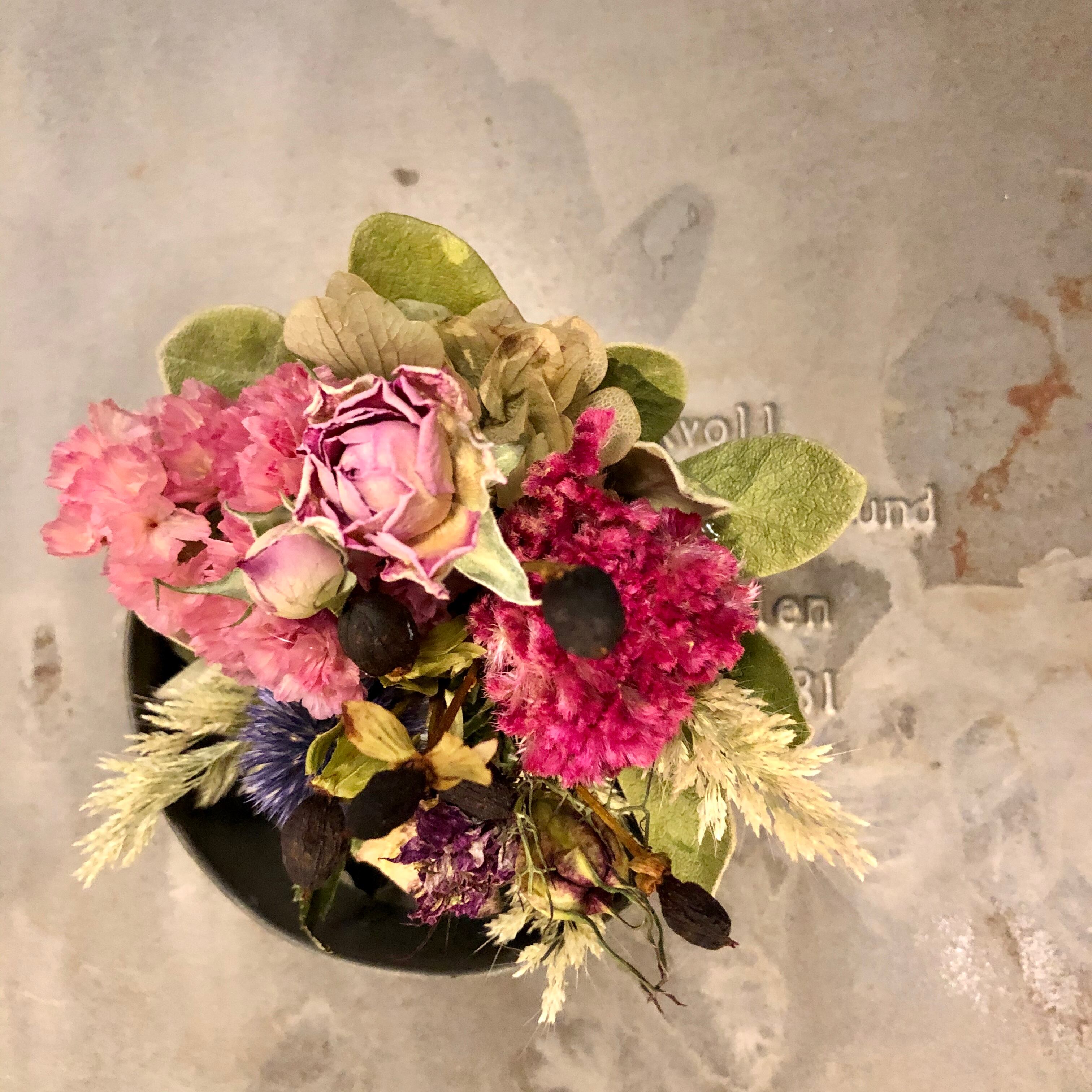 DF-6 ブリキベースのドライフラワーアレンジ(小・ピンク)