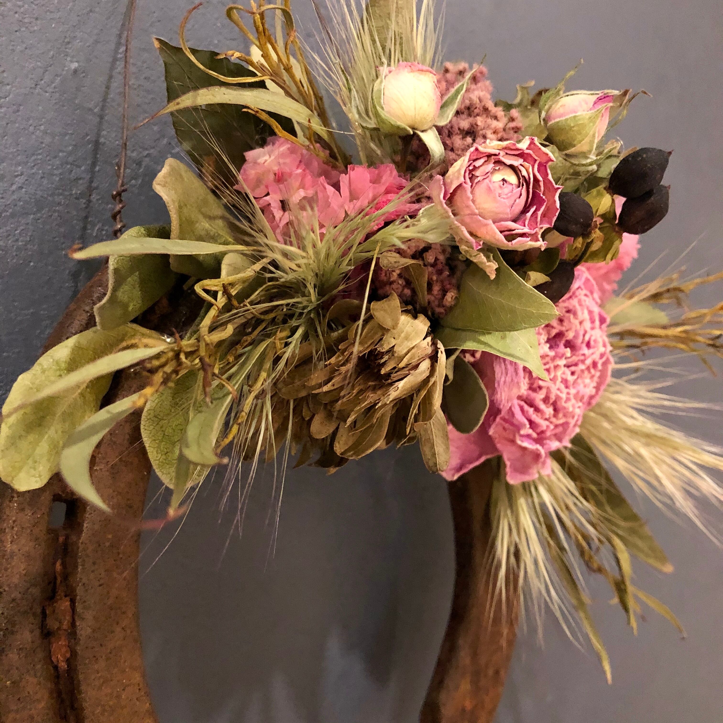DF-9 馬蹄のドライフラワーアレンジ(ピンク)