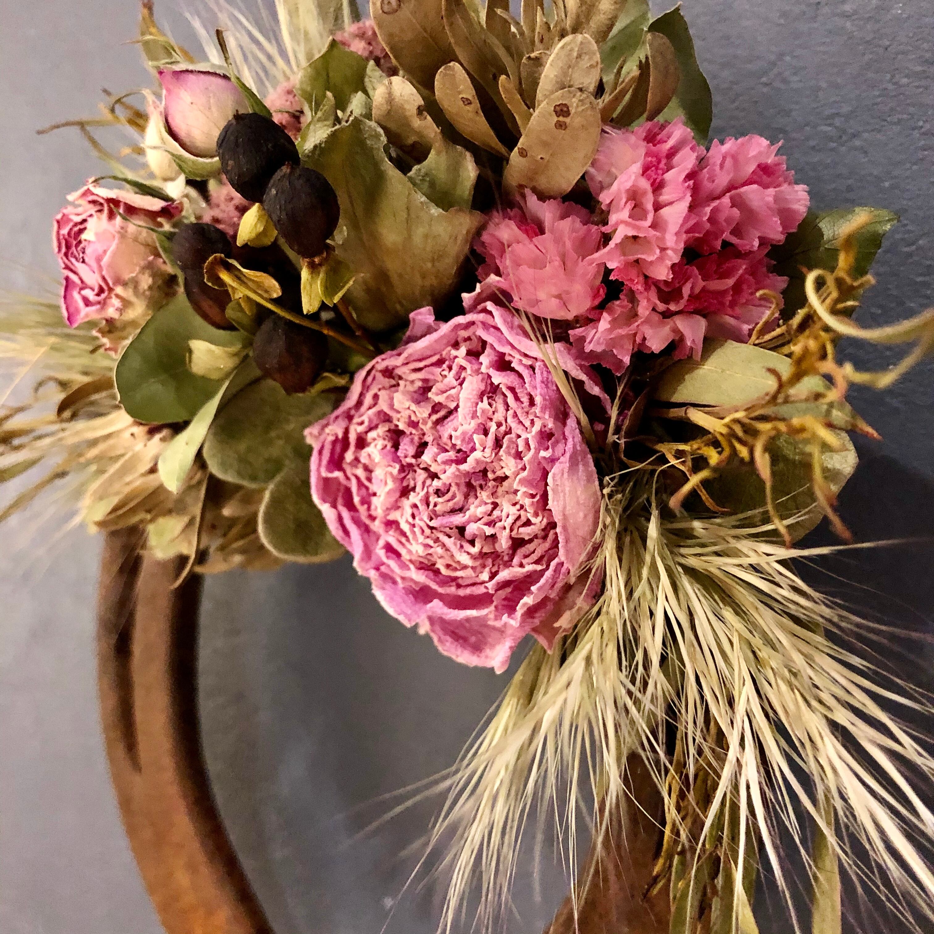 ドライフラワーと錆び感は、経てきた時間が相まってとても相性がいいですね。