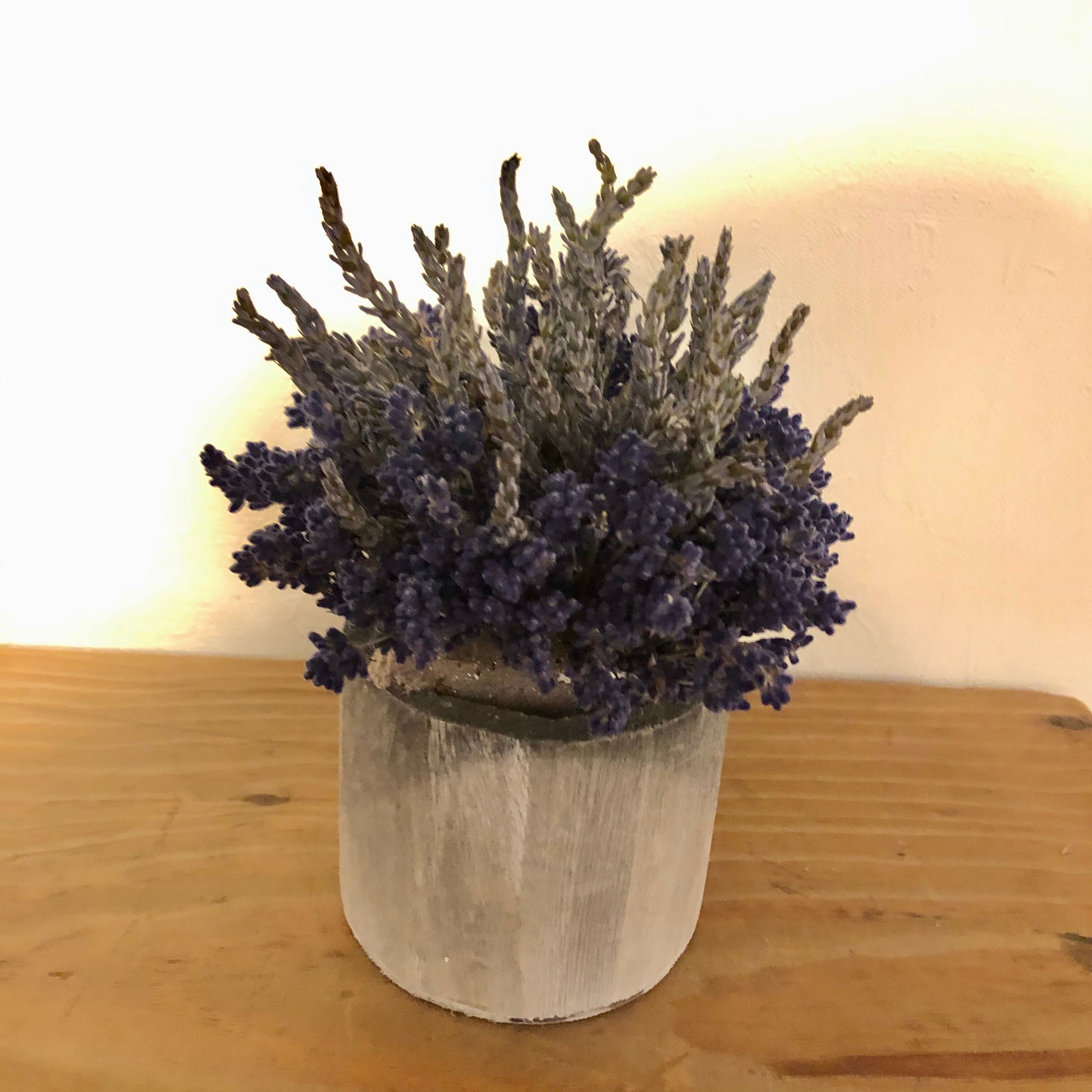香り高い【グロッソ】と、ブルーがきれいな【濃紫3号】の、2種類ラベンダーを使ったポットアレンジ。