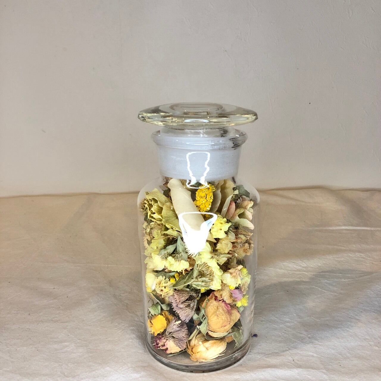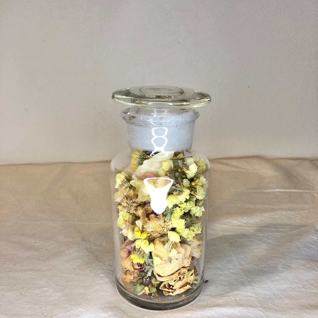 【F-3】薬瓶ドライフラワー詰め・黄色/古道具