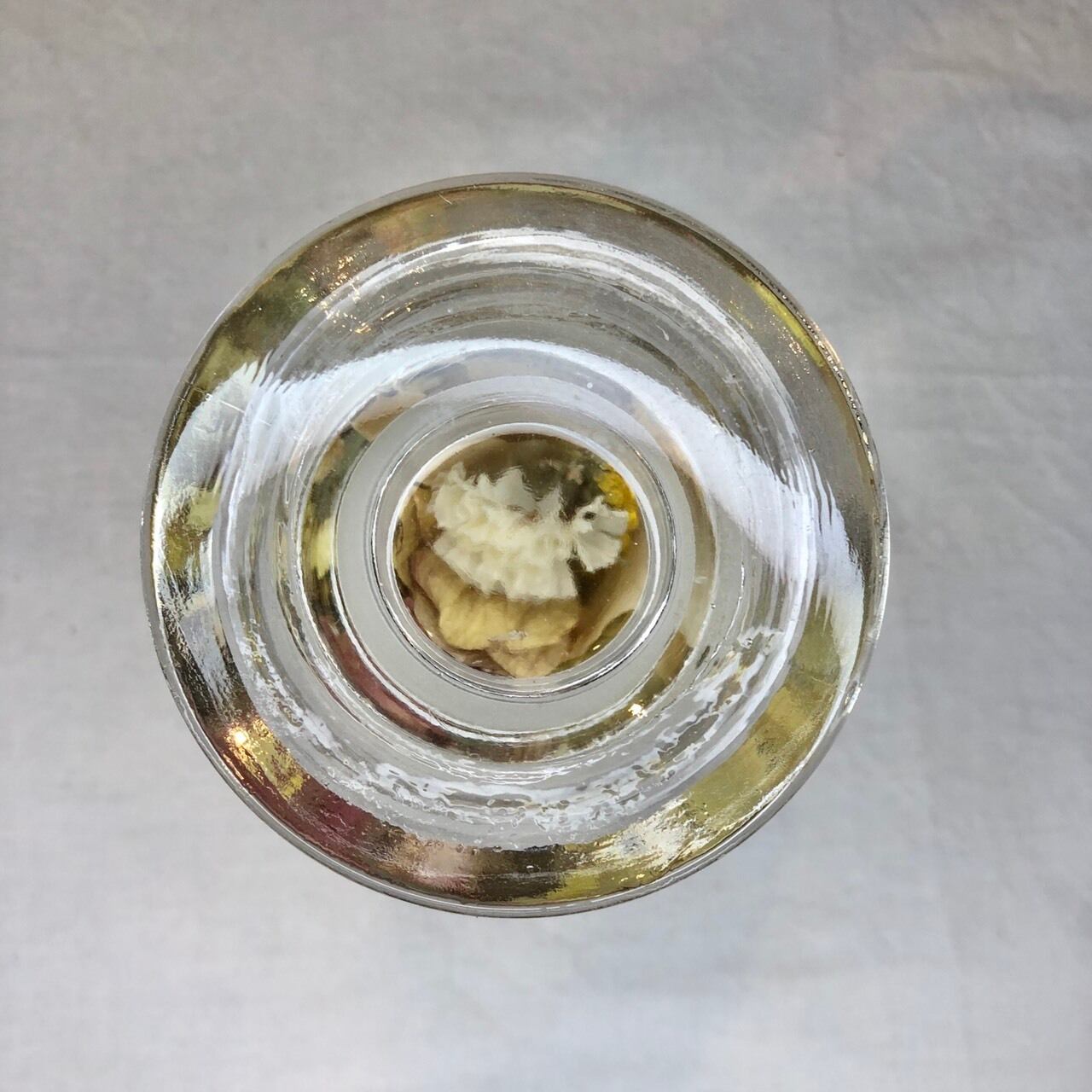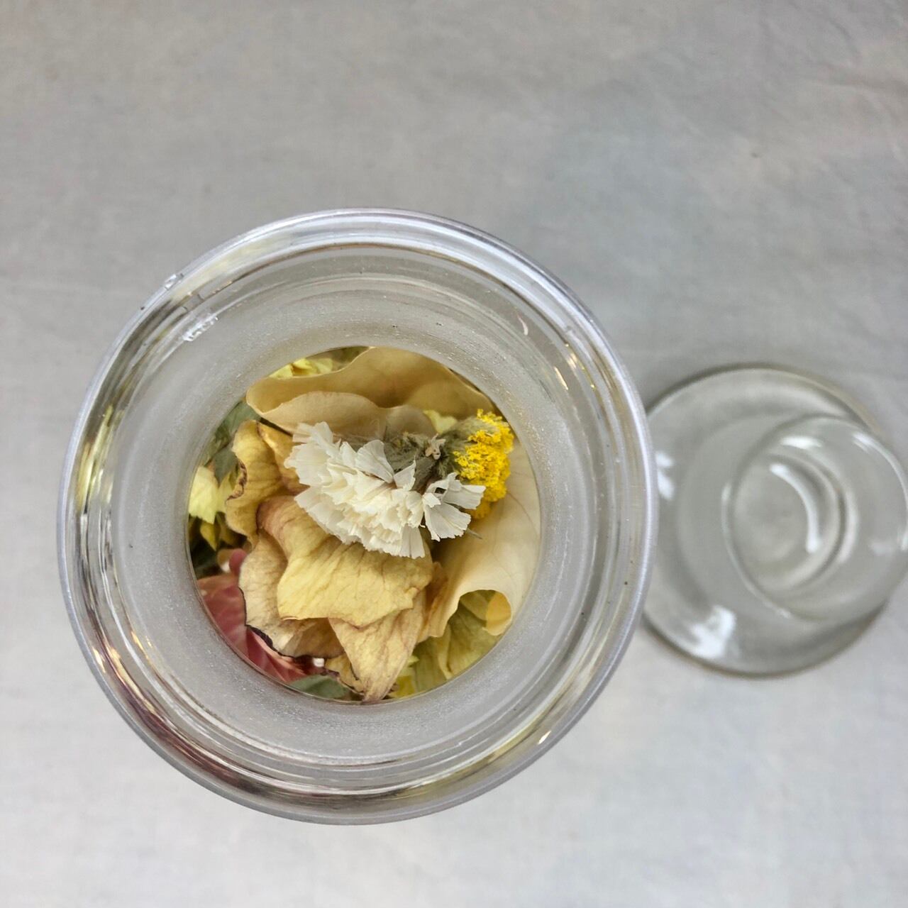 見る角度で様々な表情が楽しめる瓶詰ドライフラワー。