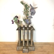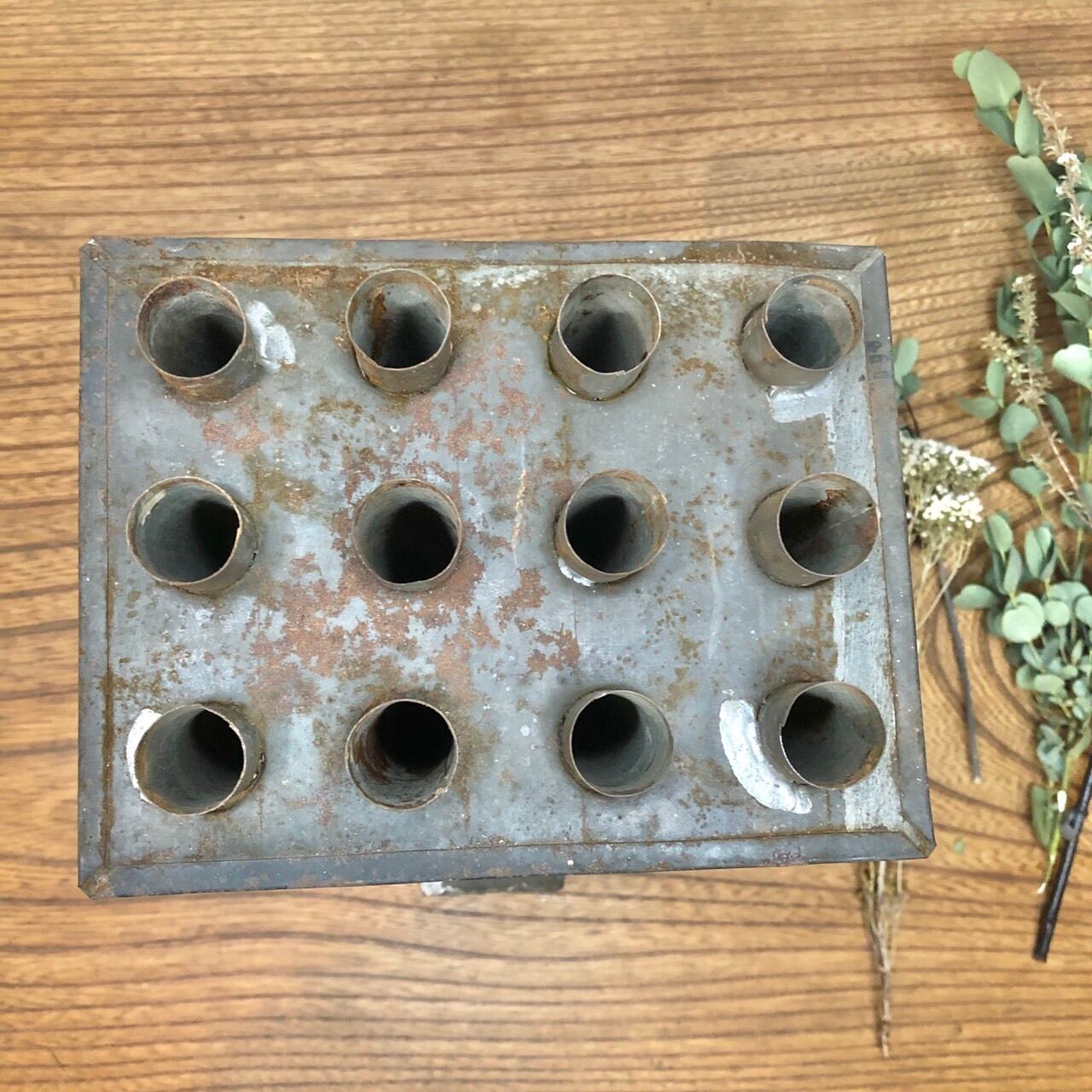 用途は不明ですが、アルミの筒が12本あり、ドライフラワーを飾ると素敵です。