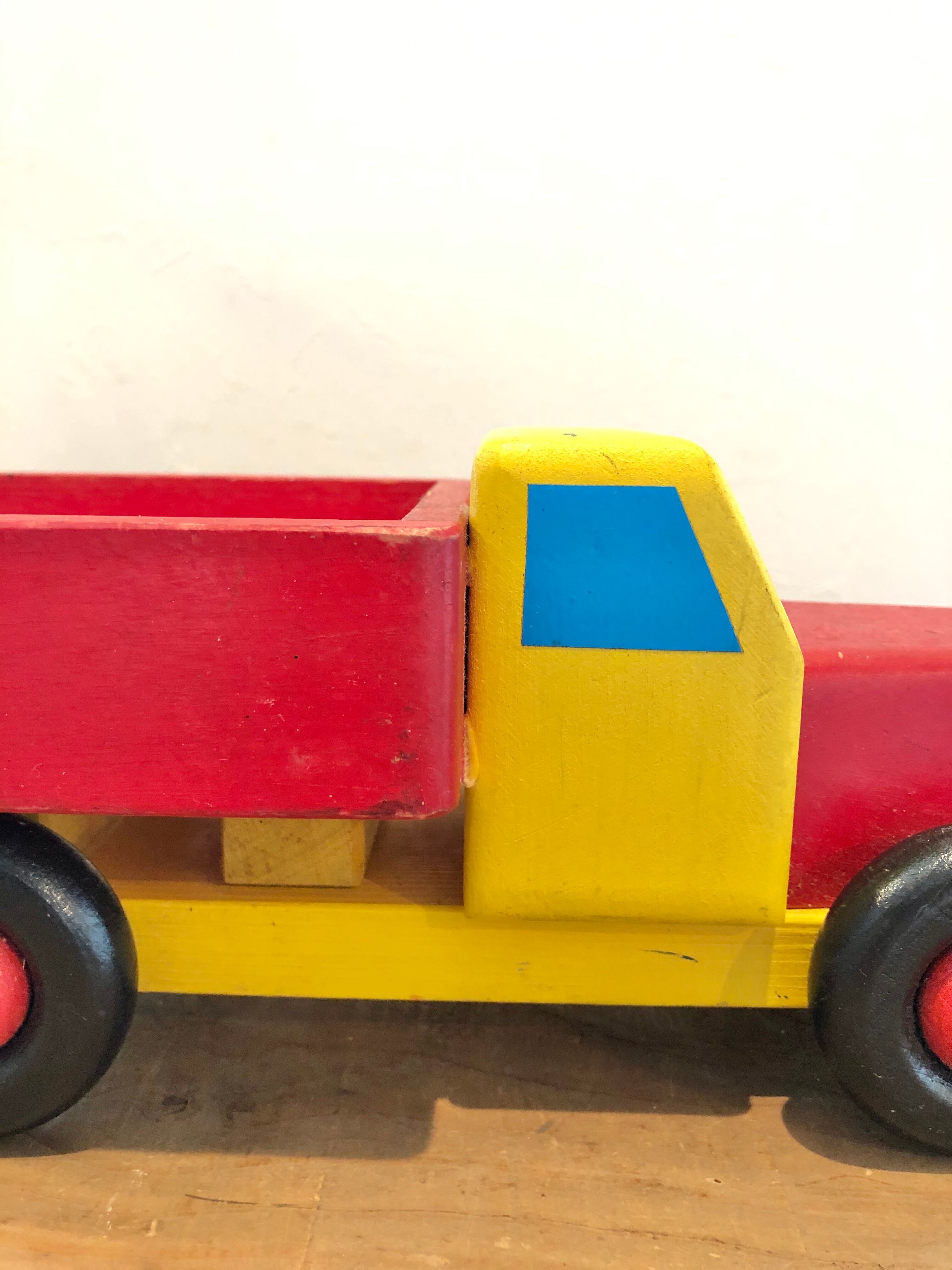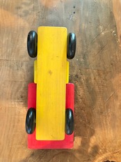 ビビットな配色がかわいい木製のトラック。