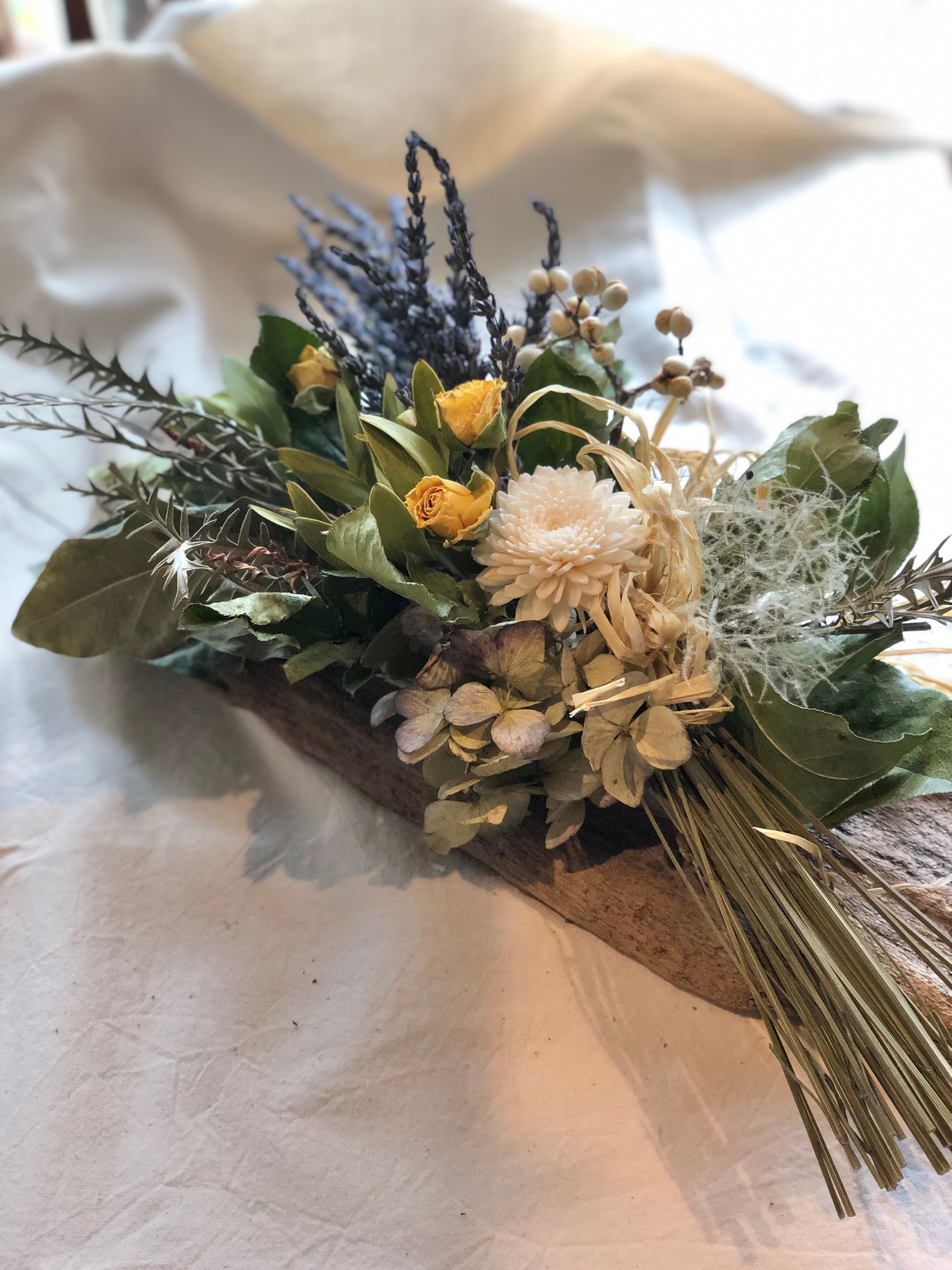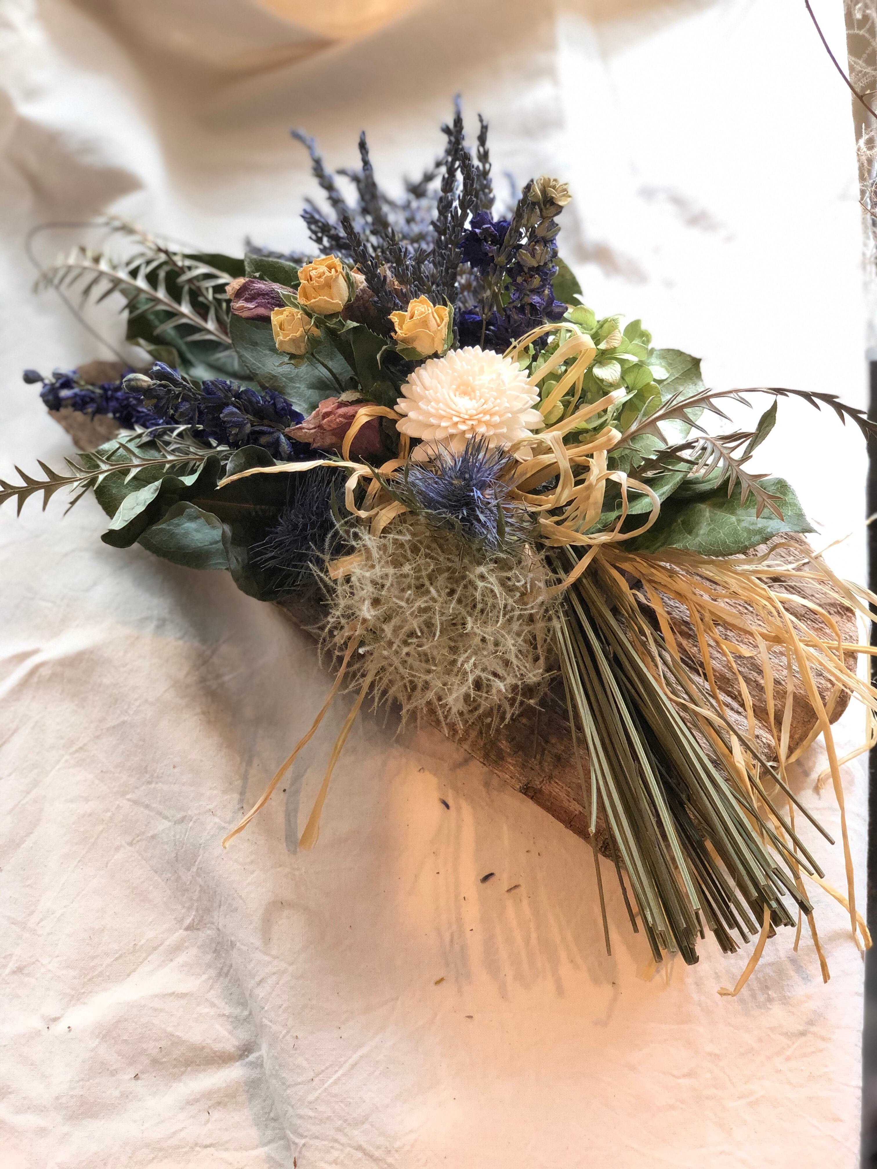 香りも色も楽しめる、壁掛けタイプのアレンジメントです。