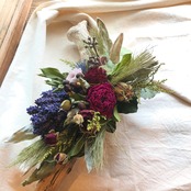 ボルドーのバラを入れてシックな初秋の色合いに。