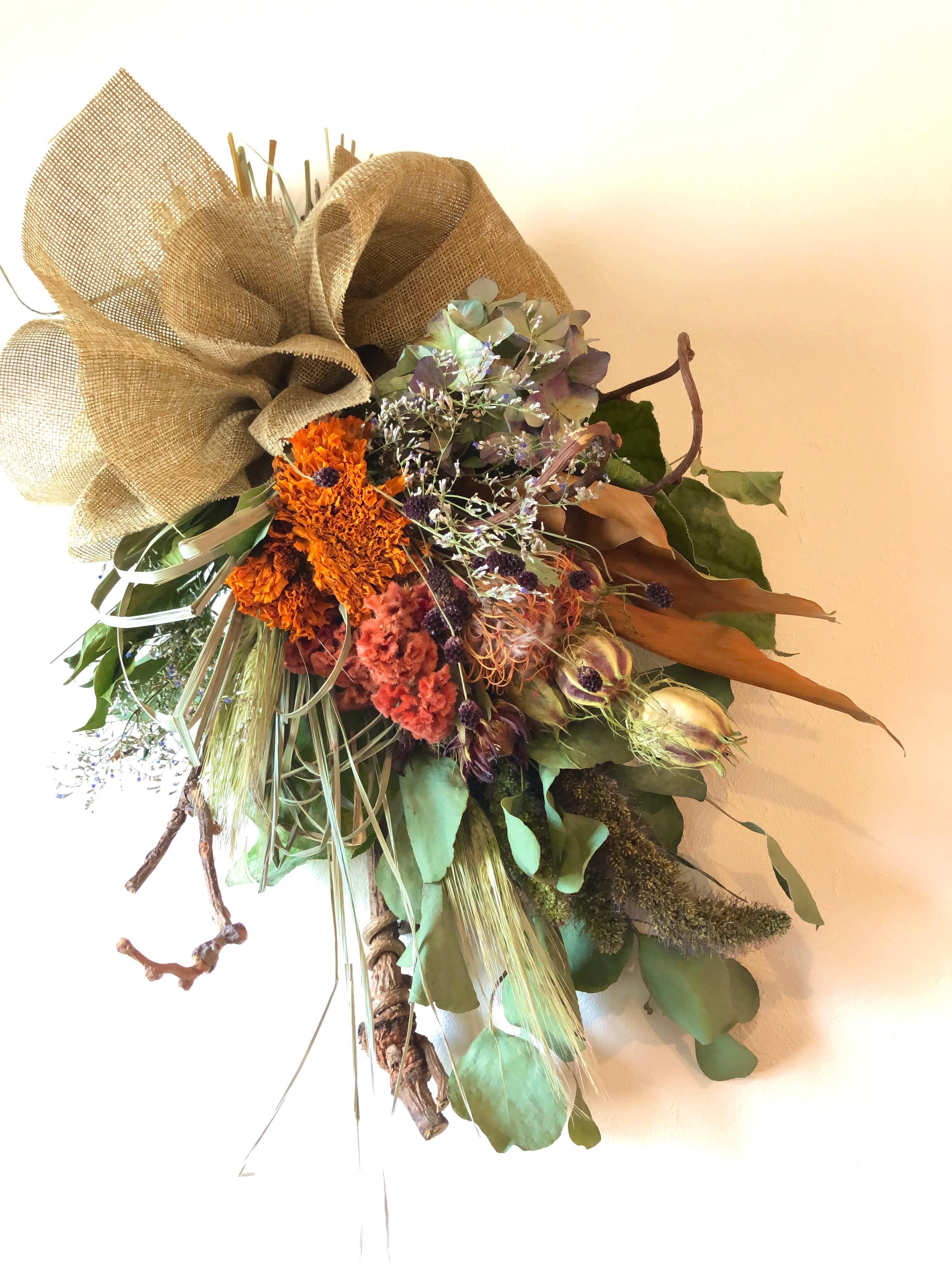 秋らしくなってきました。お誕生日の贈り物や新築のお祝いなど、ギフトにも喜ばれるスワッグ。