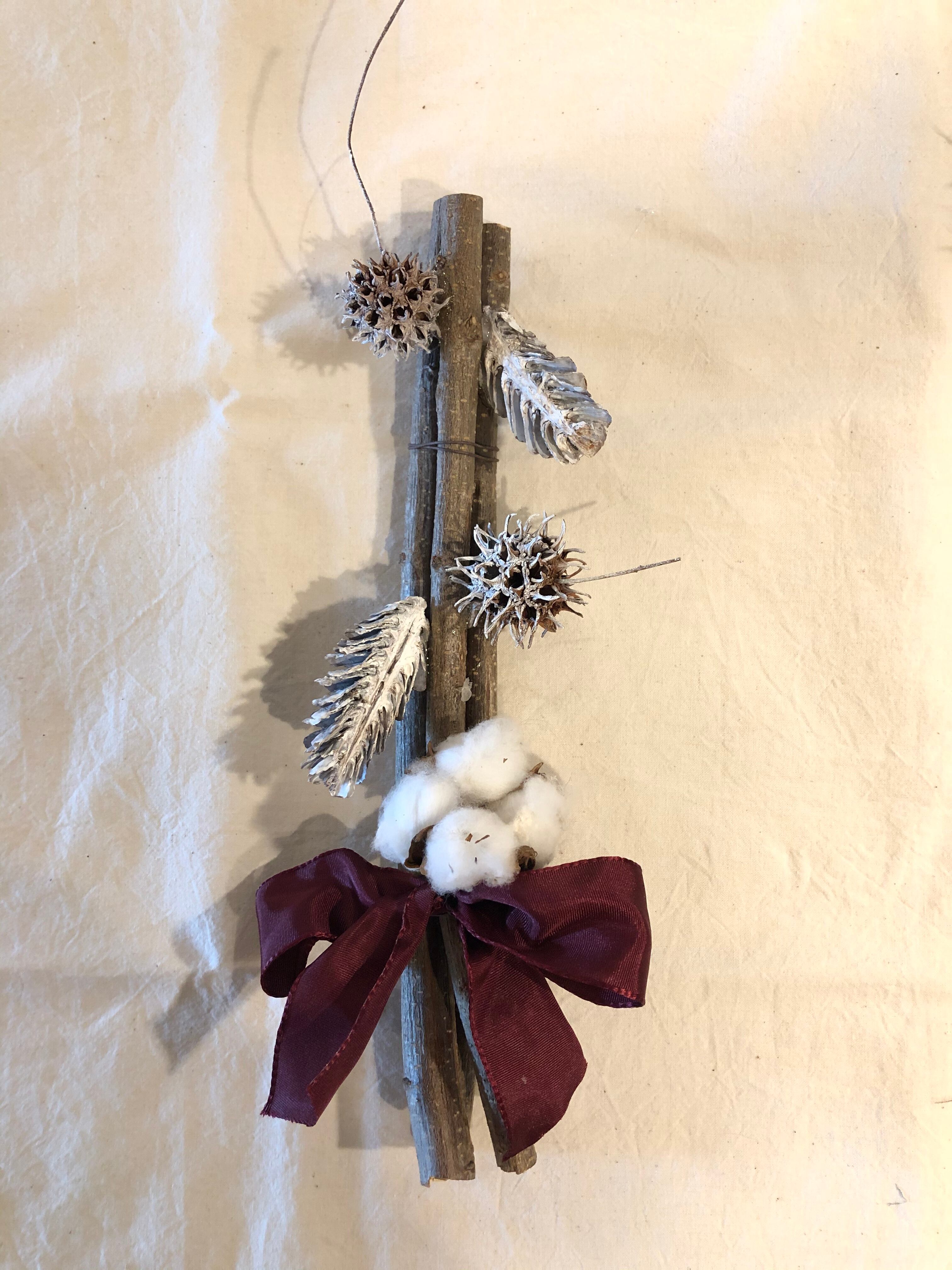①コットンや木の実類をグルーガンでバランスよくつける。