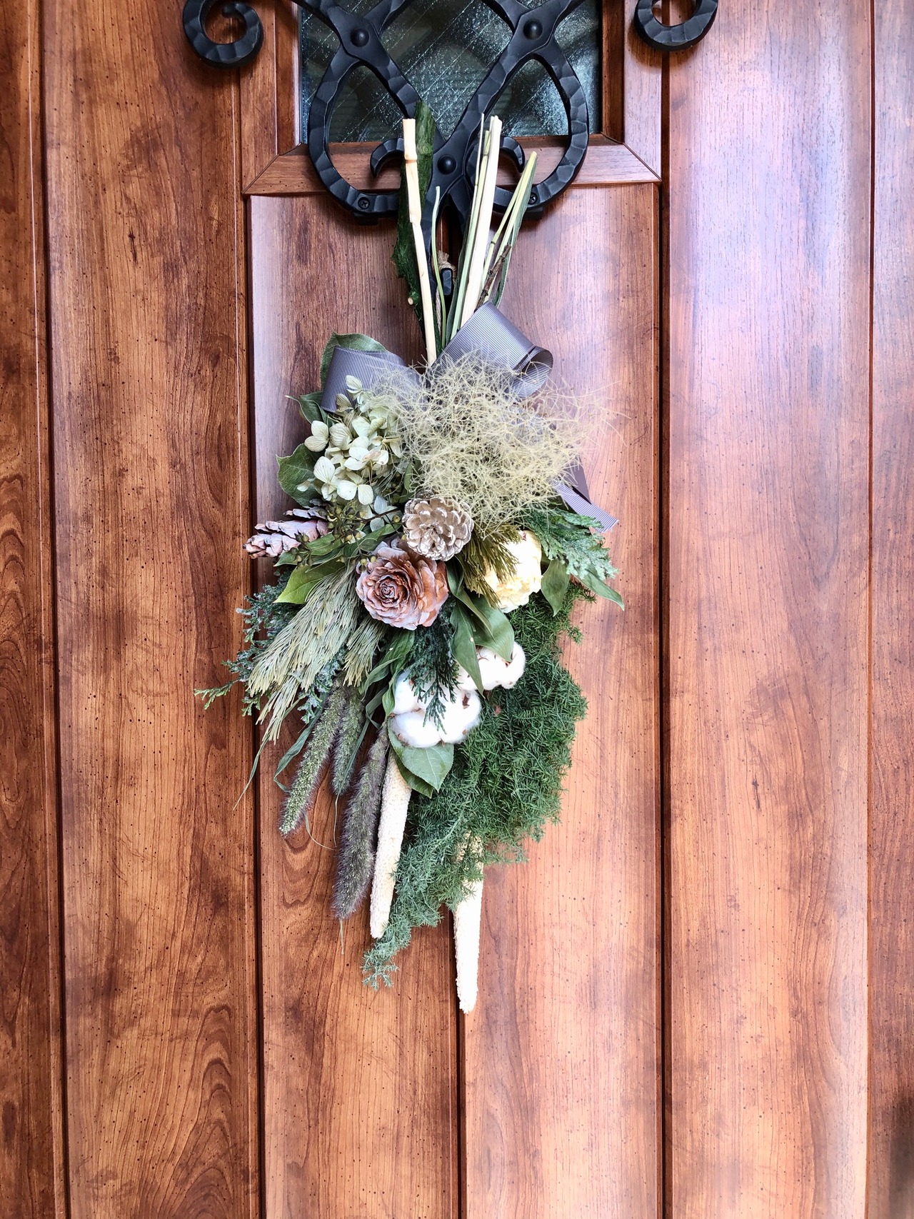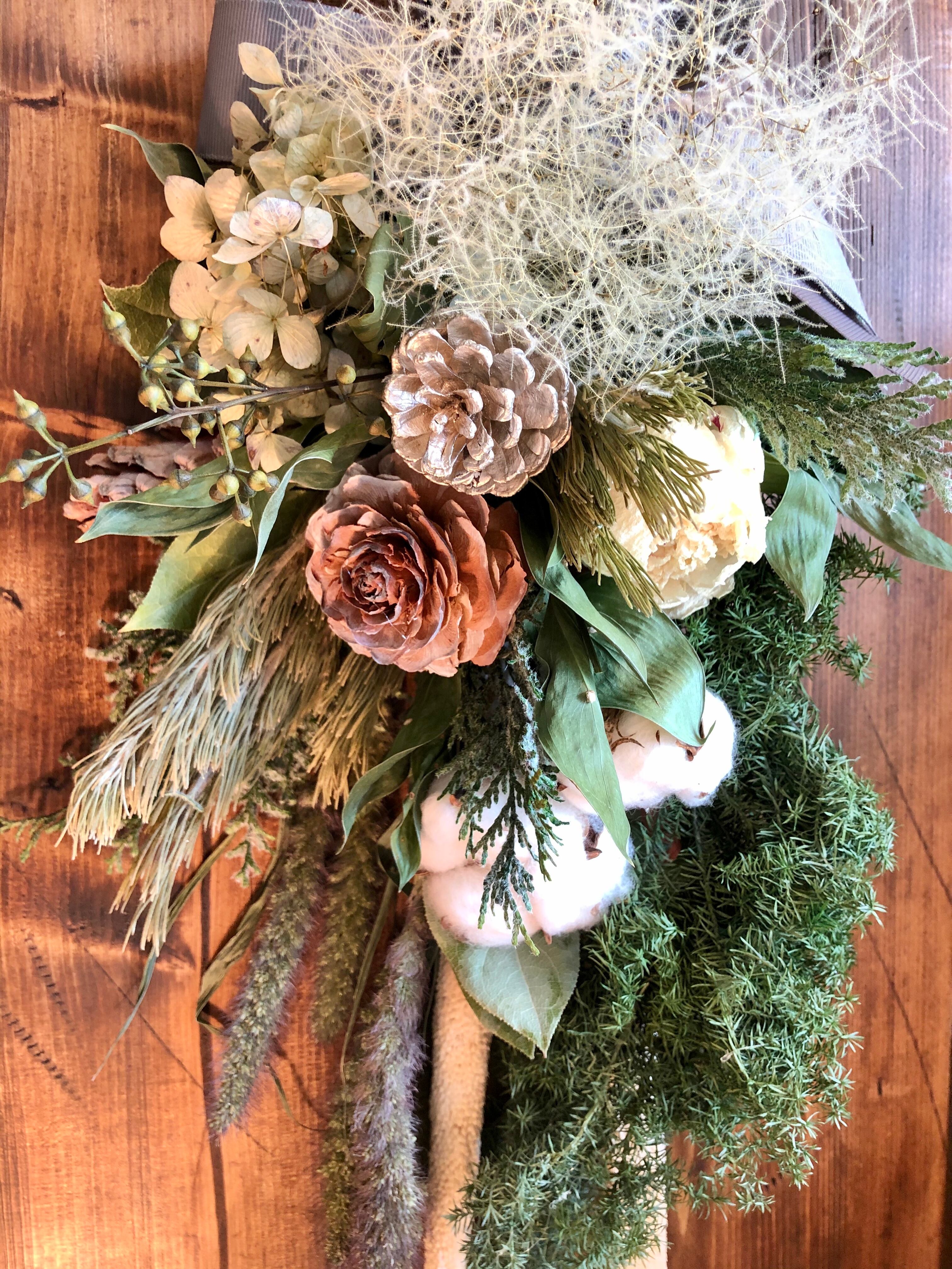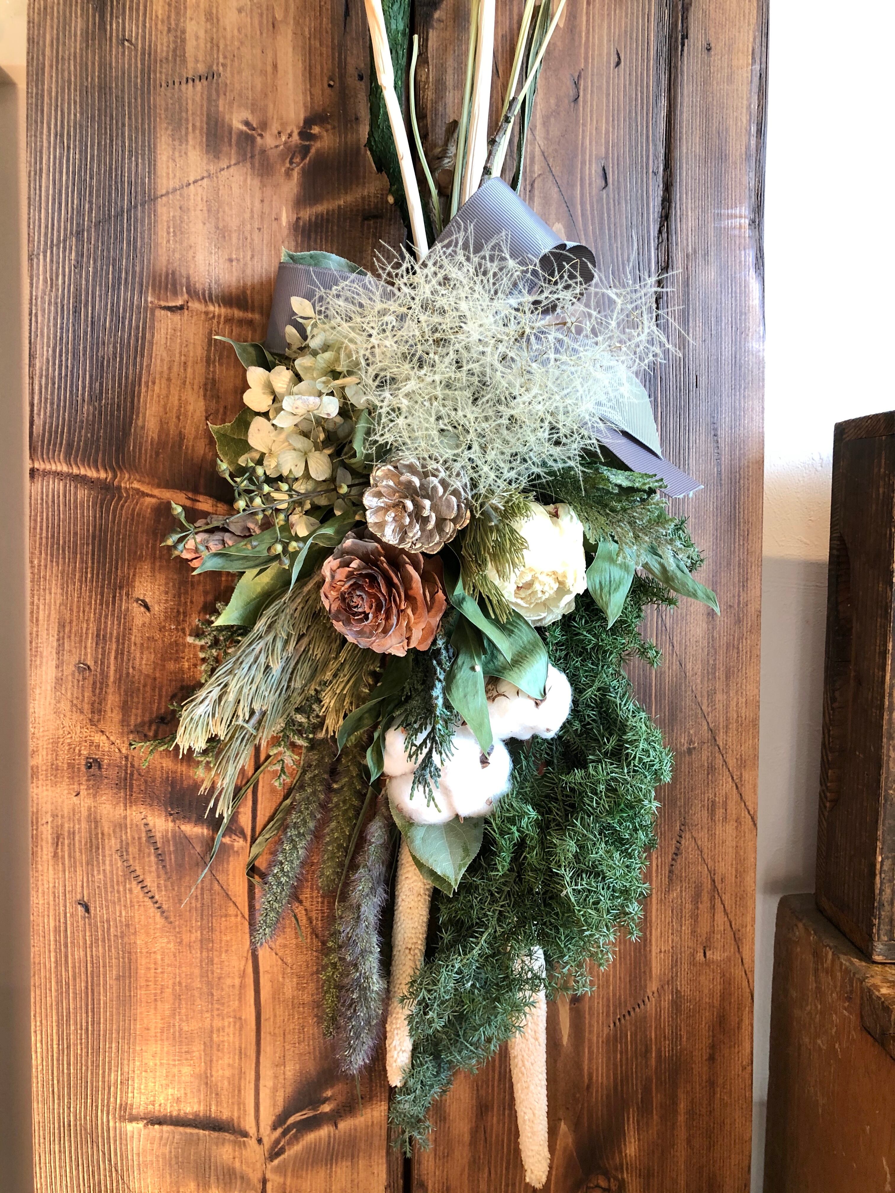 クリスマスを過ぎても冬の間飾っていただける、冬色スワッグです。