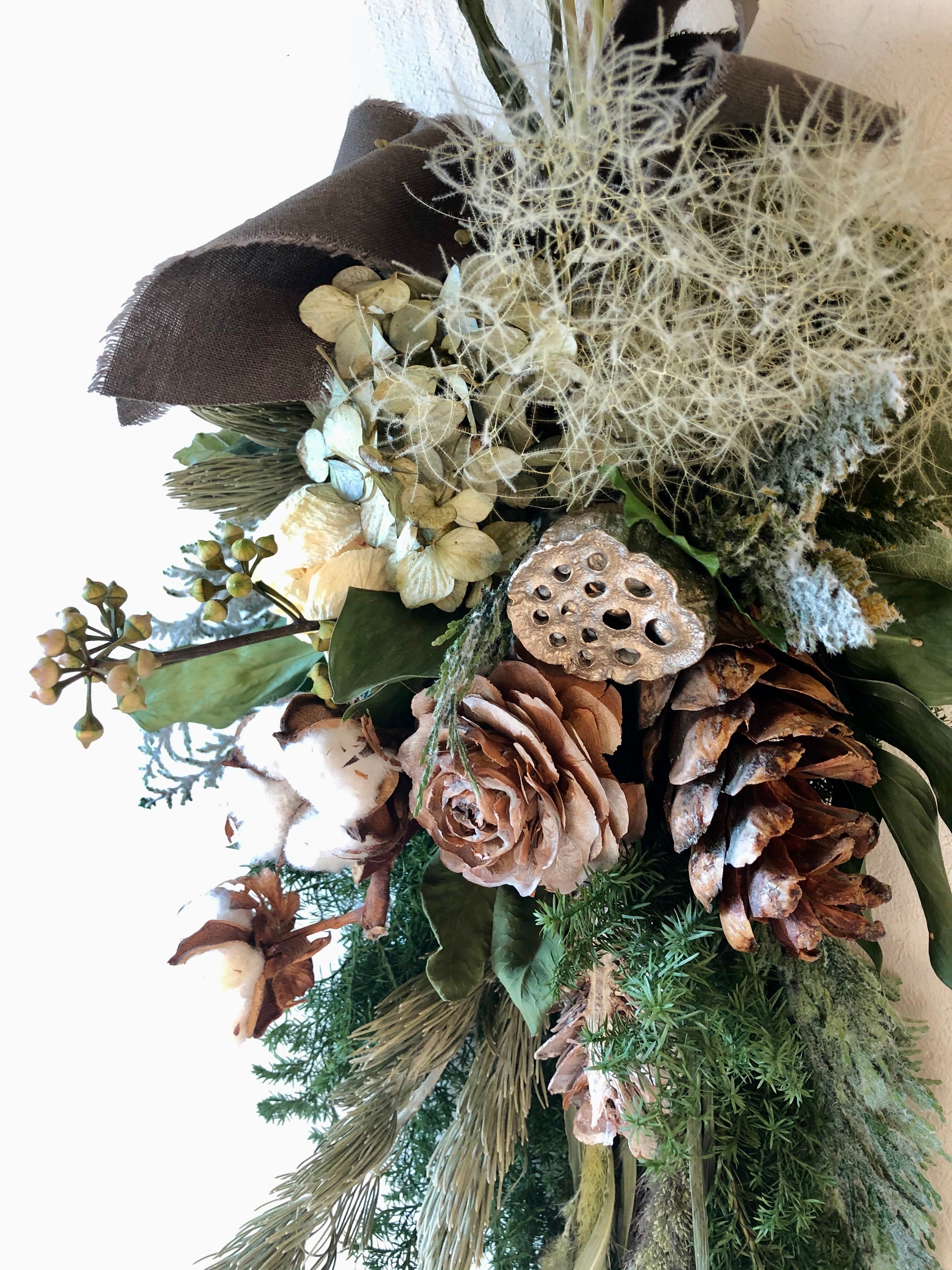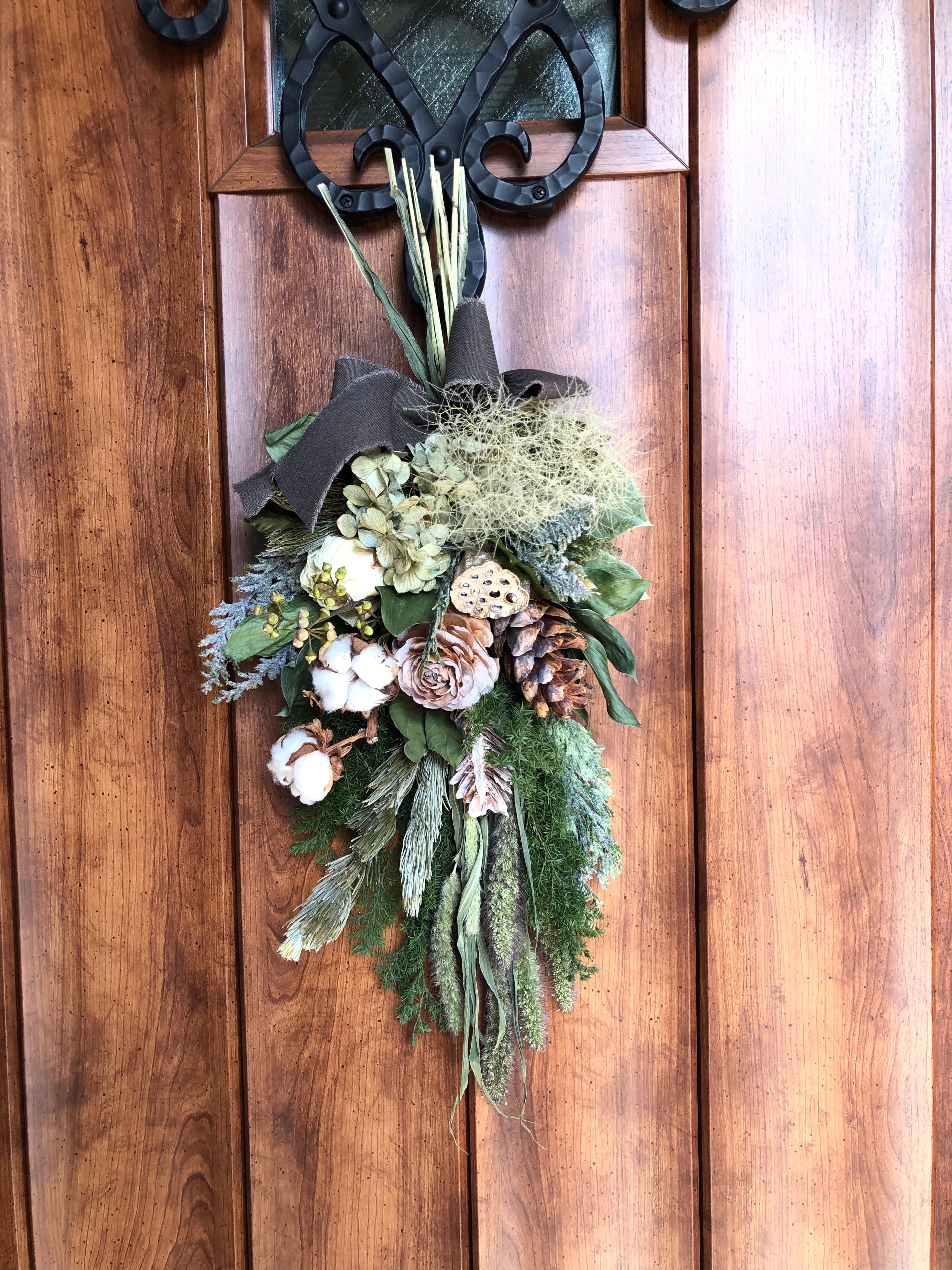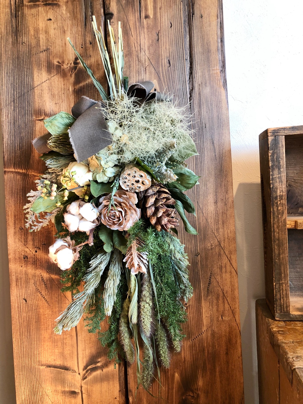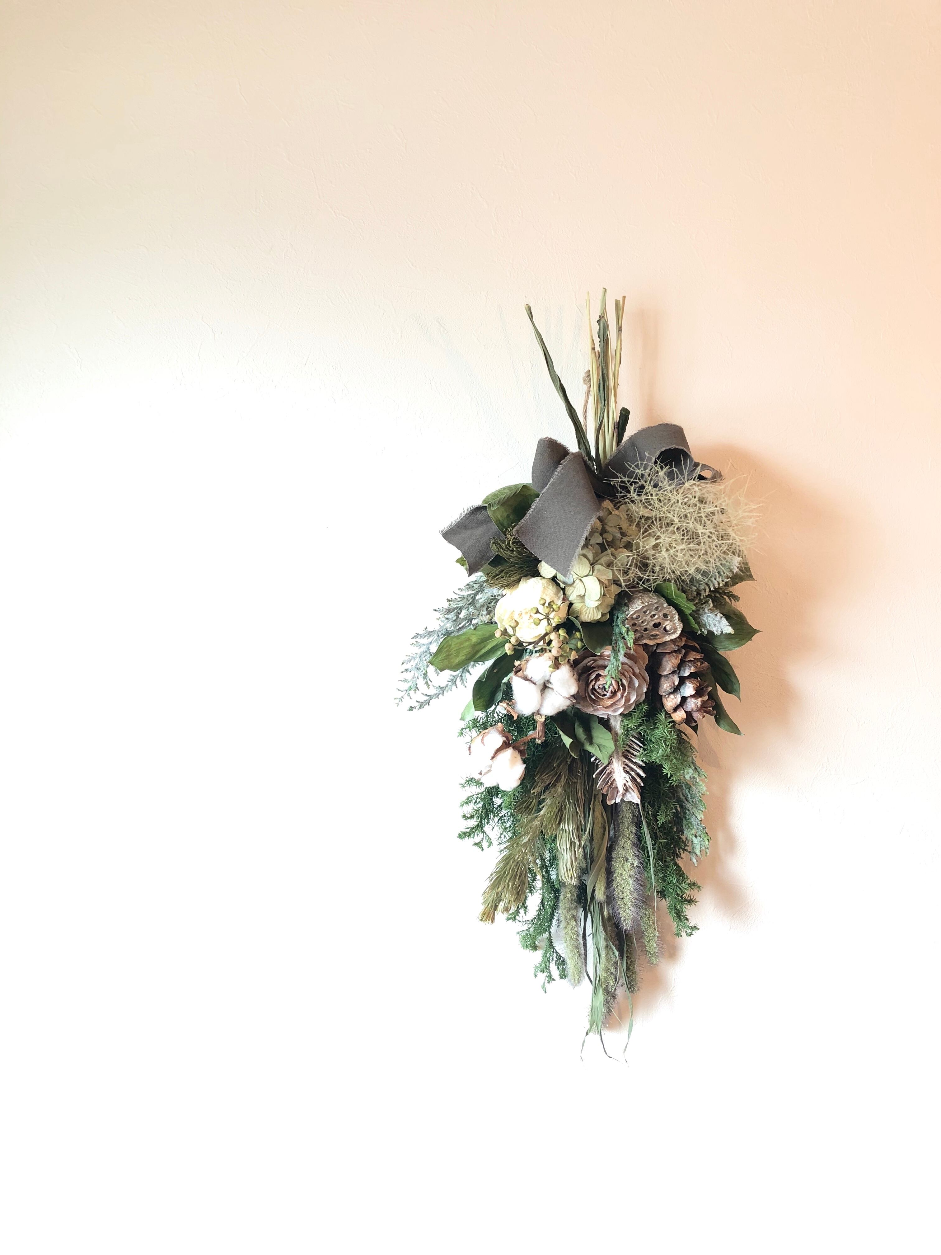 クリスマスを過ぎても冬の間飾っていただける、冬色スワッグです。
