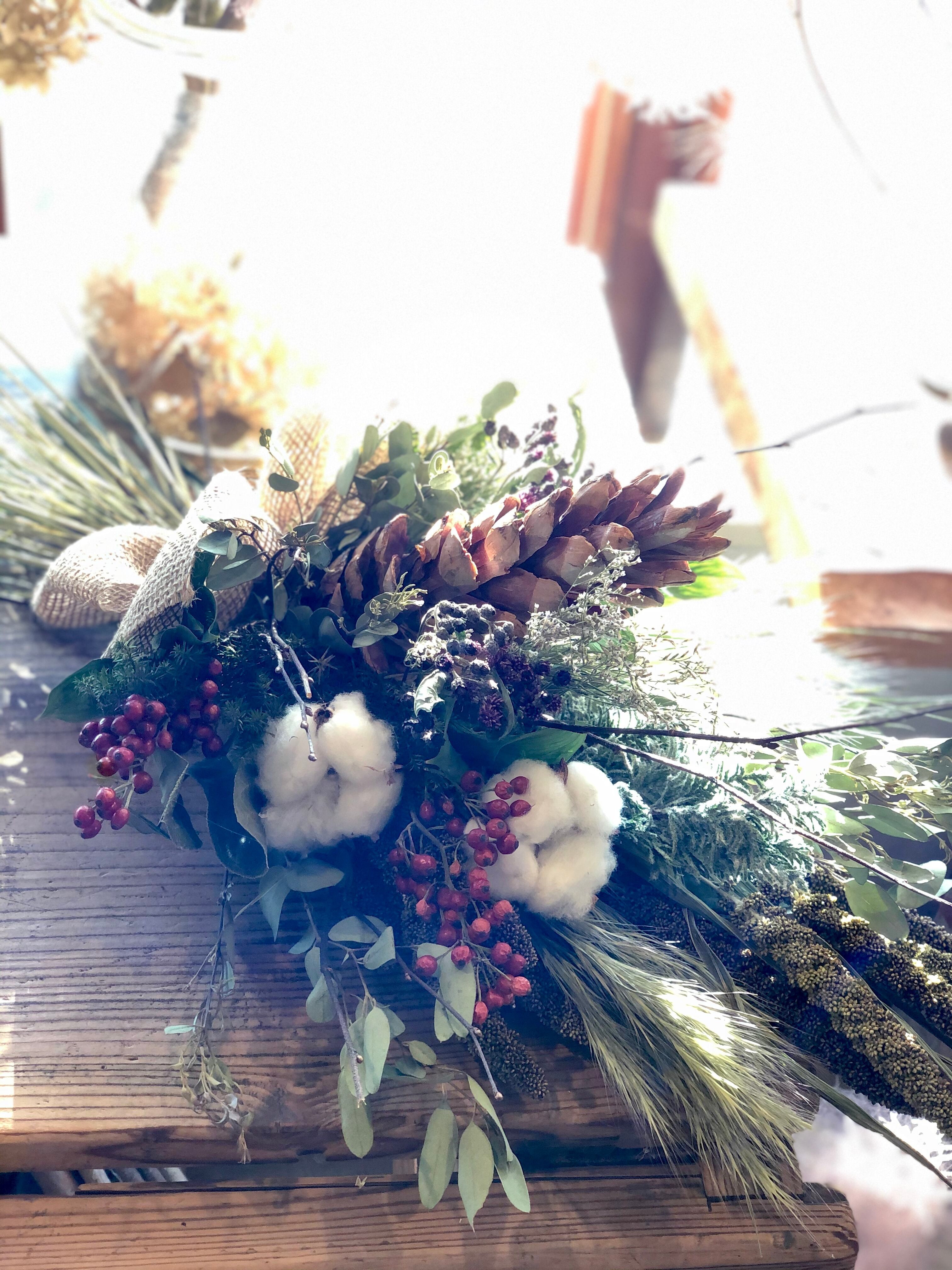 クリスマスを過ぎても、冬の間飾っていただける雰囲気に仕上げました。