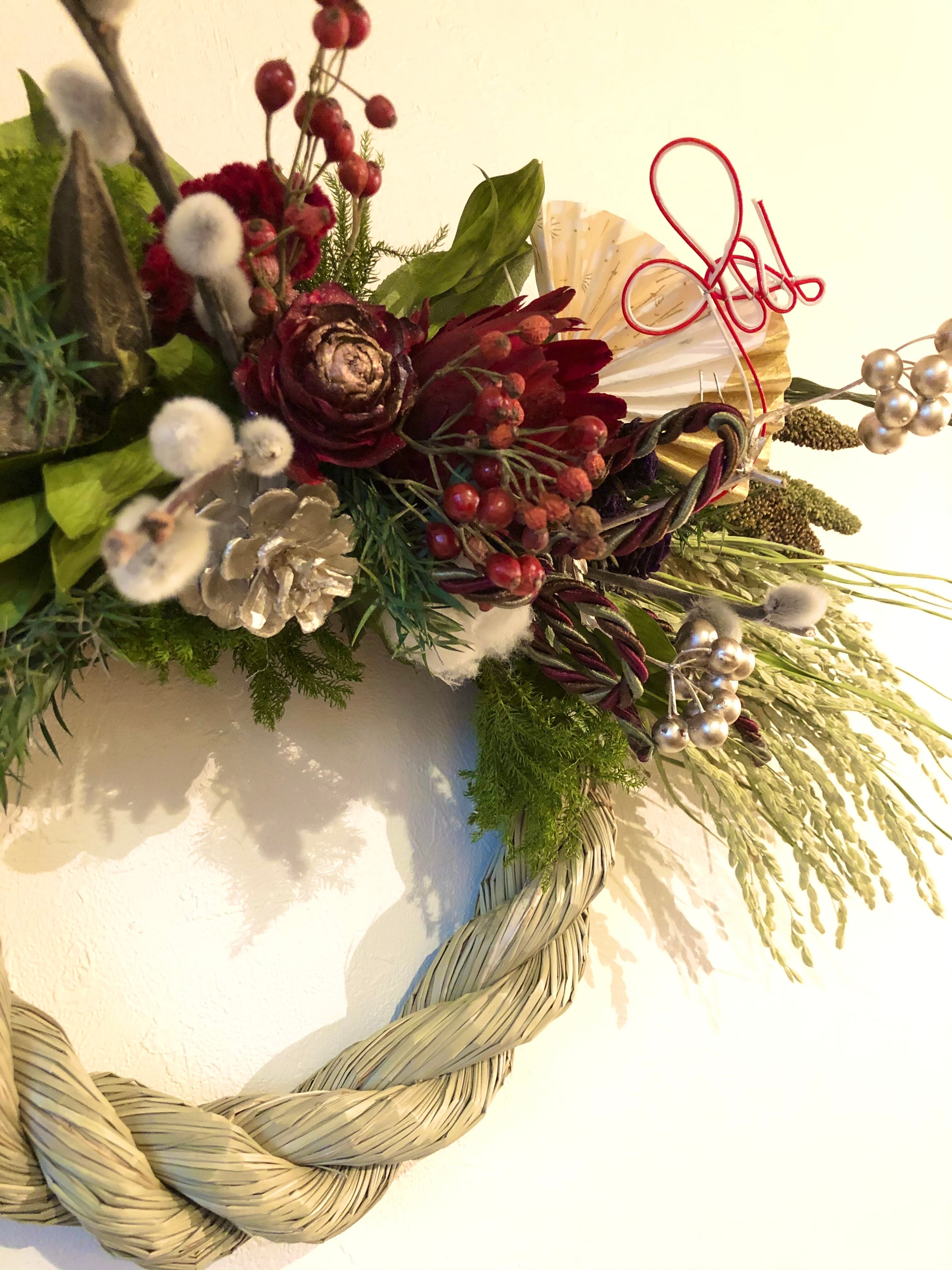 お玄関に飾って、新年を迎えるのにぴったりのしめ飾りアレンジです。