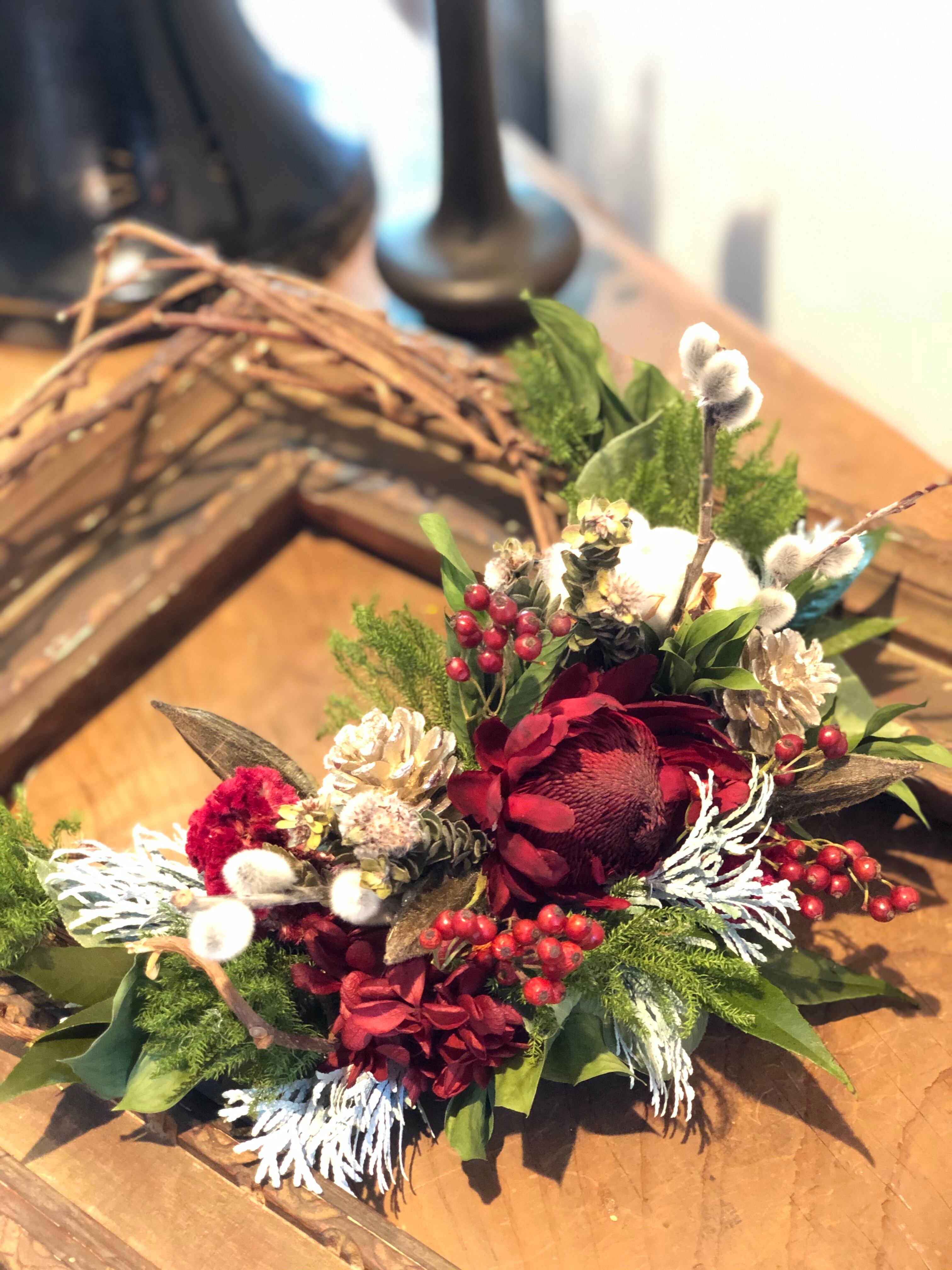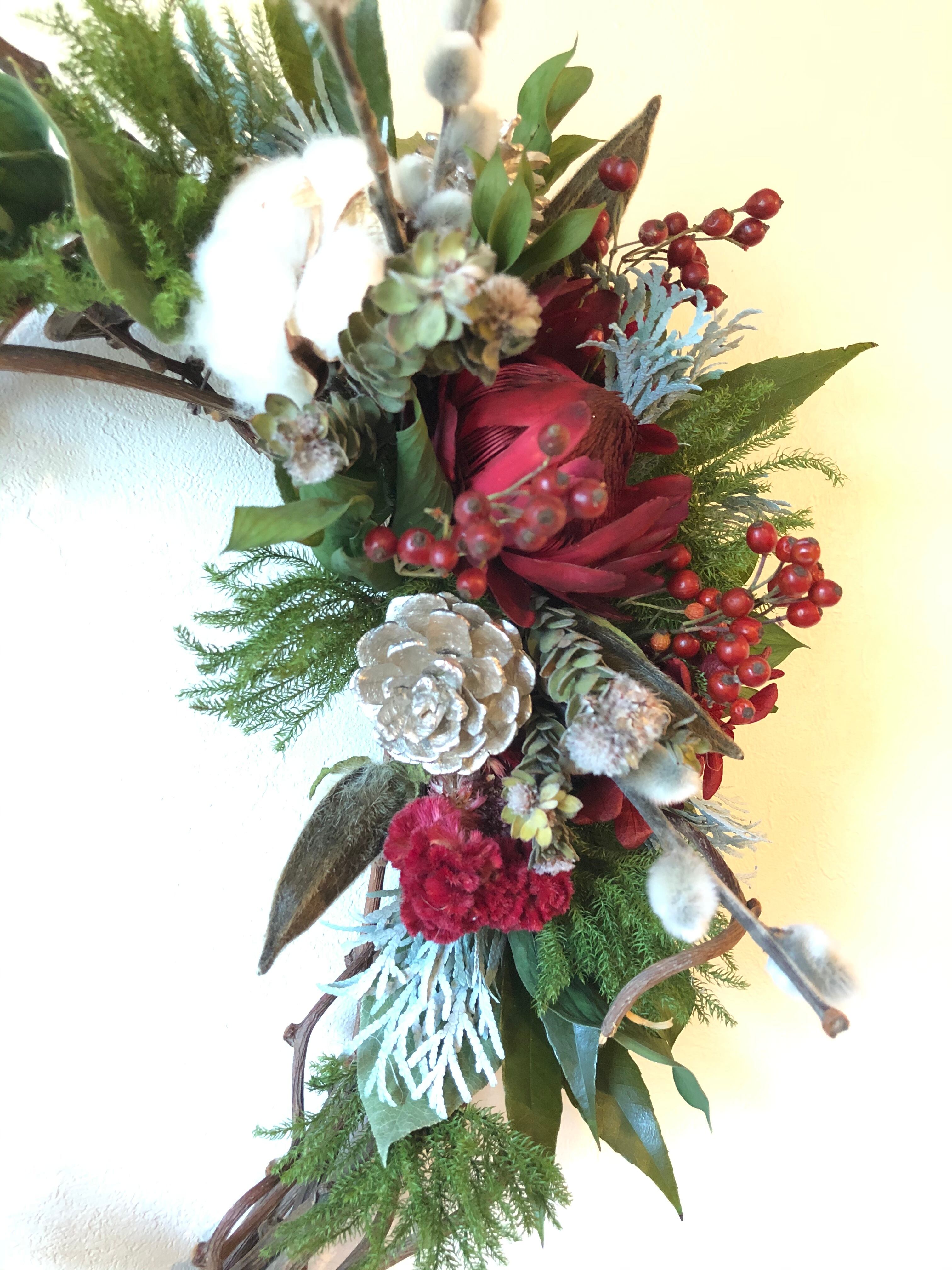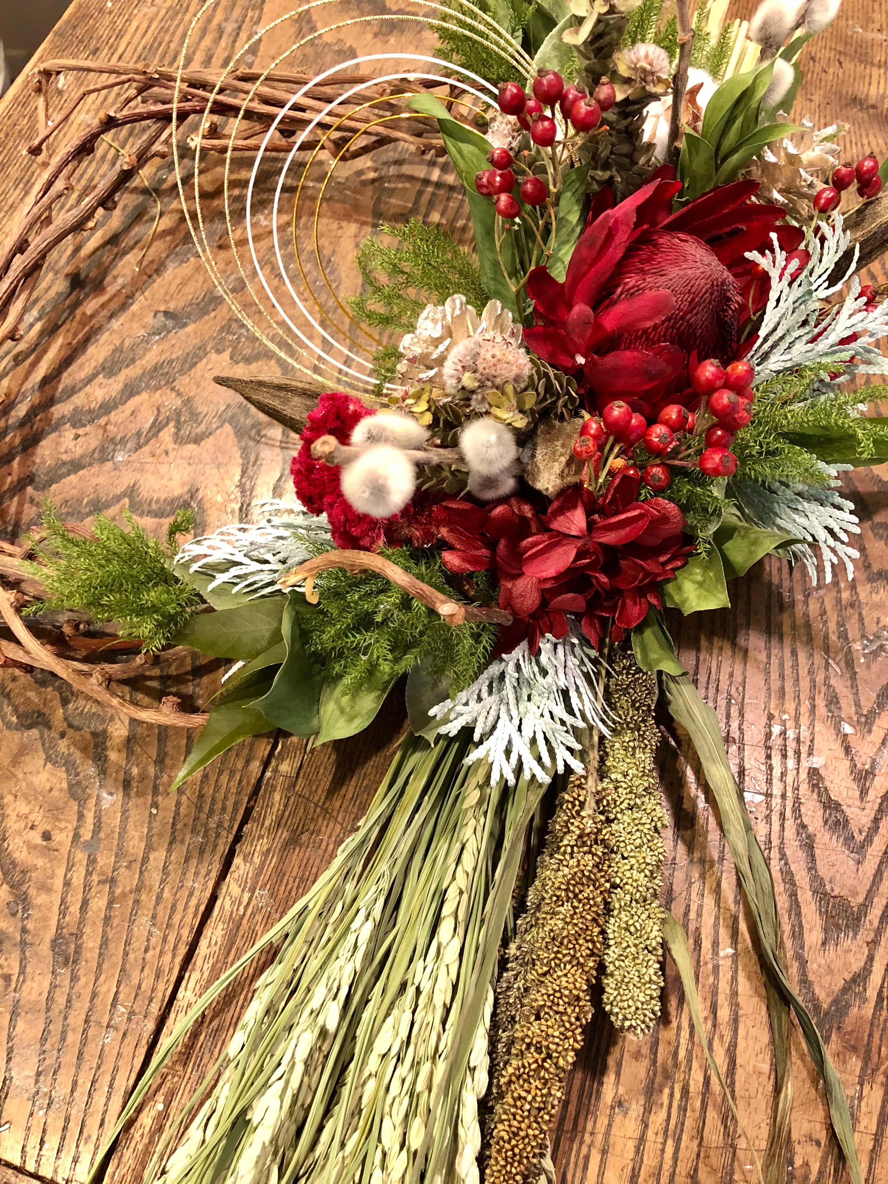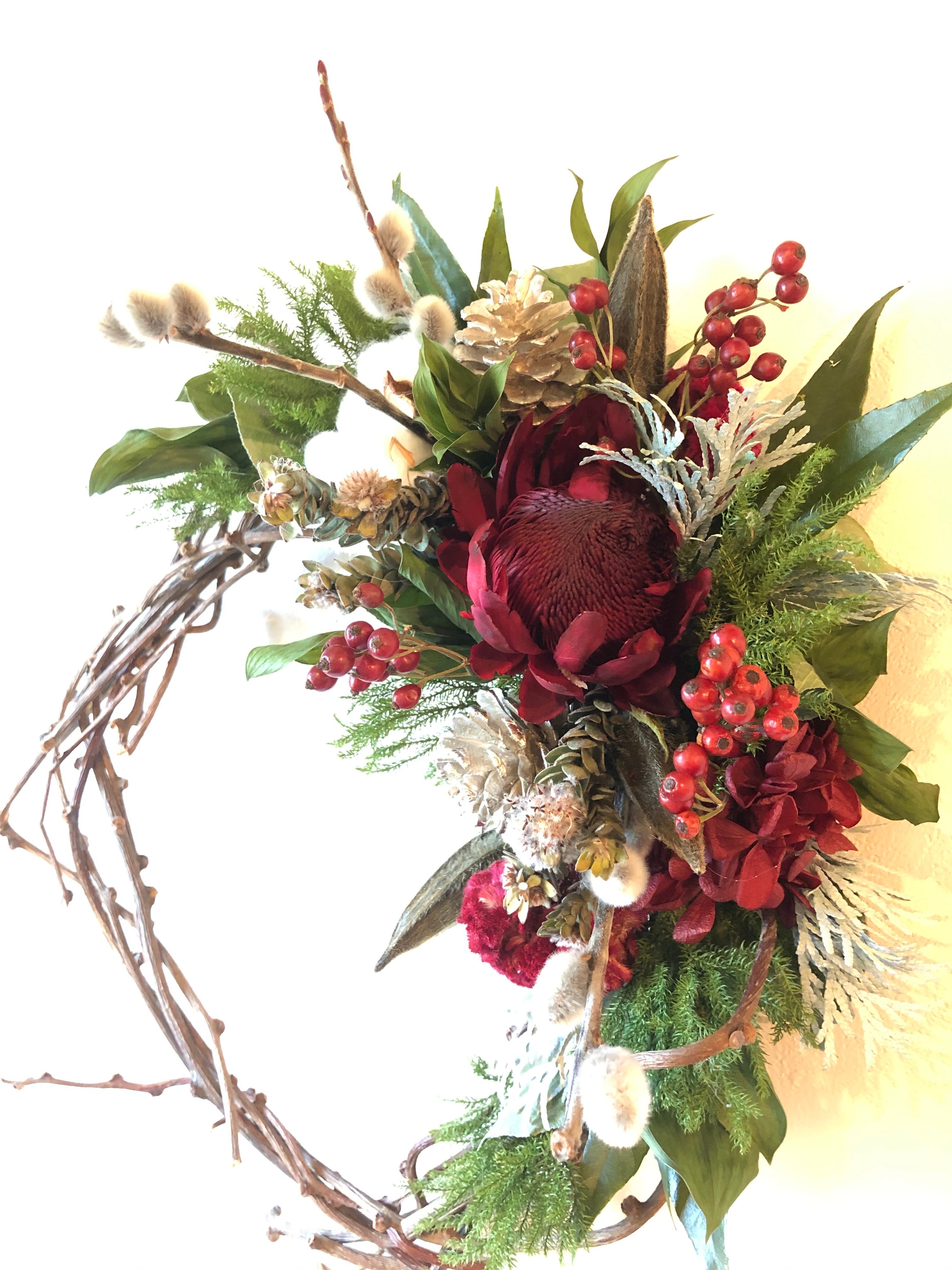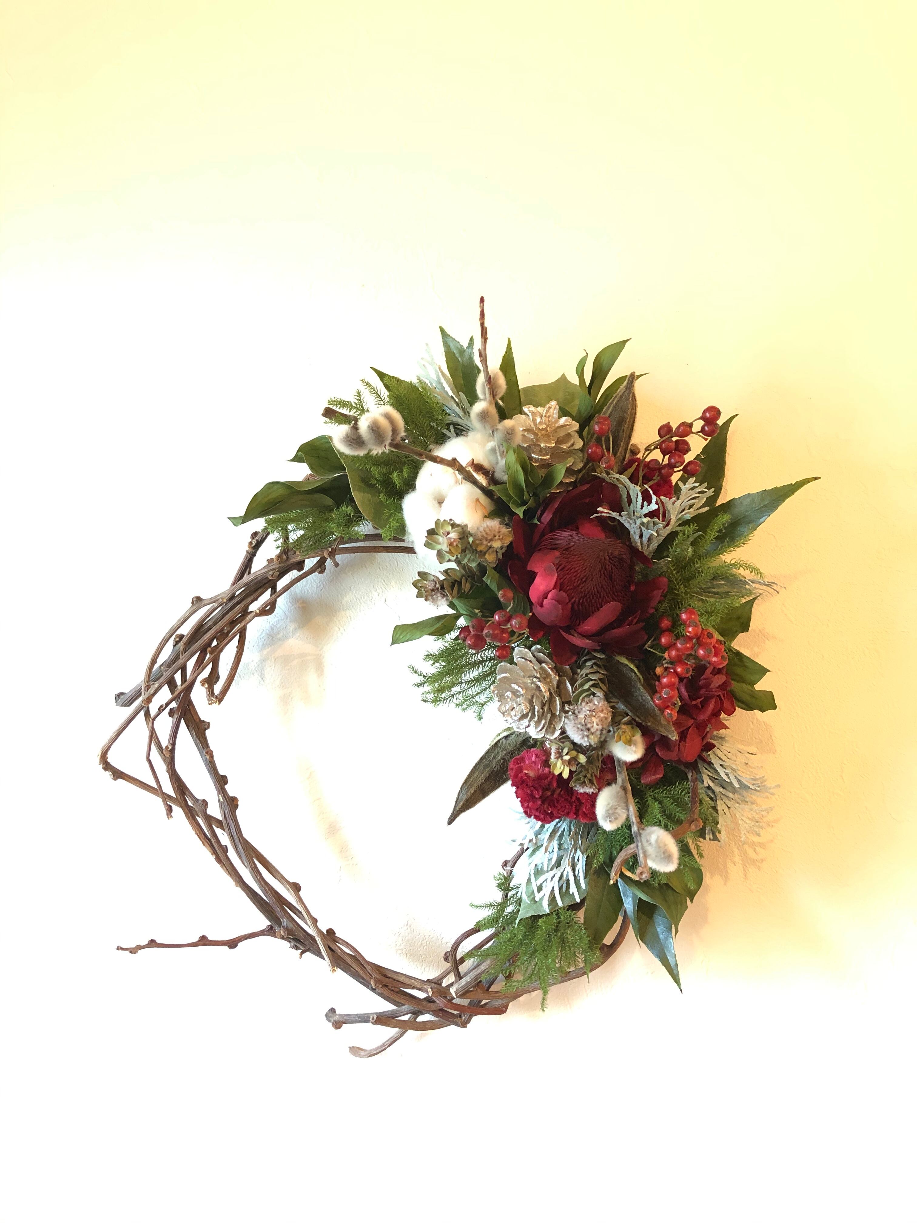 お正月が終わったら稲穂などと水引を外して、冬の間楽しんでいただけるリースに。