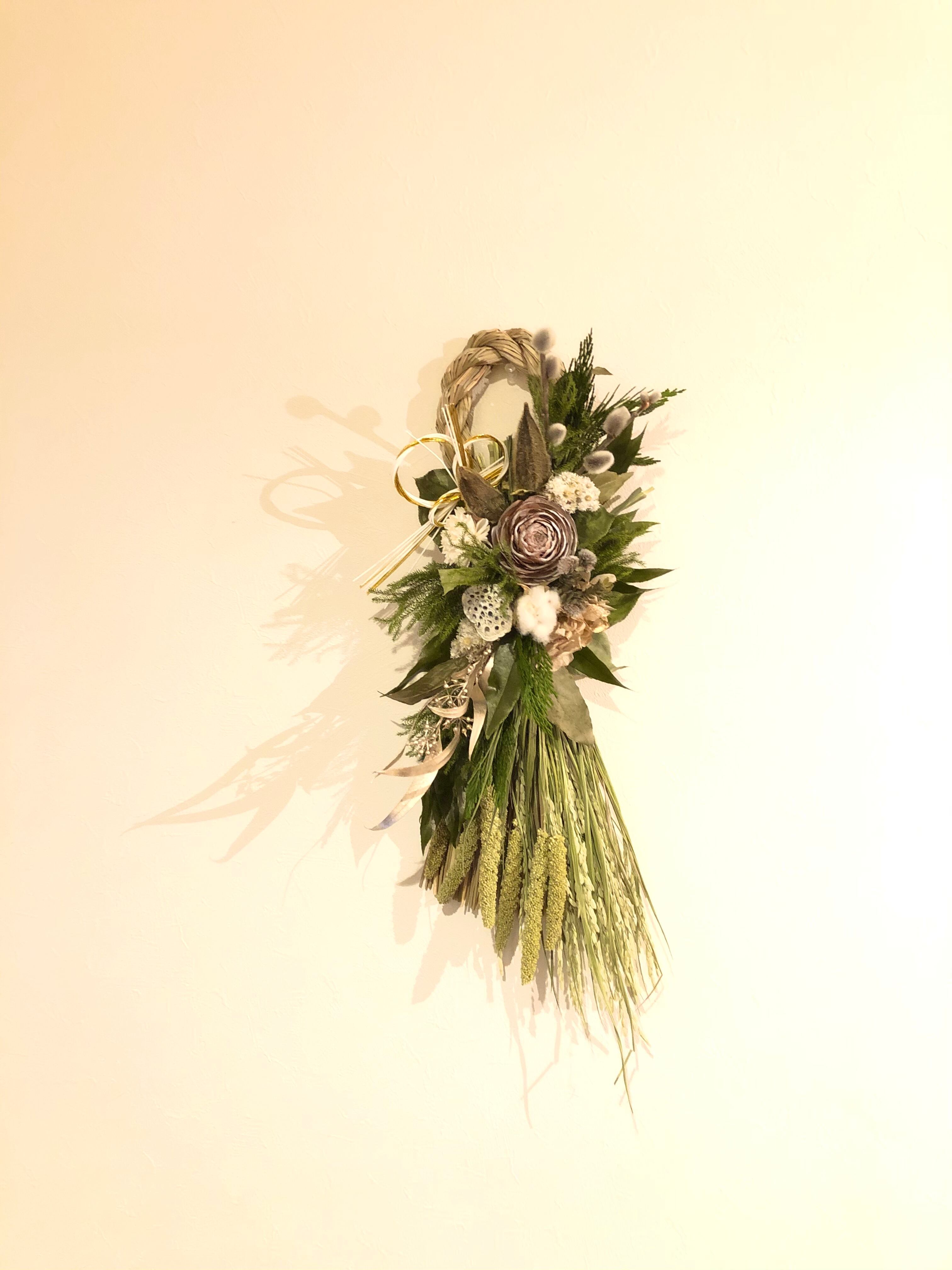 シックなシダローズをメインに、落ち着いた色合いのしめ飾り。