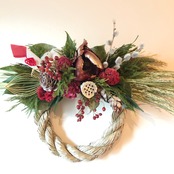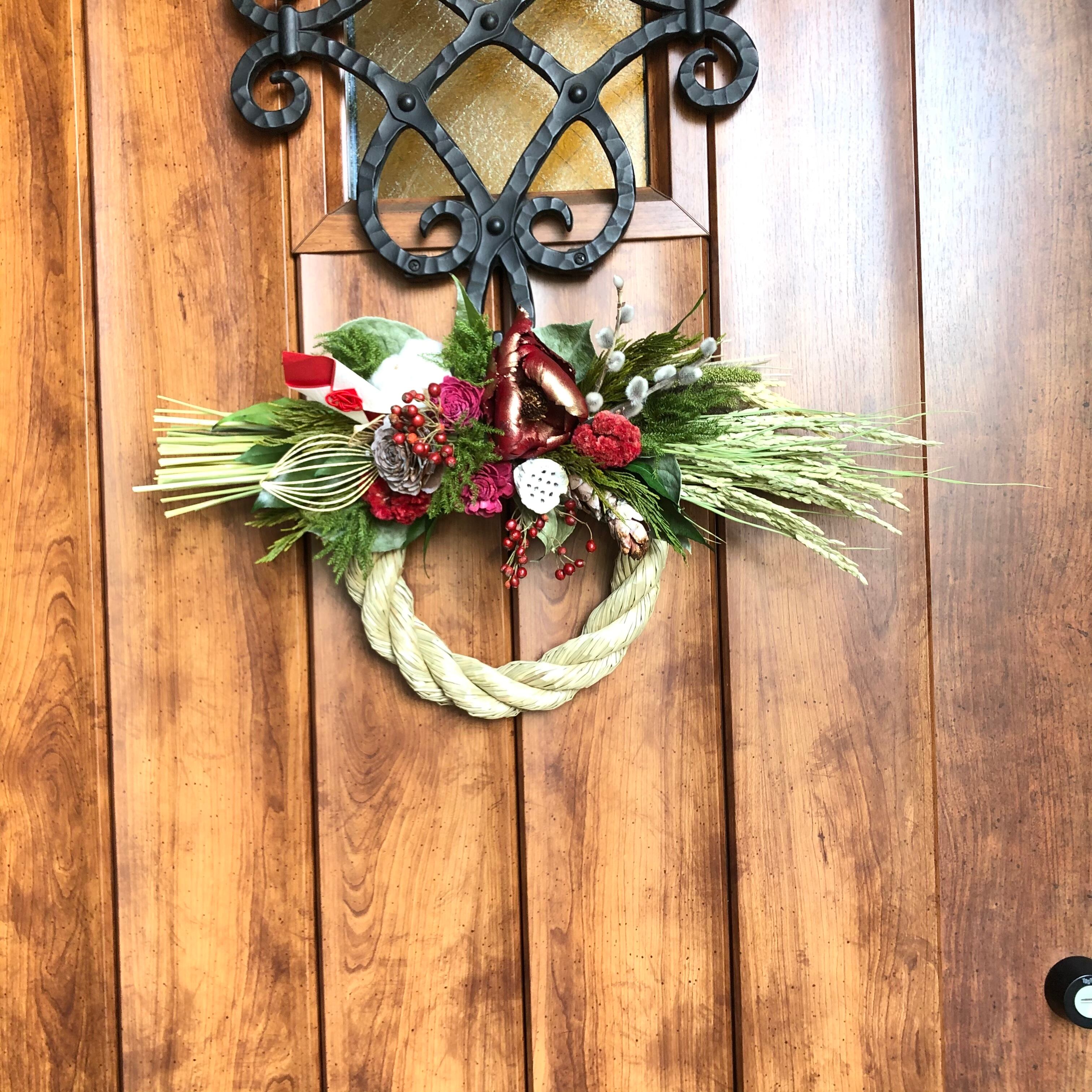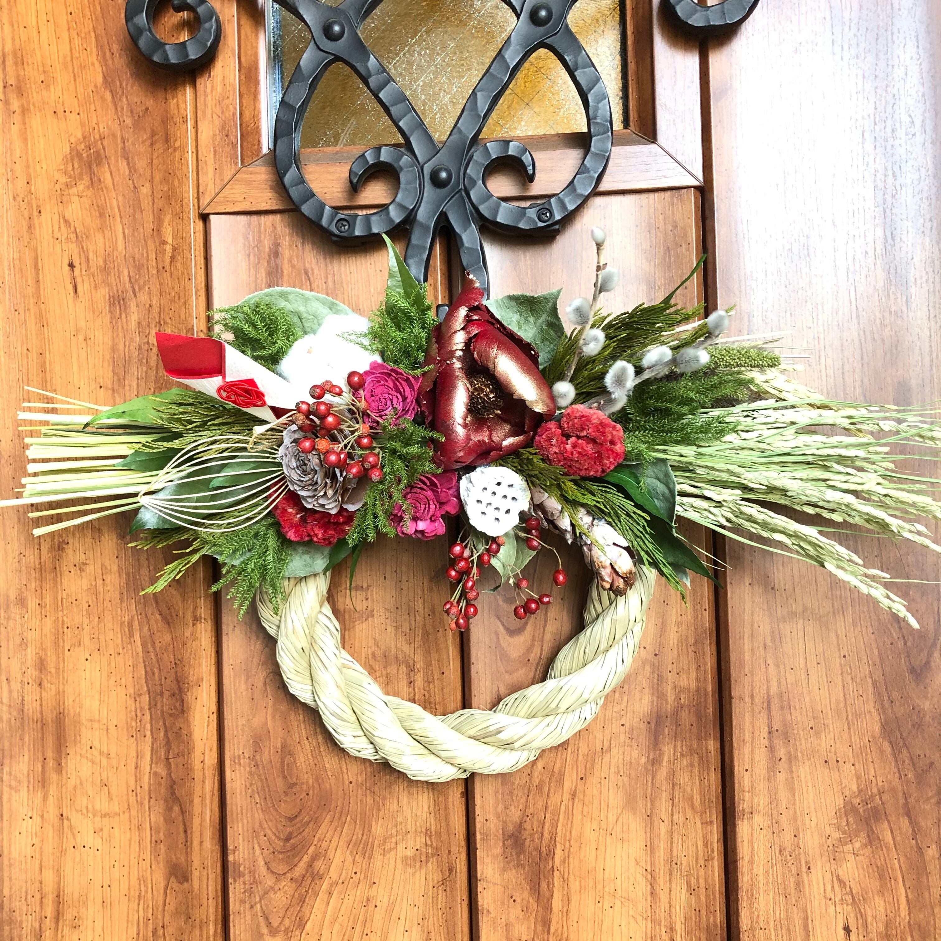 お玄関に飾って、新年を迎えるのにぴったりの華やかなしめ飾りアレンジです。
