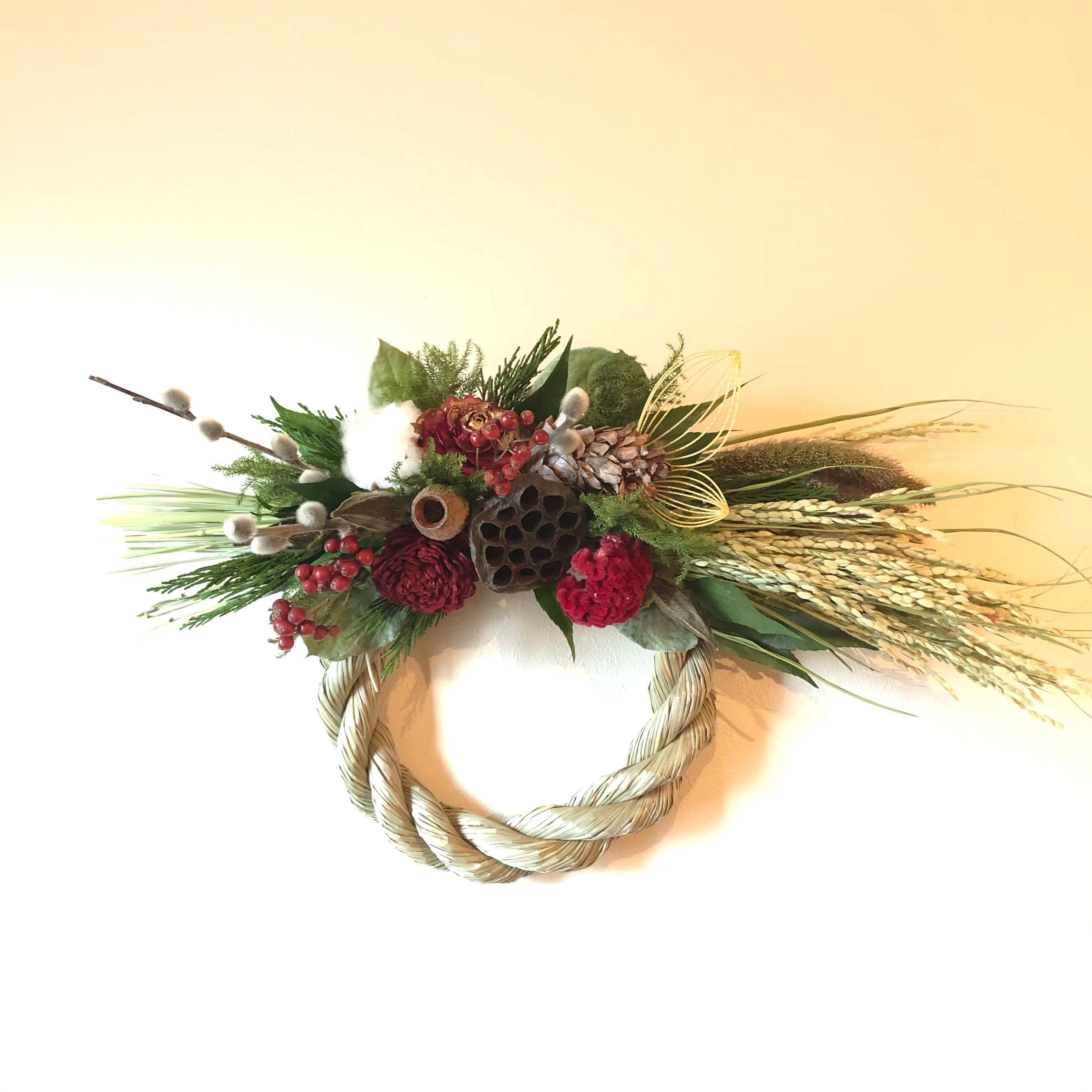 お玄関に飾って、新年を迎えるのにぴったりのしめ飾りアレンジです。
