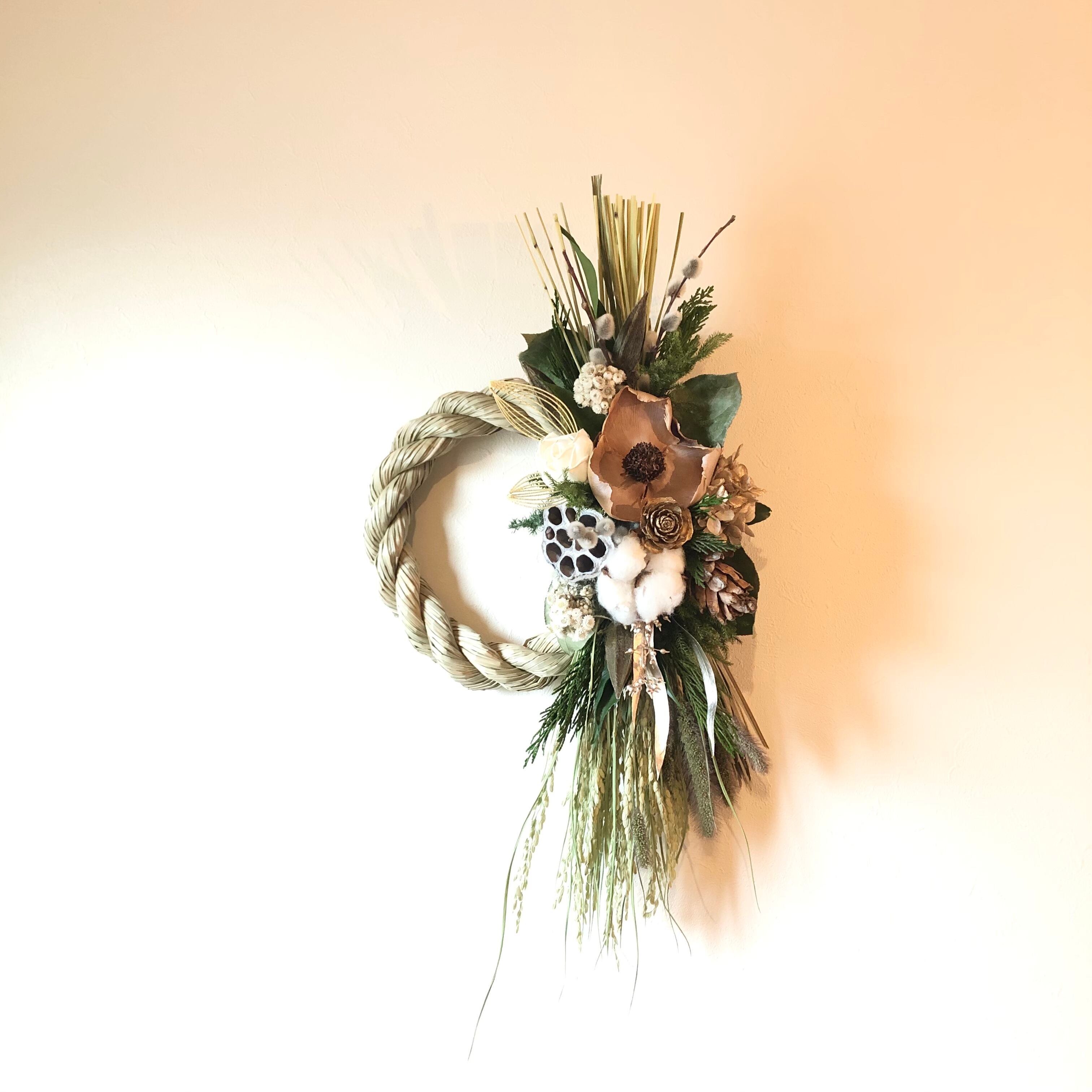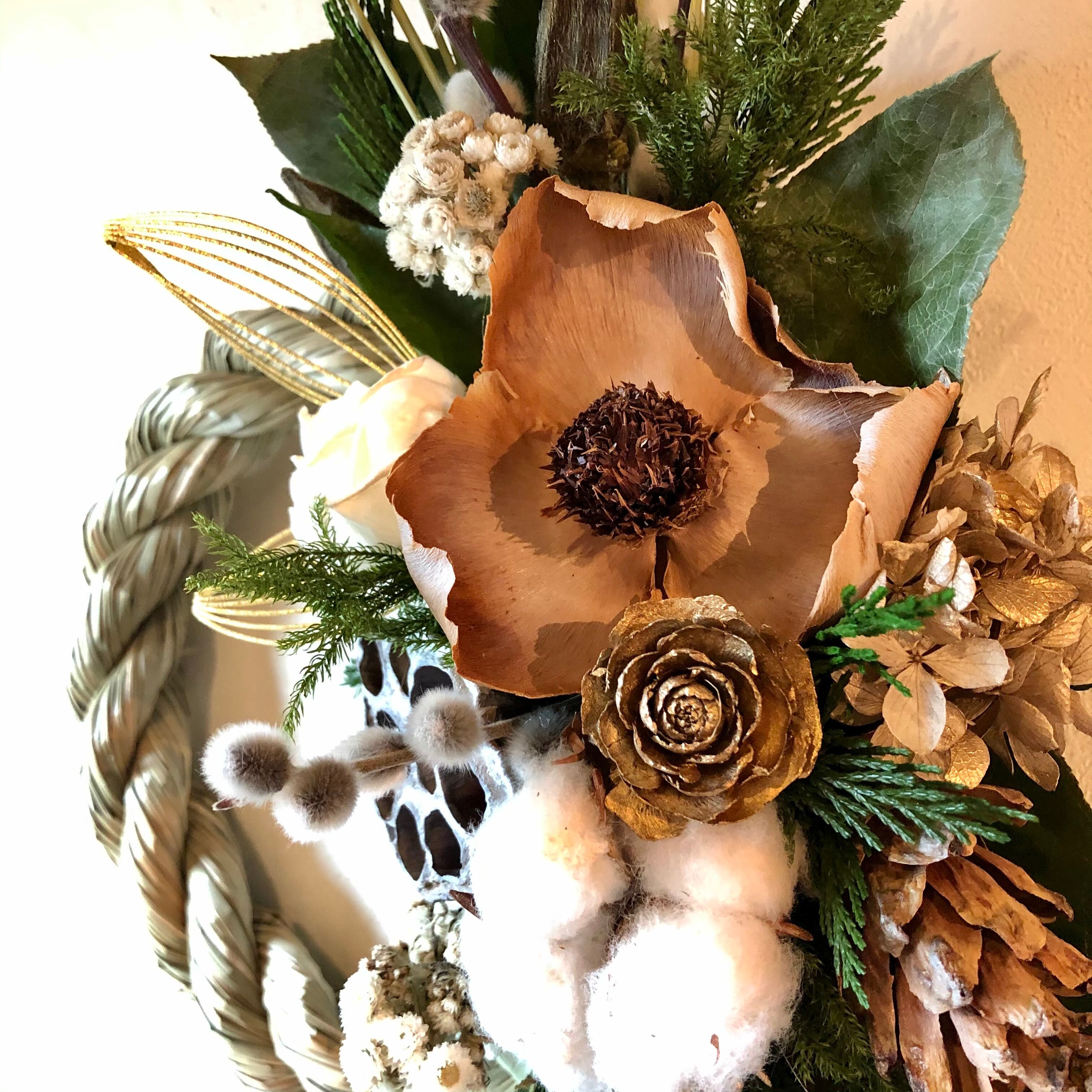玄関に飾って、新年を迎えるのにぴったりのしめ飾りアレンジです。