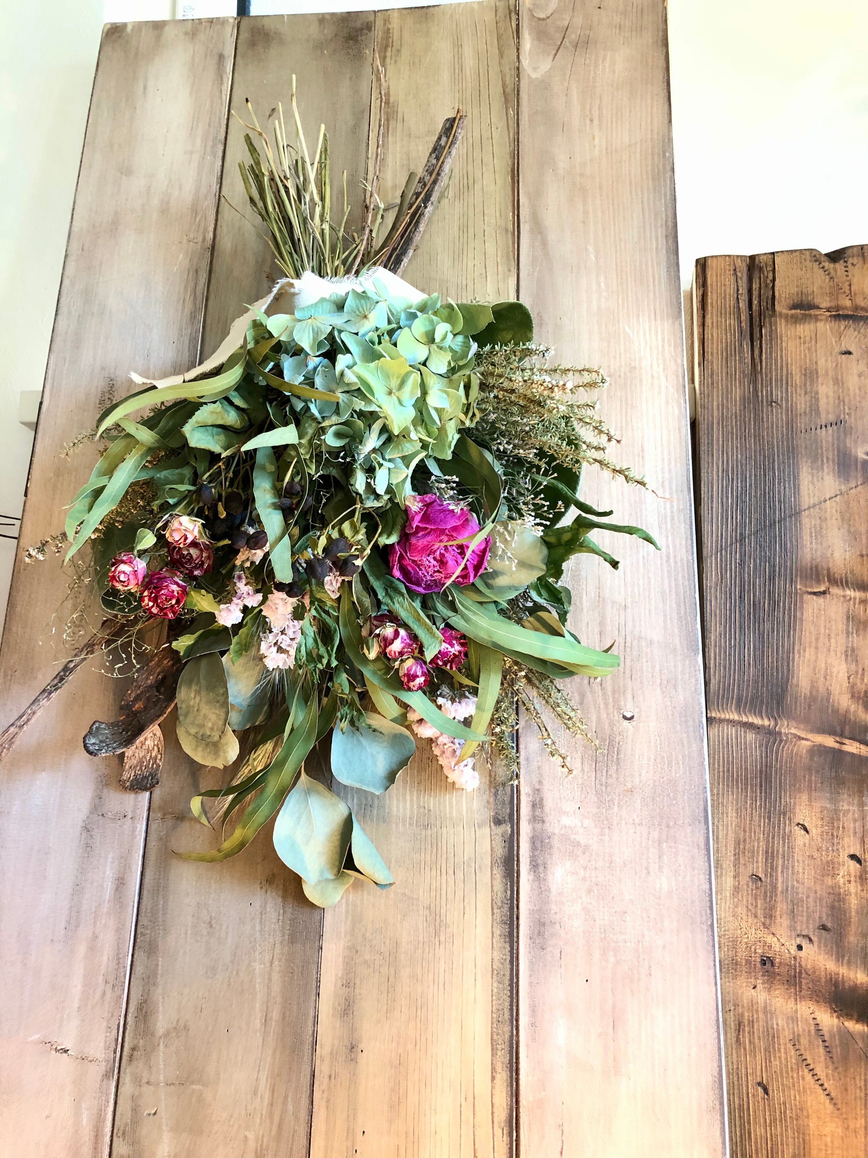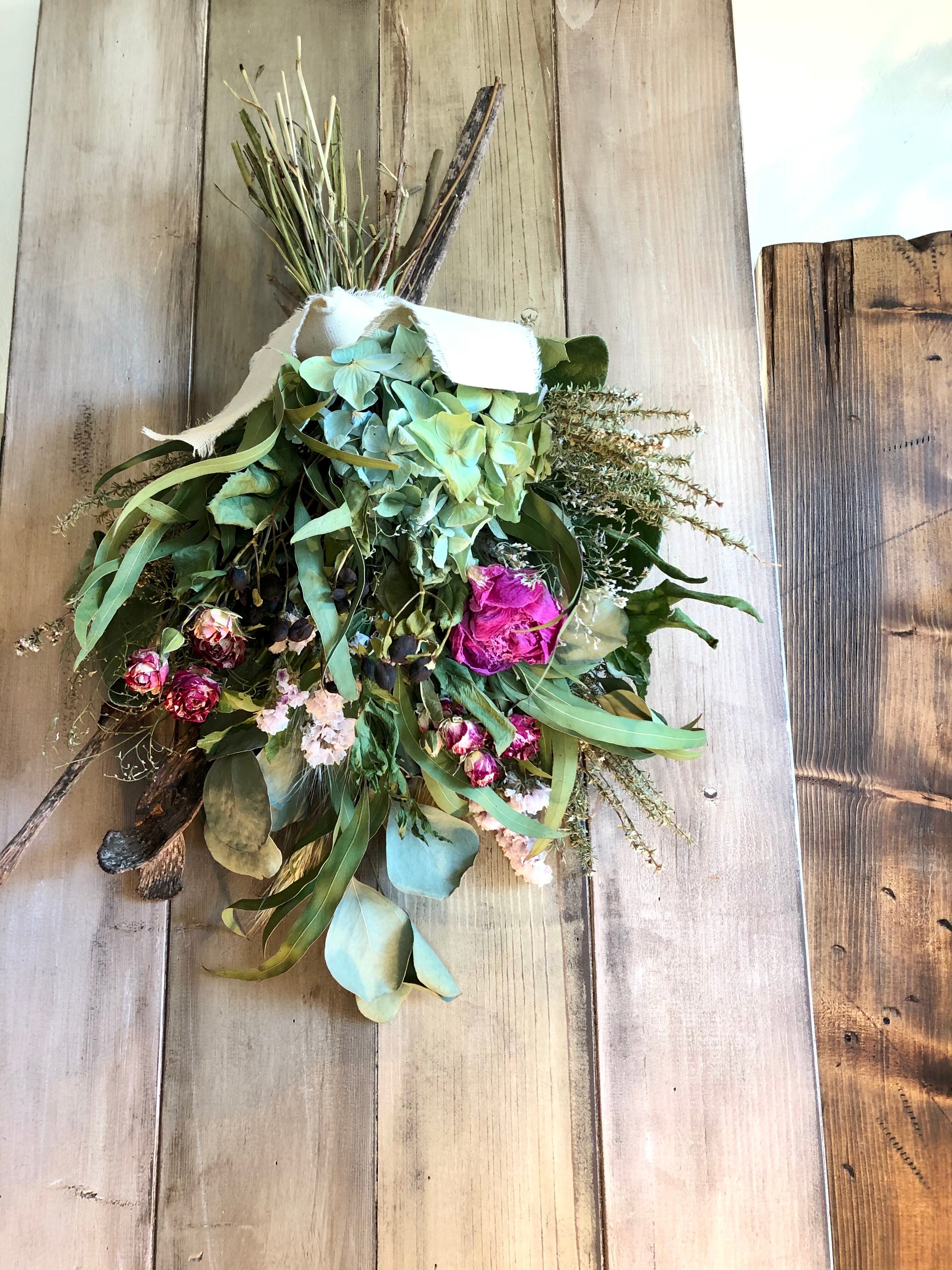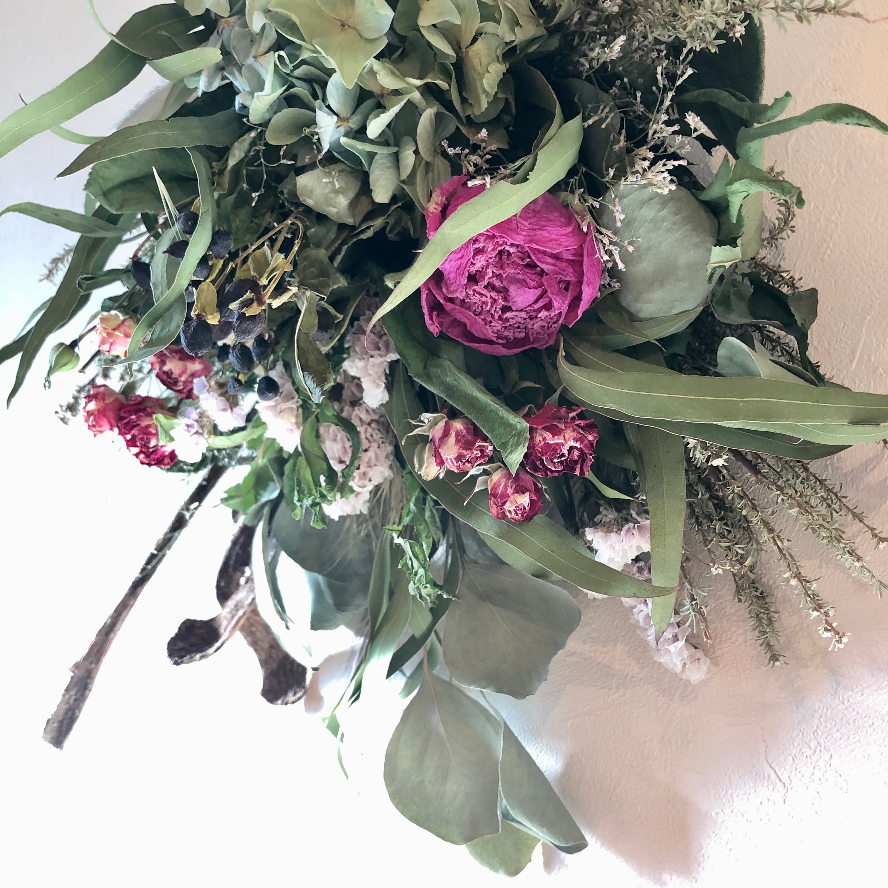 数種類のユーカリと雑穀をベースにしてアジサイをたっぷりと入れて。