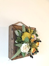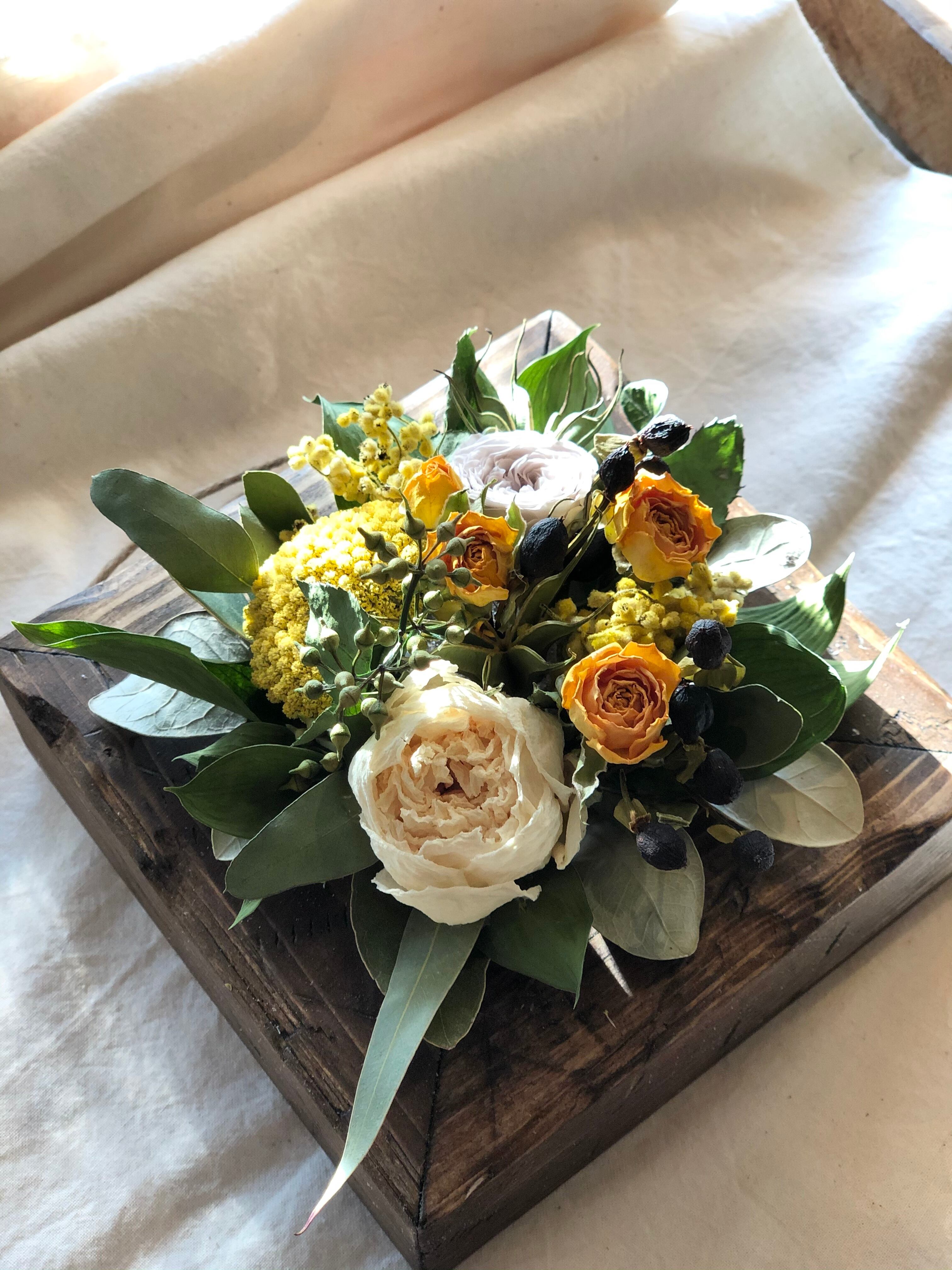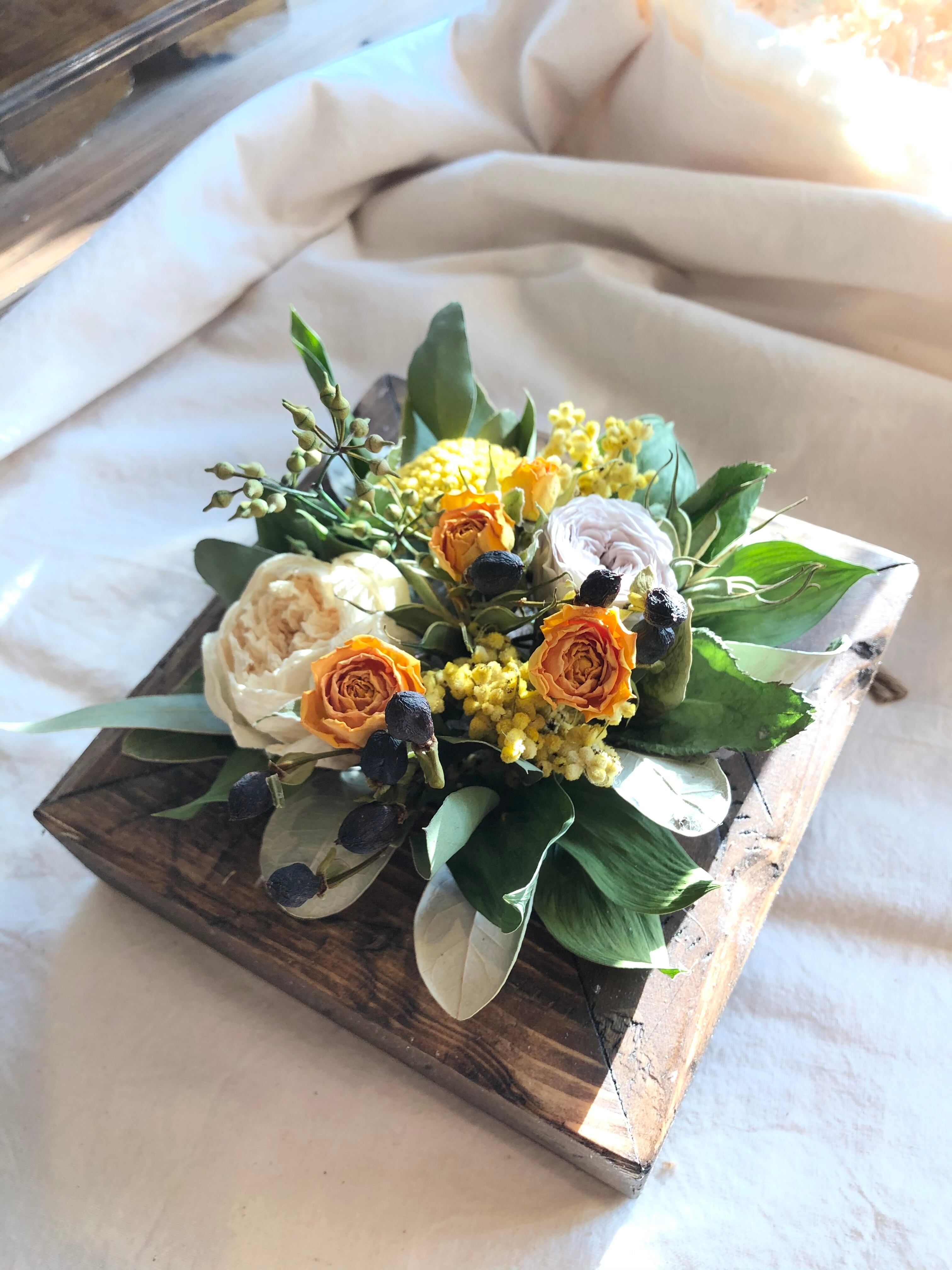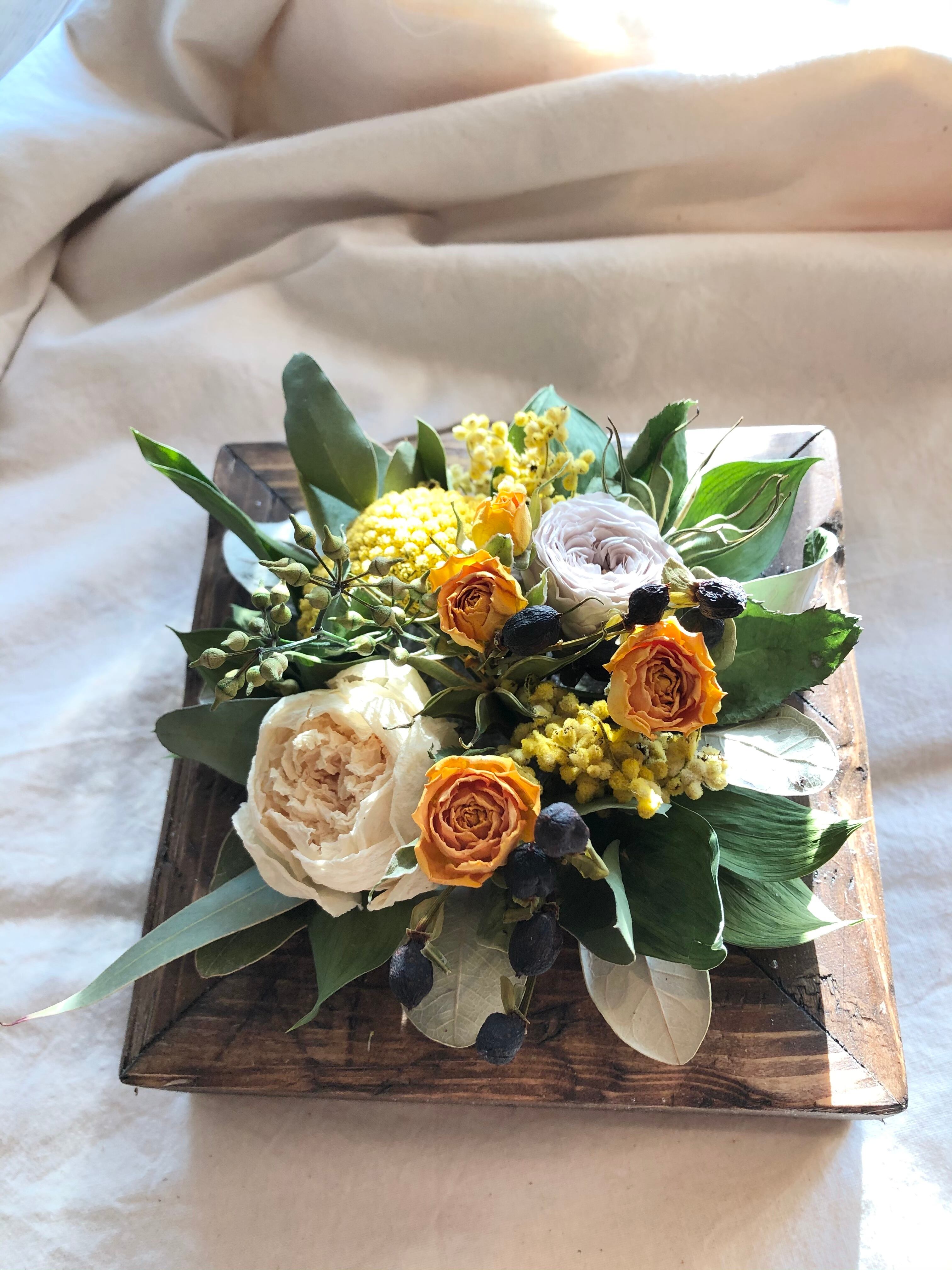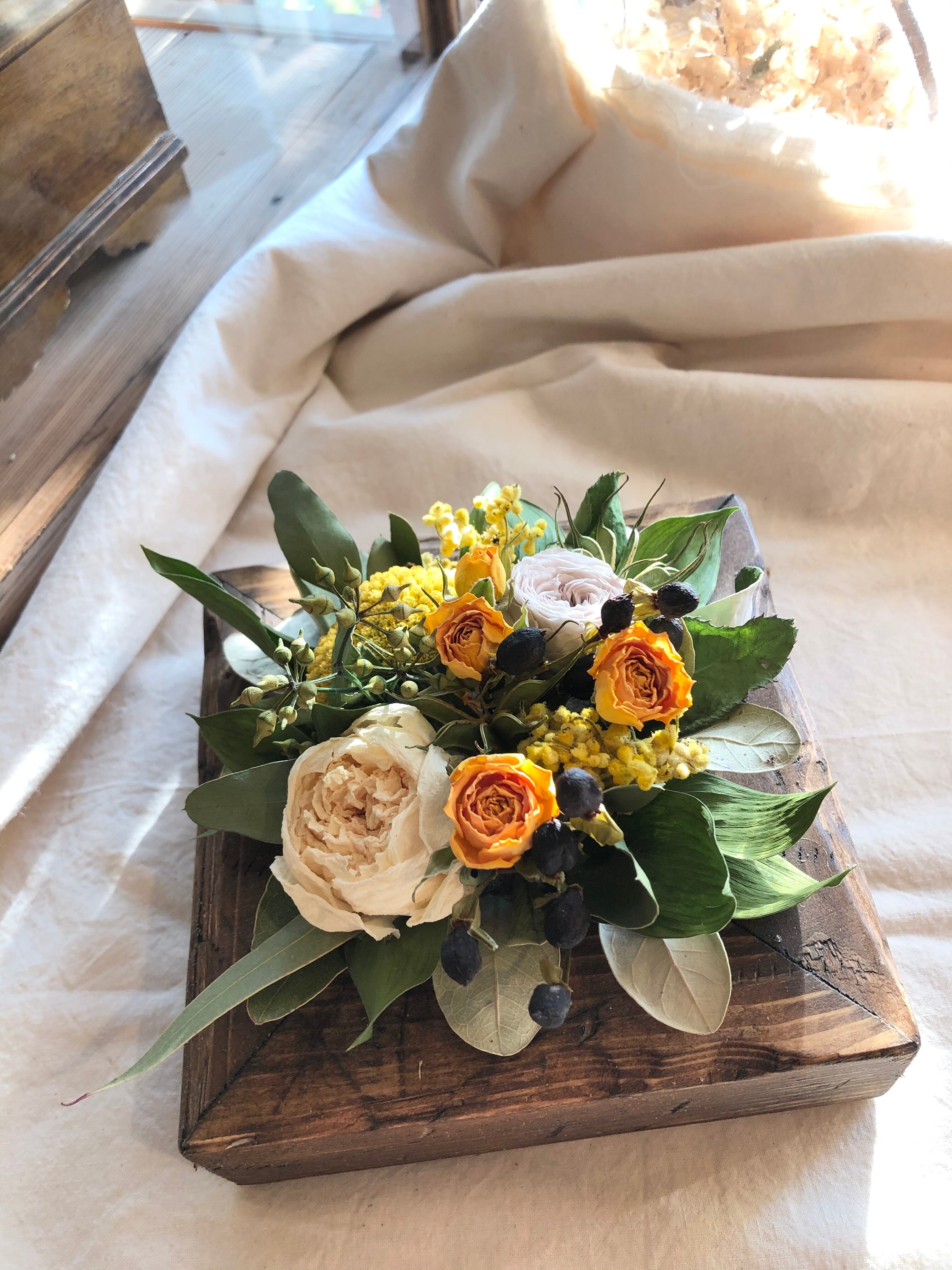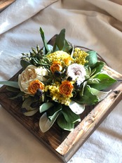 古木フレームの厚みが4㎝。ボリューム感もあり、ちょっとした贈り物にも喜ばれるアレンジメントです。