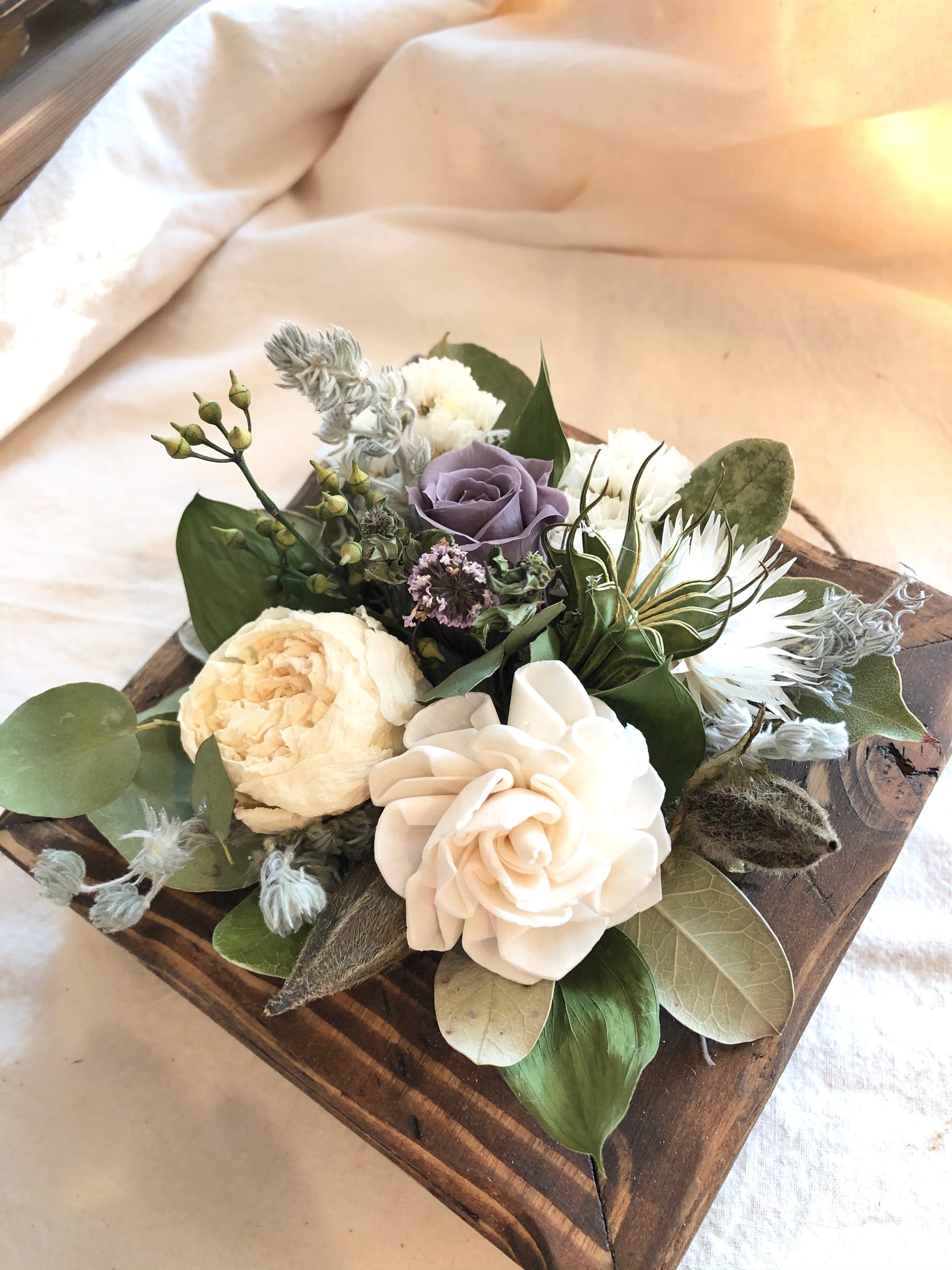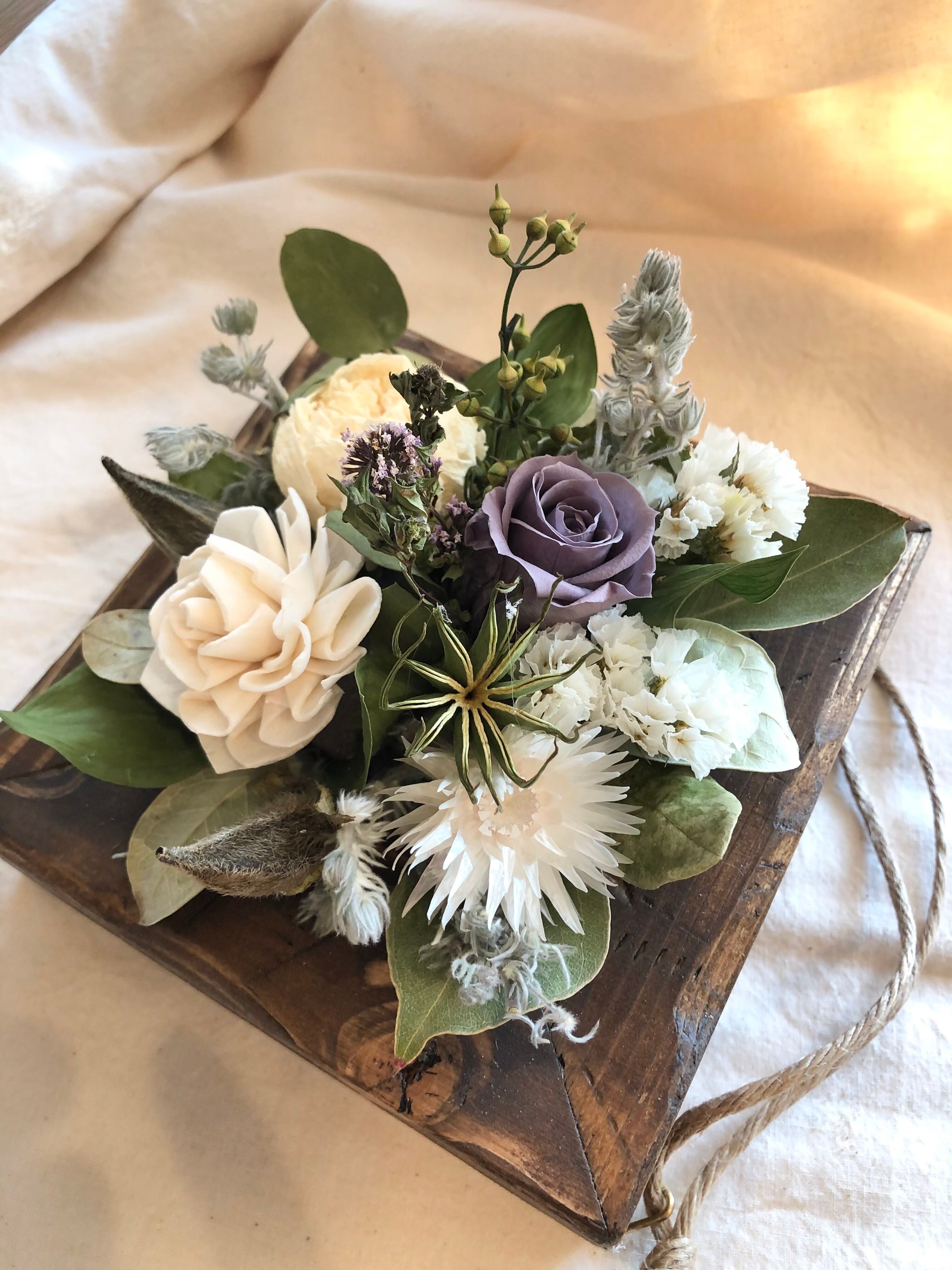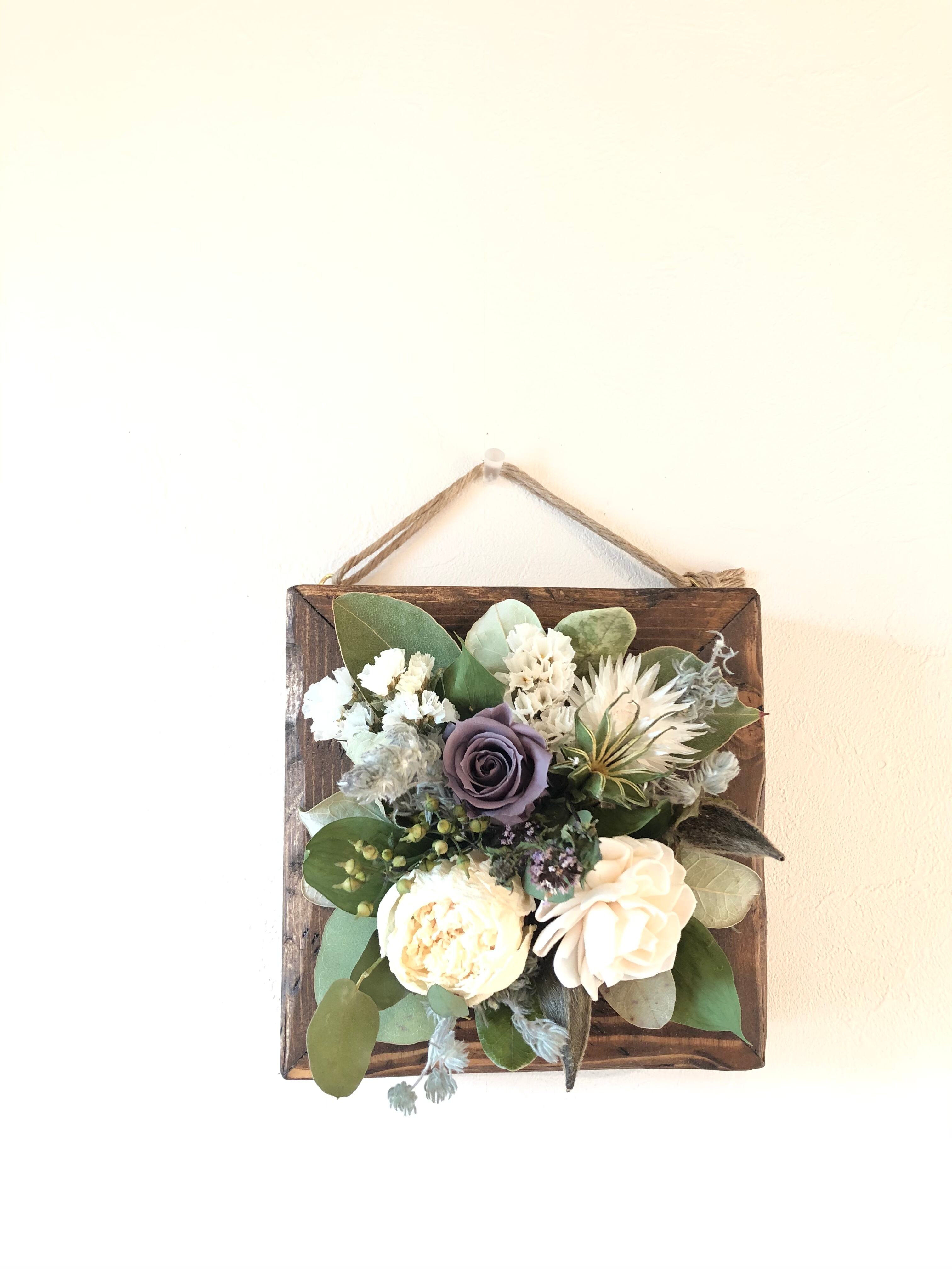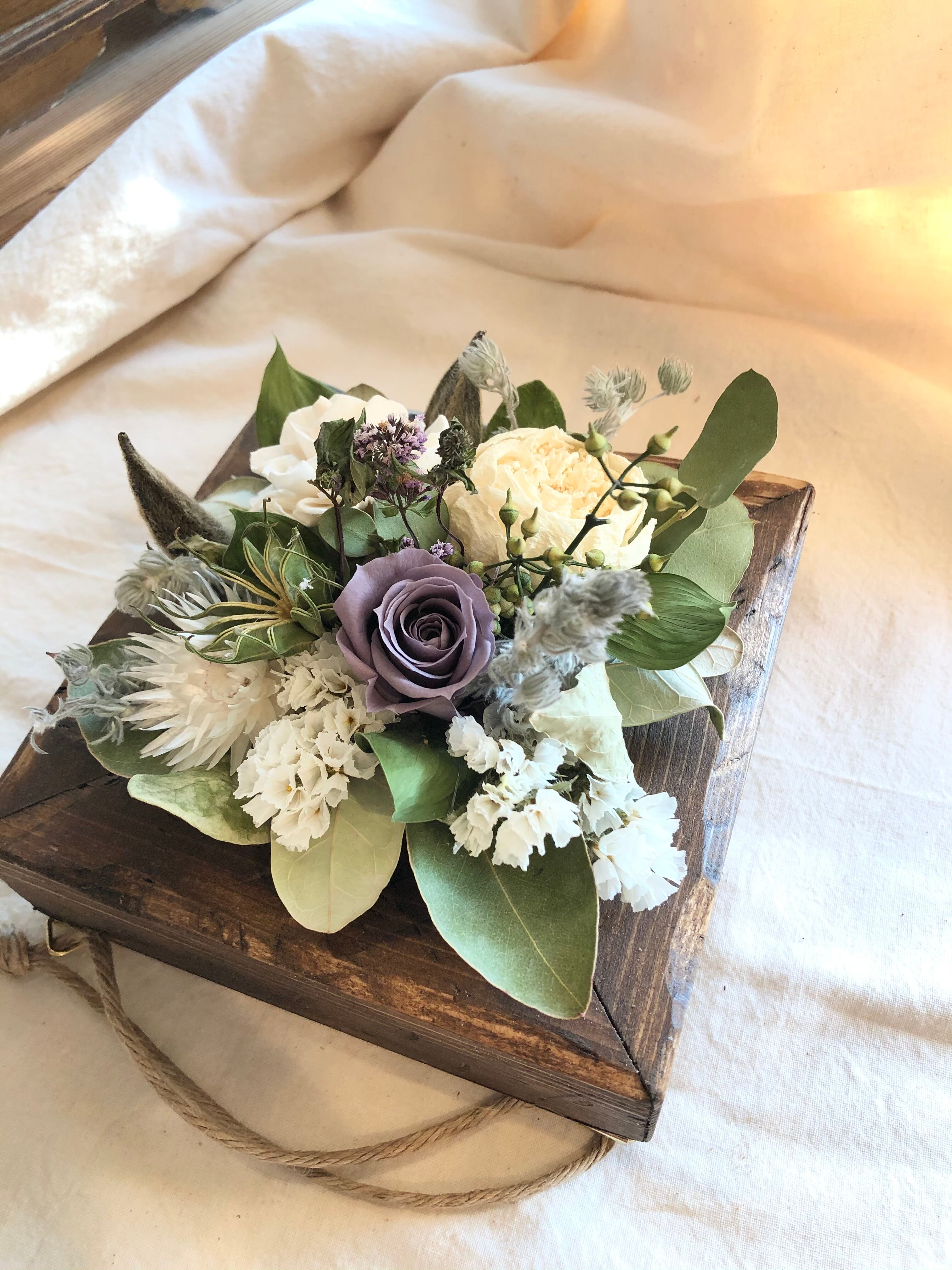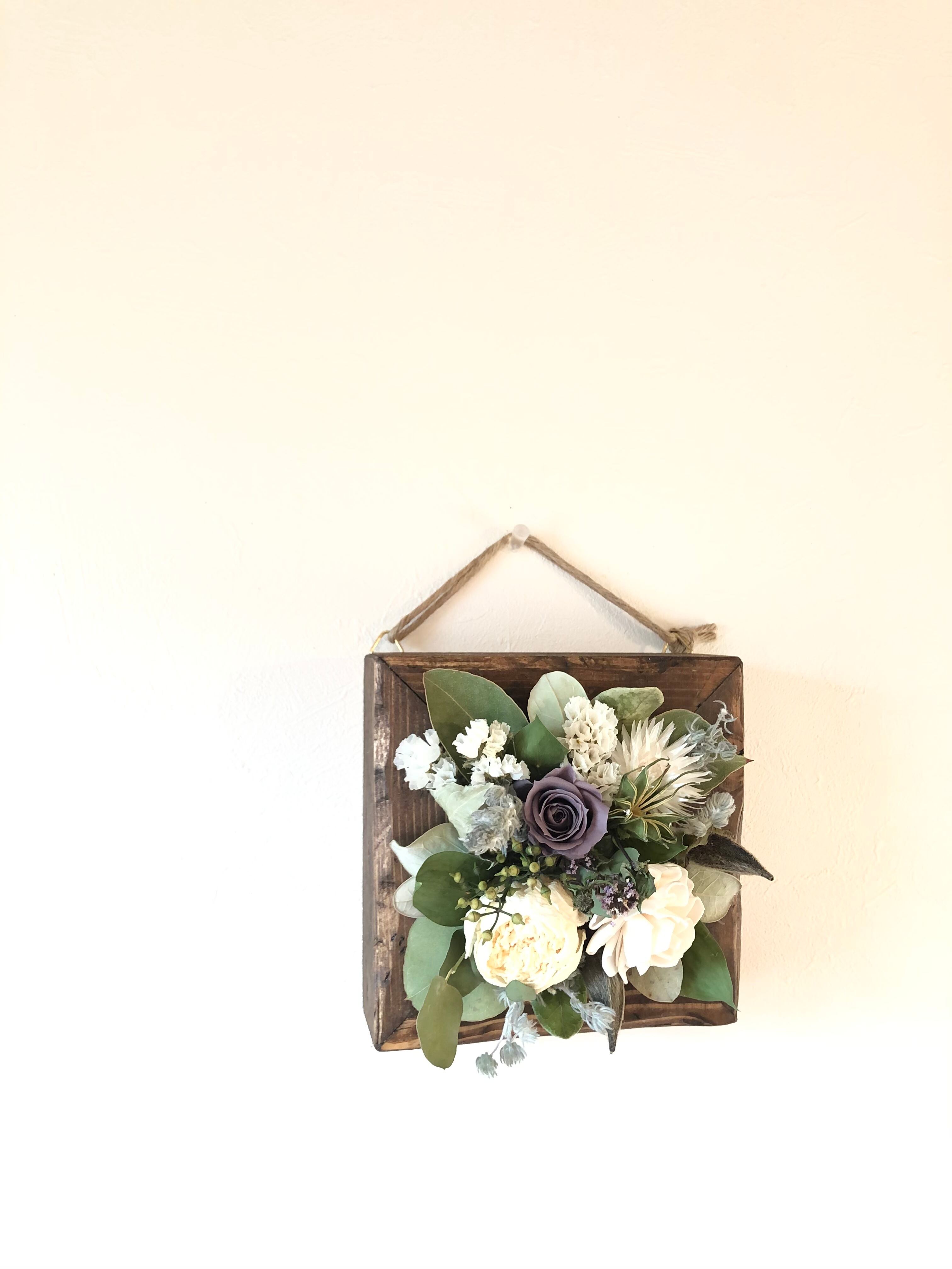 古木フレームの厚みが4㎝。ボリューム感もあり、ちょっとした贈り物にも喜ばれるアレンジメントです。