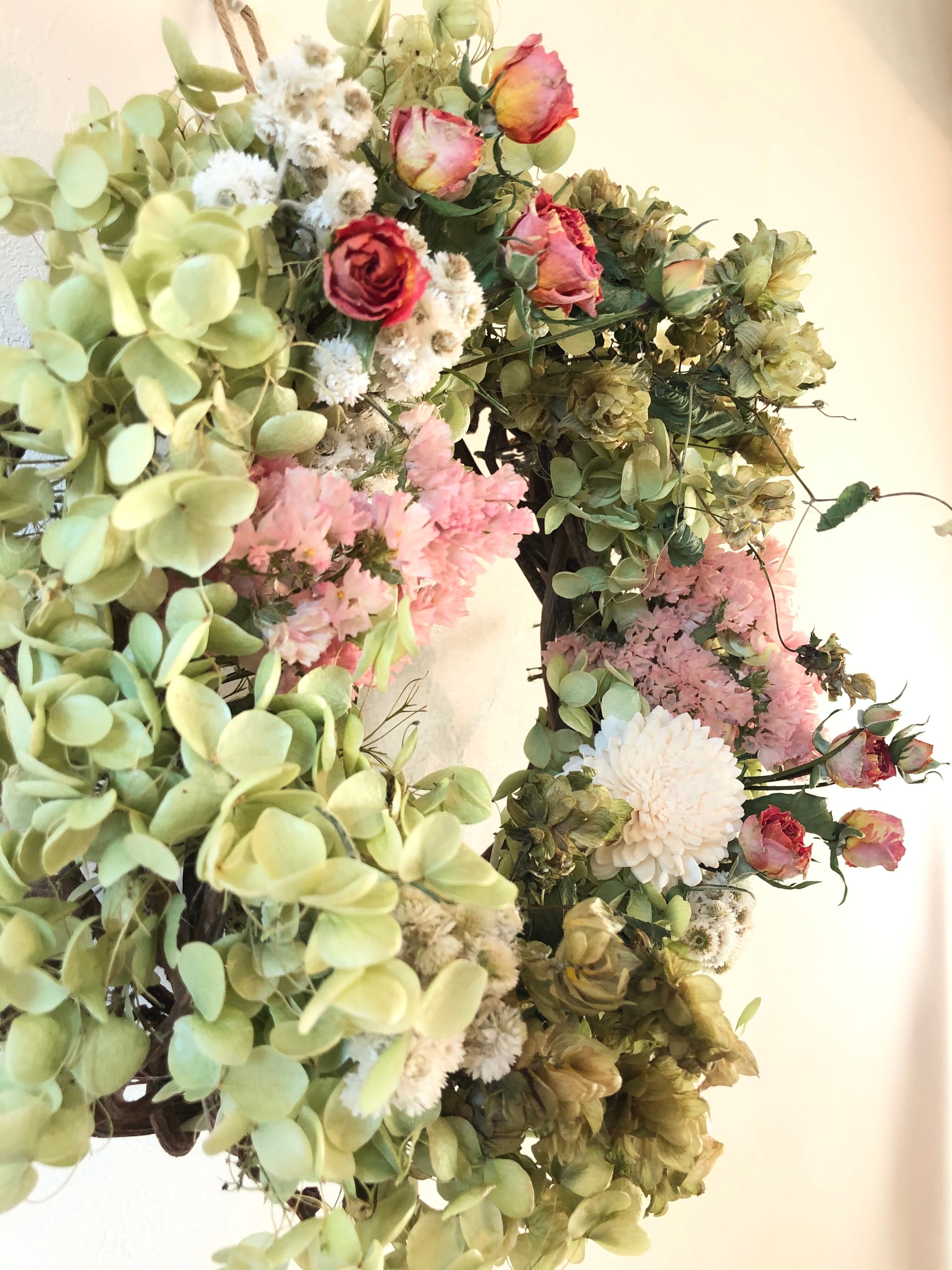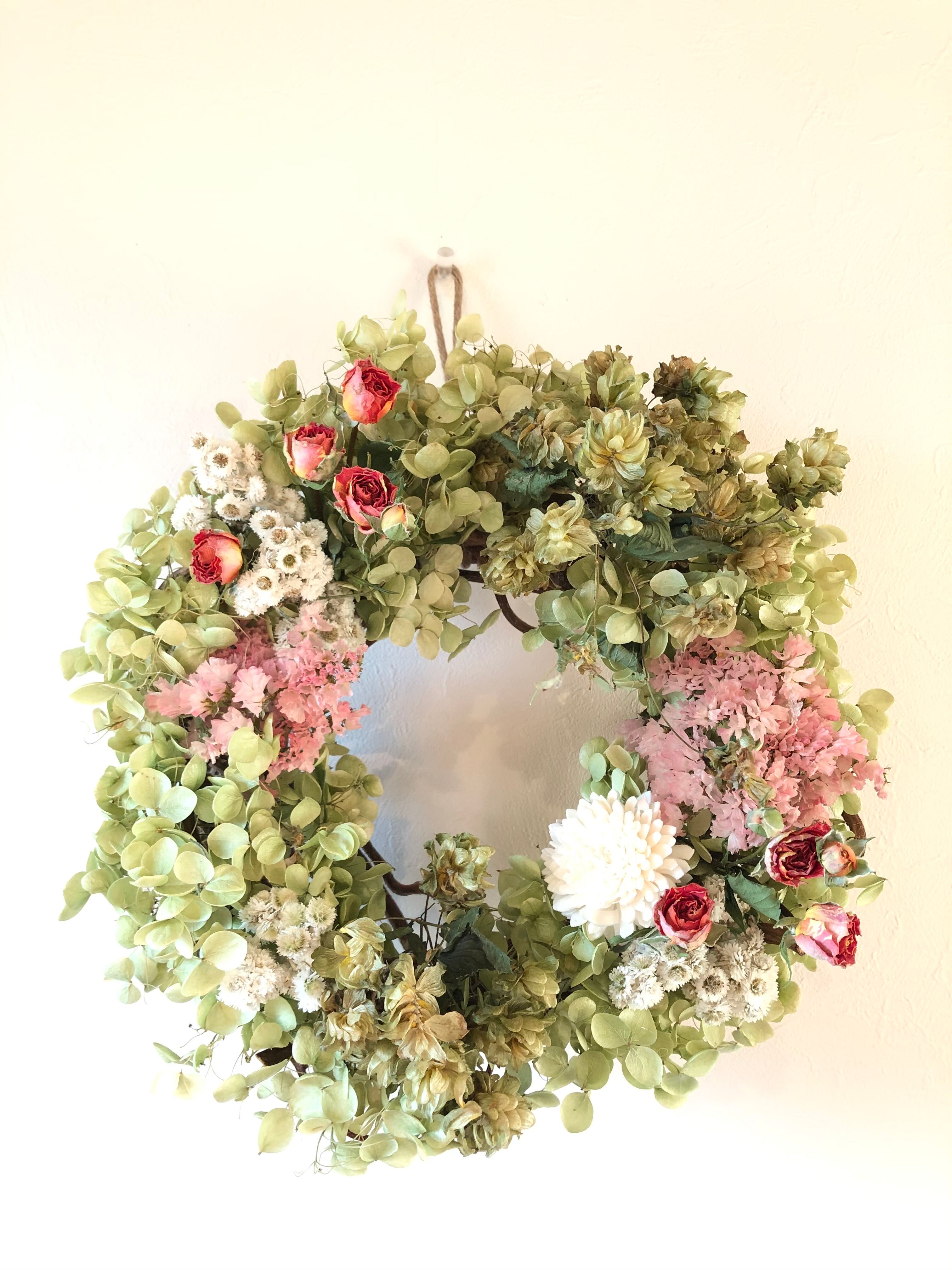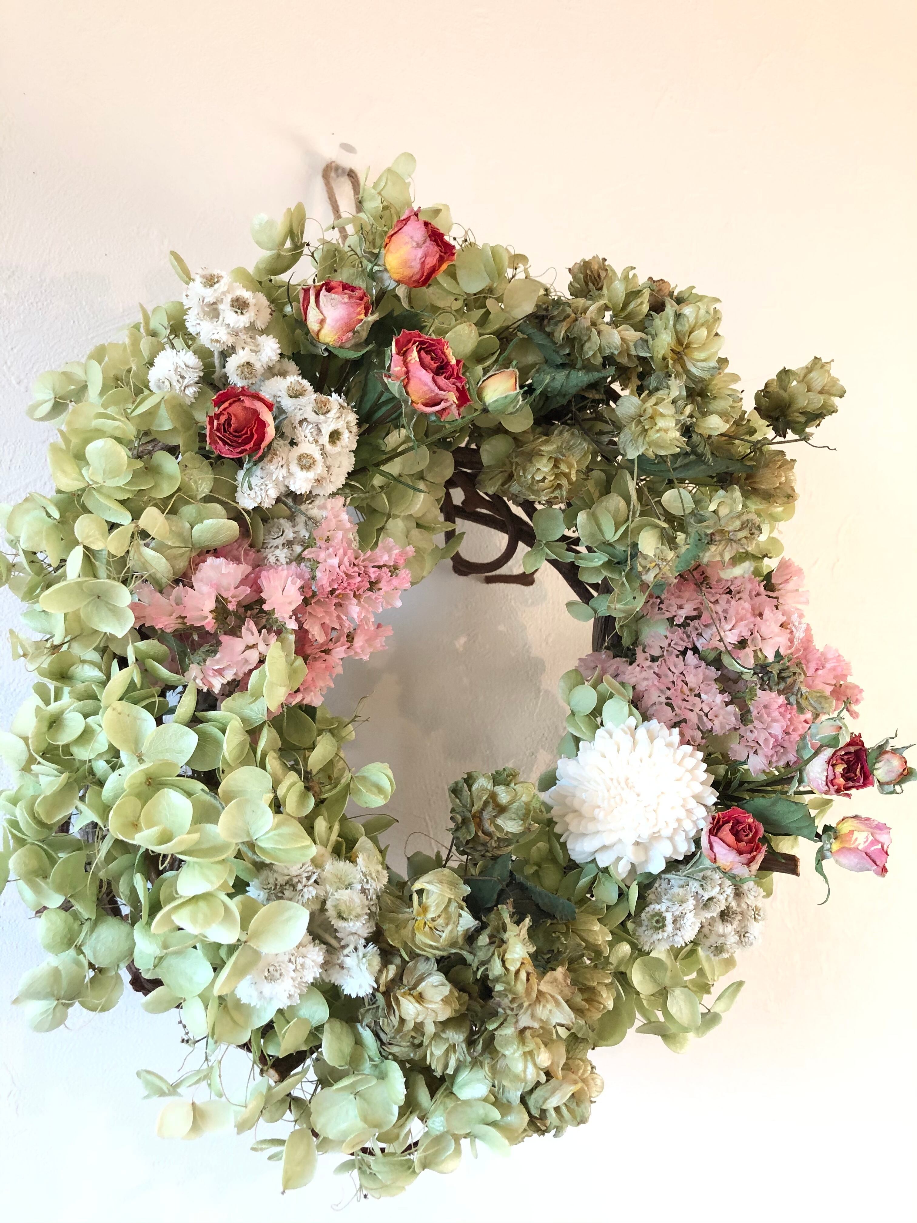 【DF-112 ホップとアナベルのリース(サーモンピンク)・ドライフラワー 】
