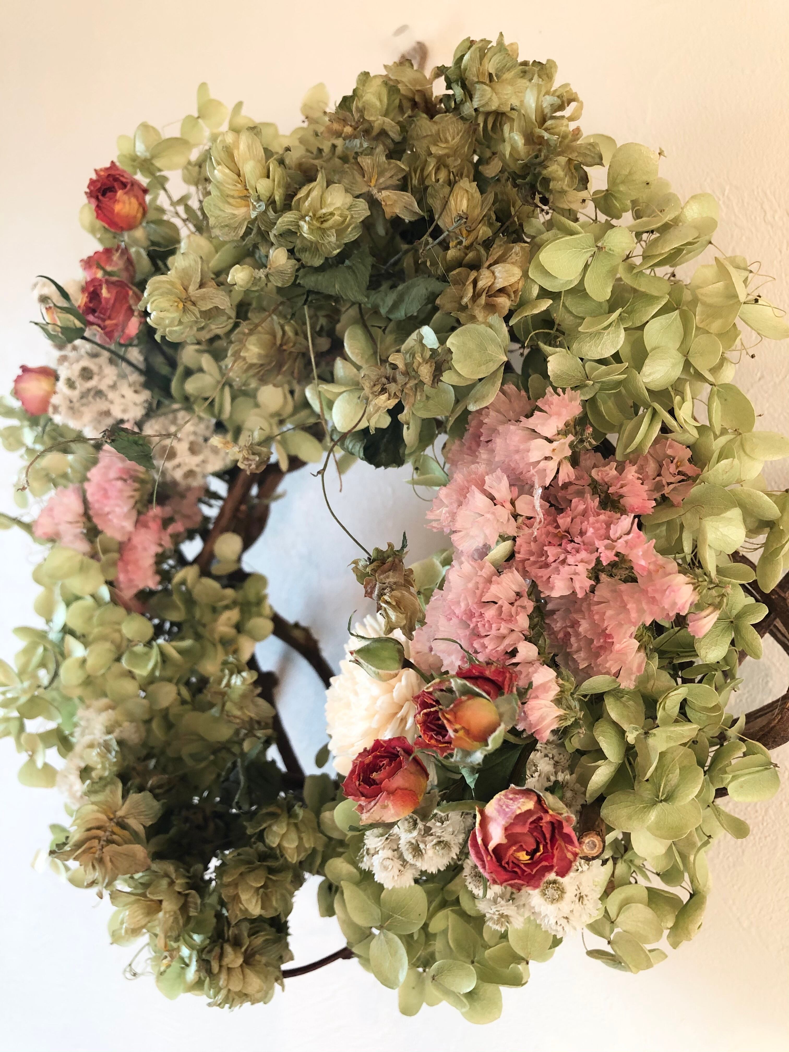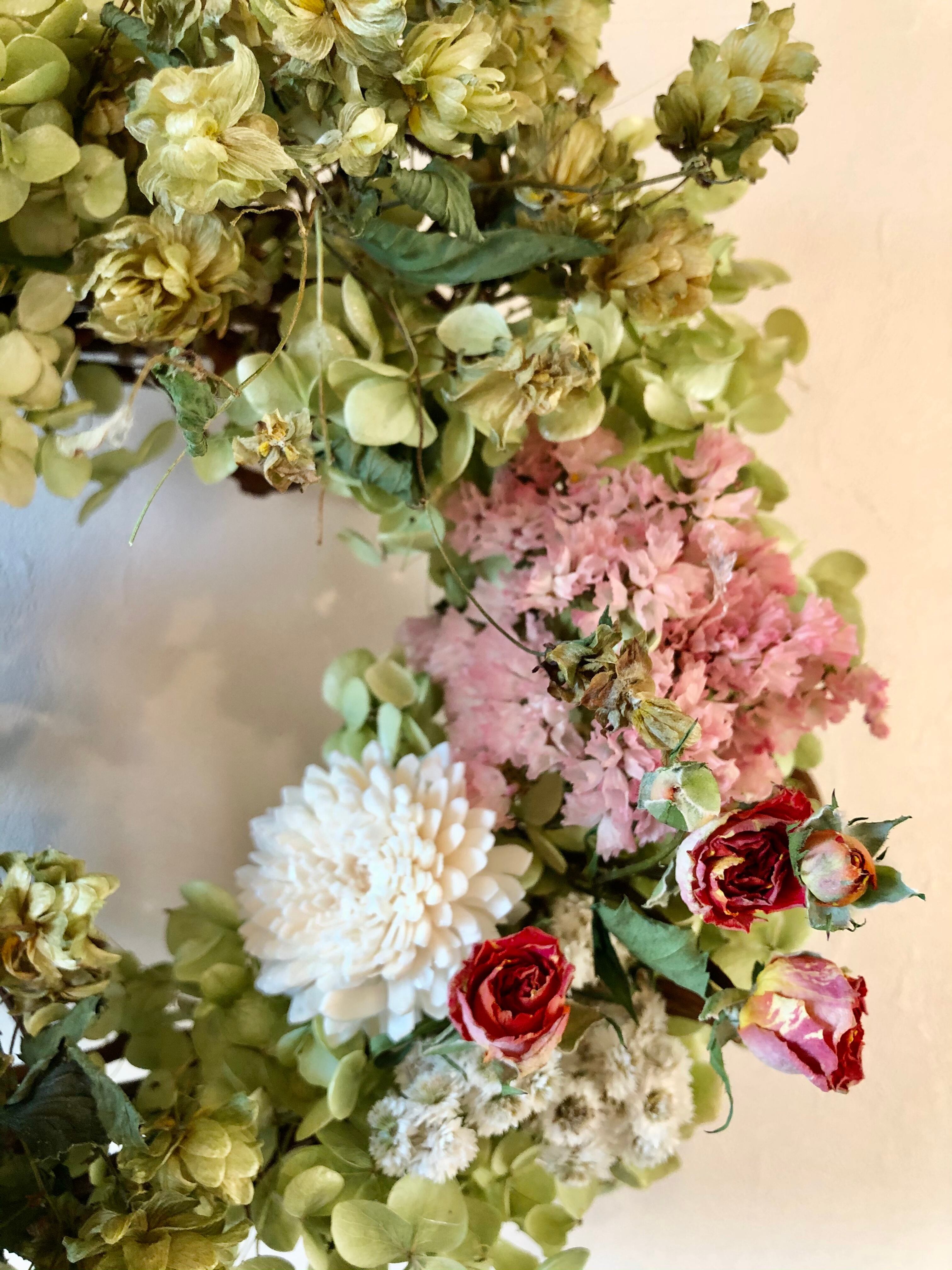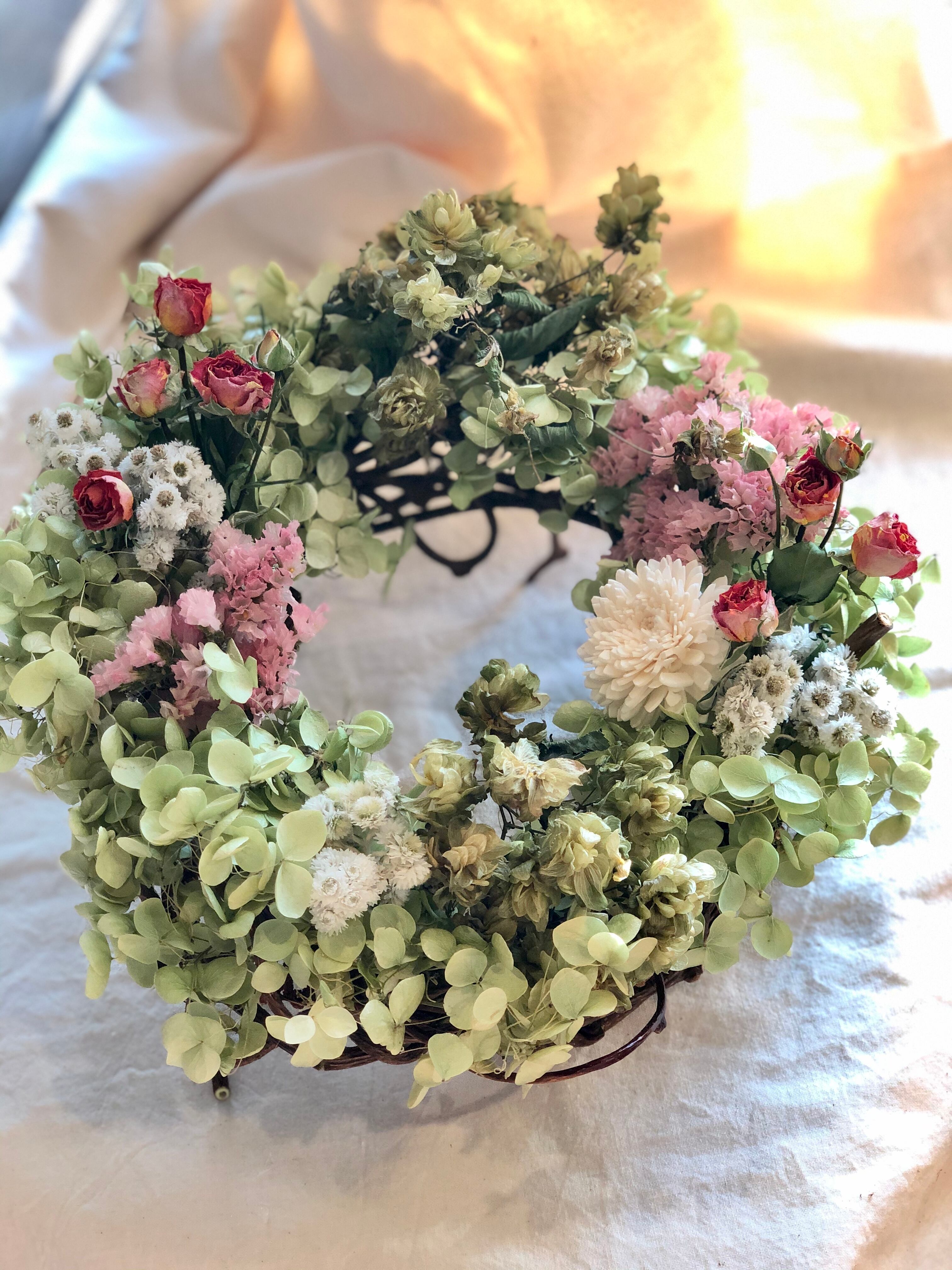 【DF-112 ホップとアナベルのリース(サーモンピンク)・ドライフラワー 】