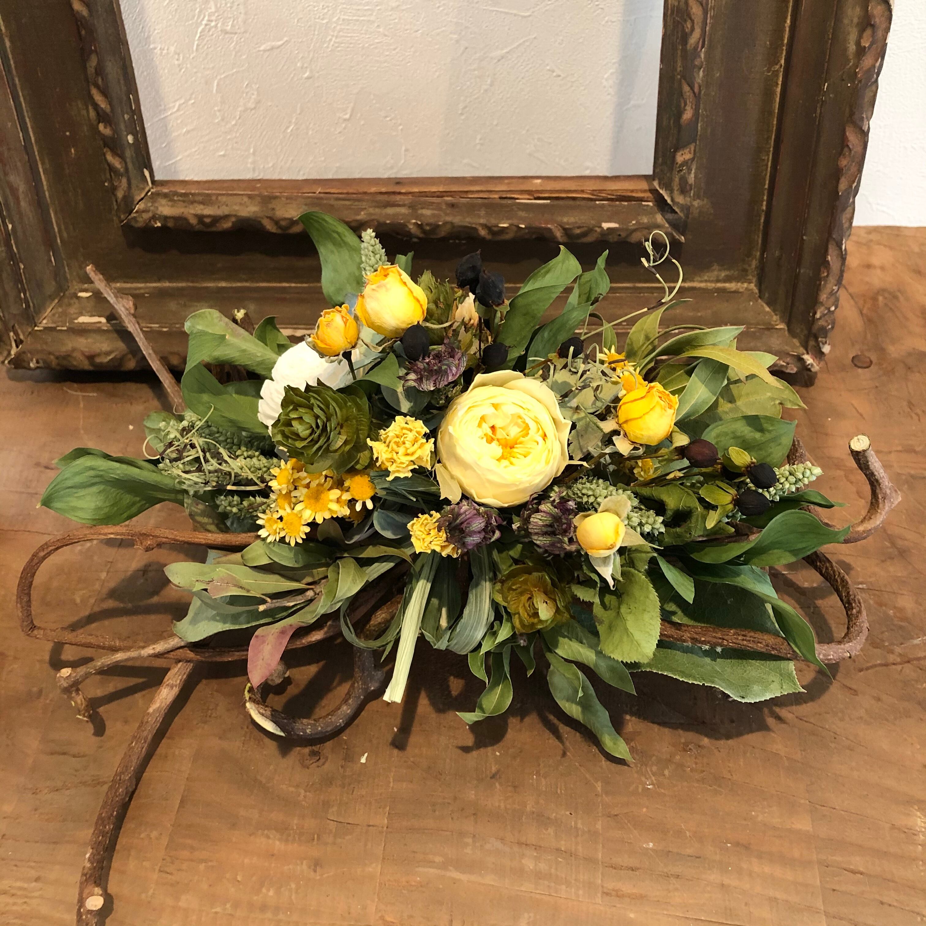 【DF-118  キウイヅルのアレンジメント(黄色)・ドライフラワー】