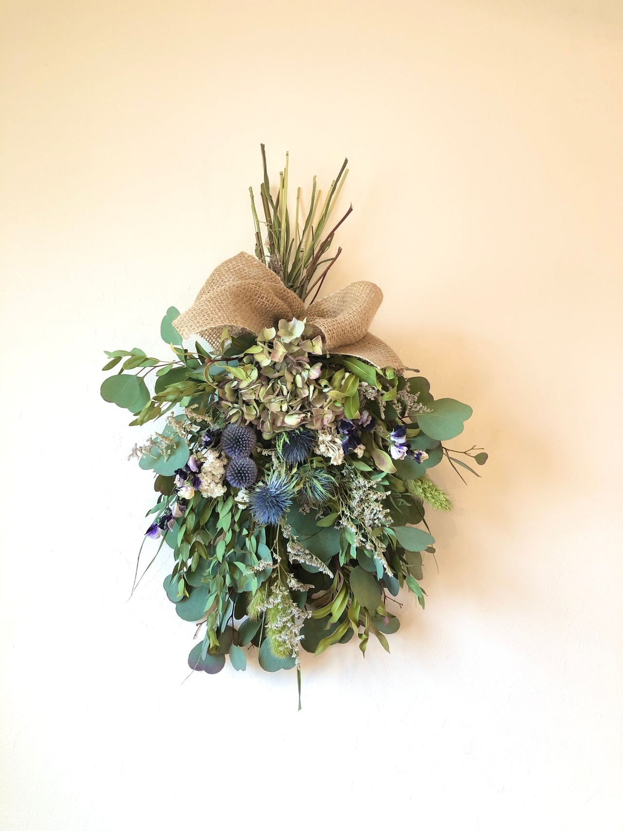 【DF-122 アジサイとユーカリのナチュラルスワッグ(ブルー)・ドライフラワー】