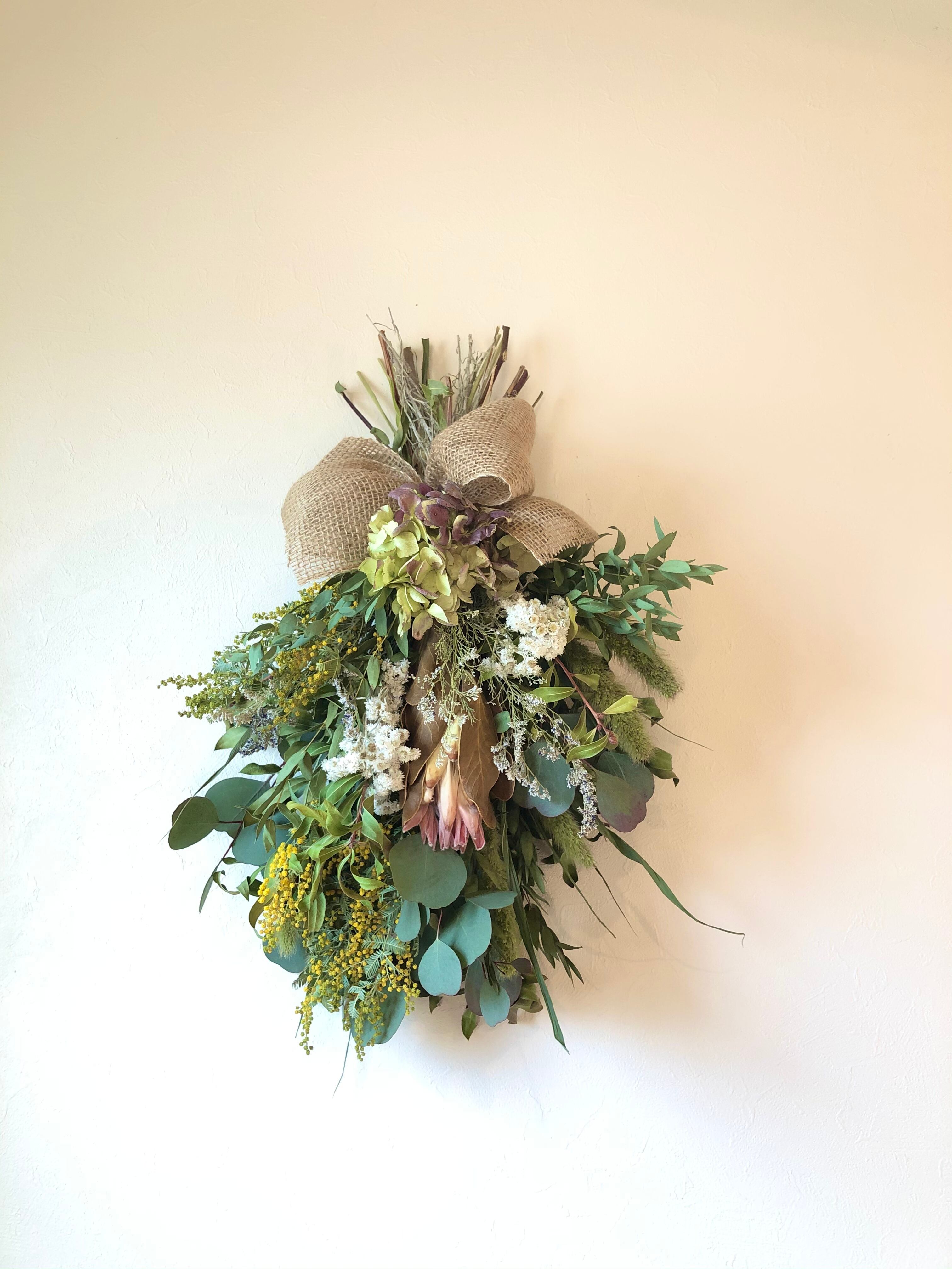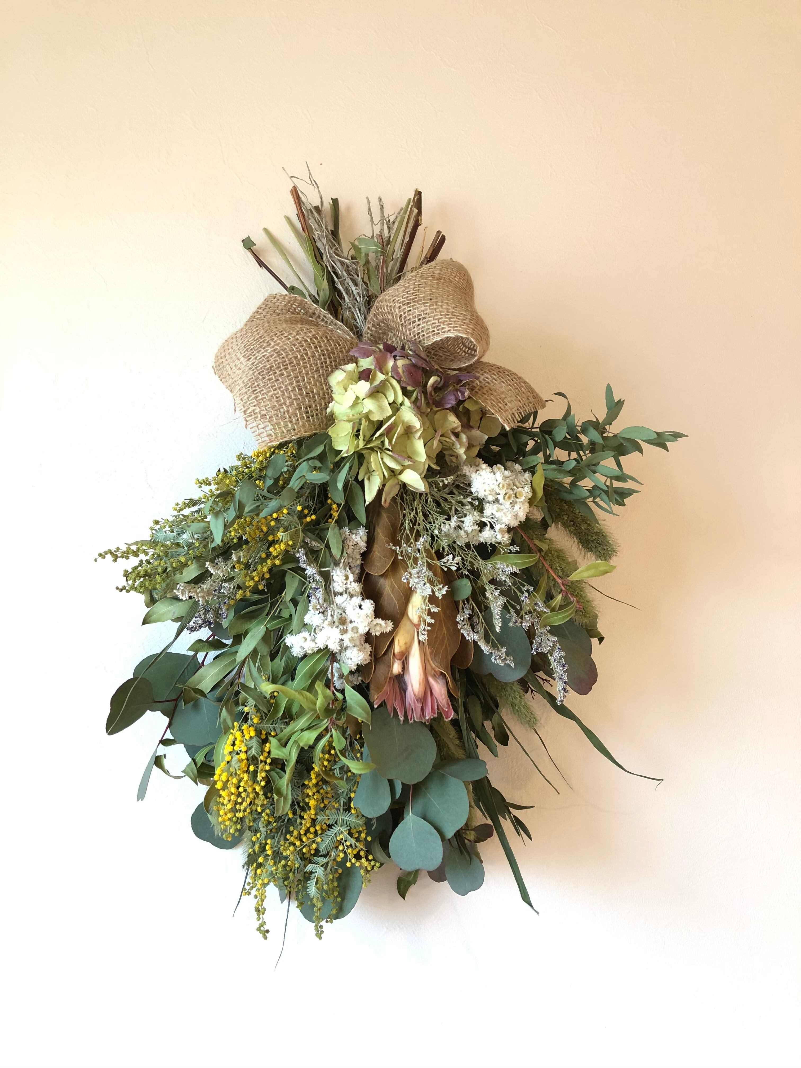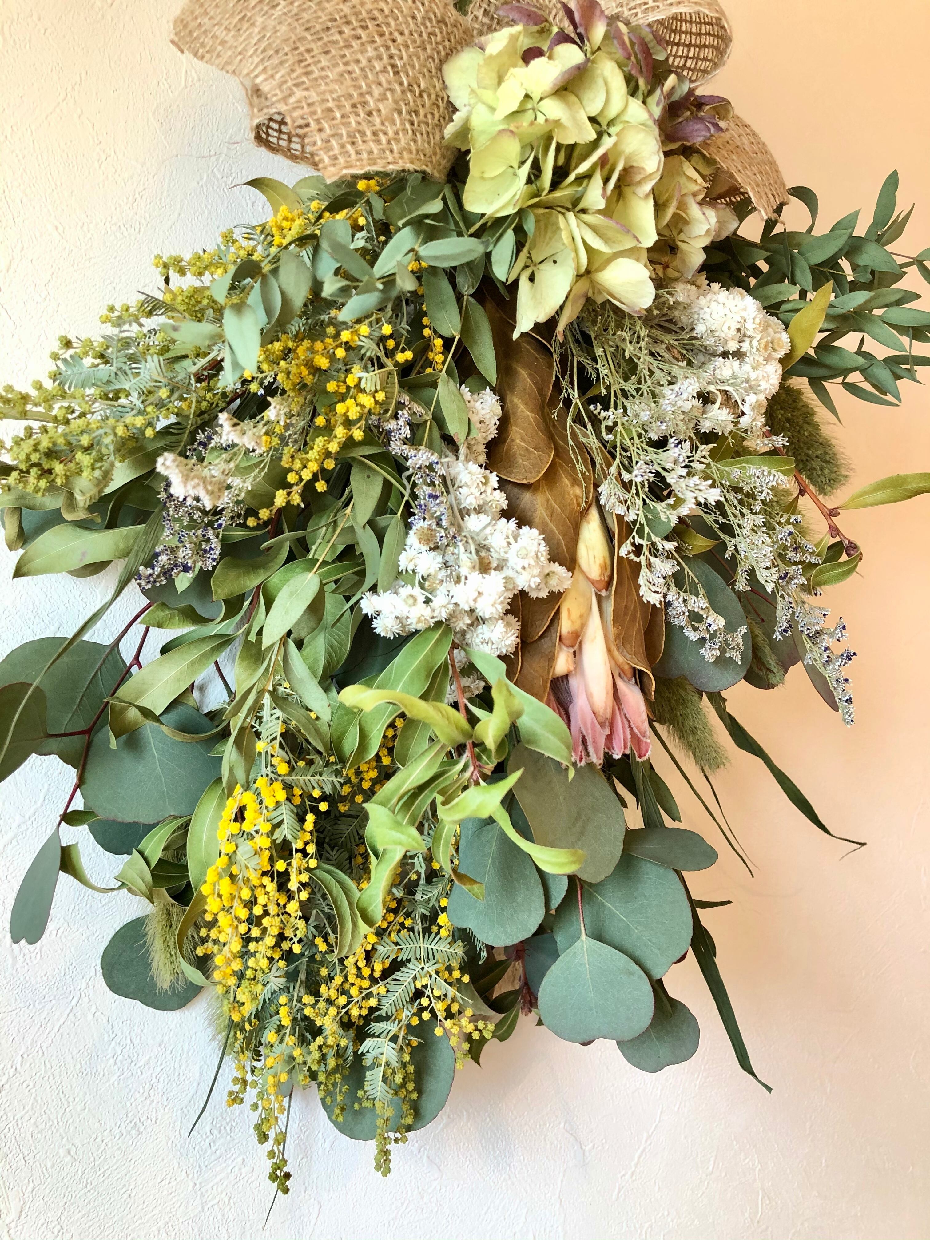 【DF-124 アジサイとユーカリのナチュラルスワッグ(黄色)・ドライフラワー】