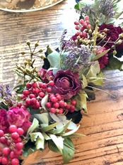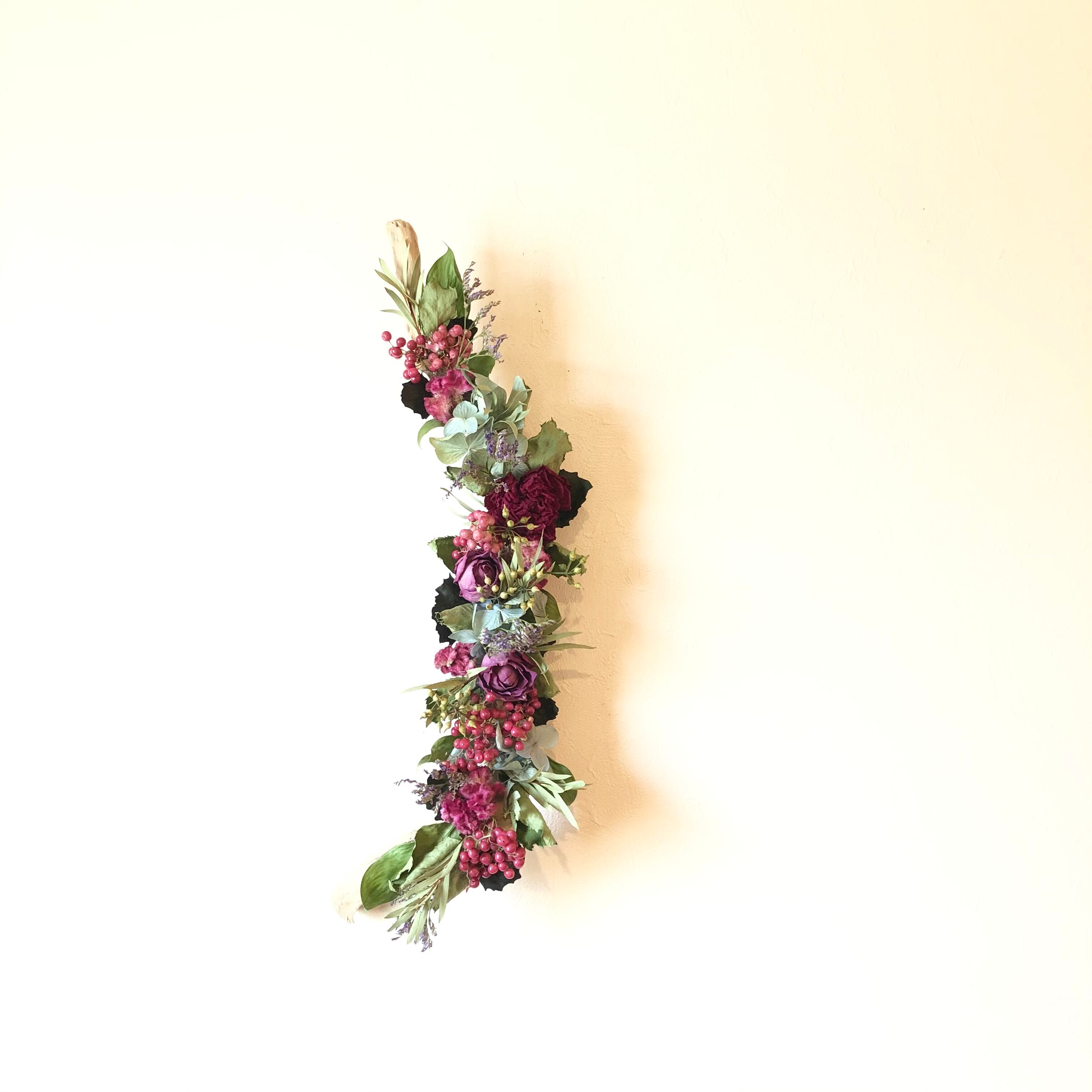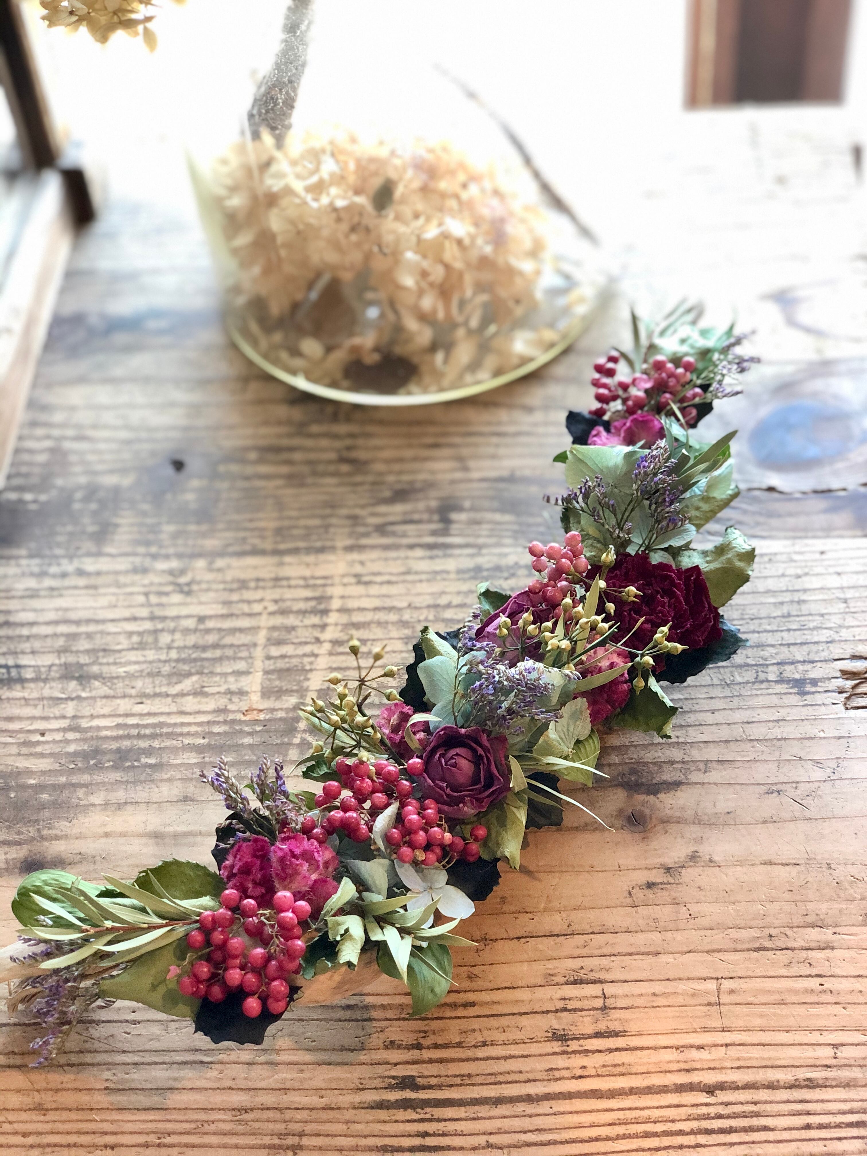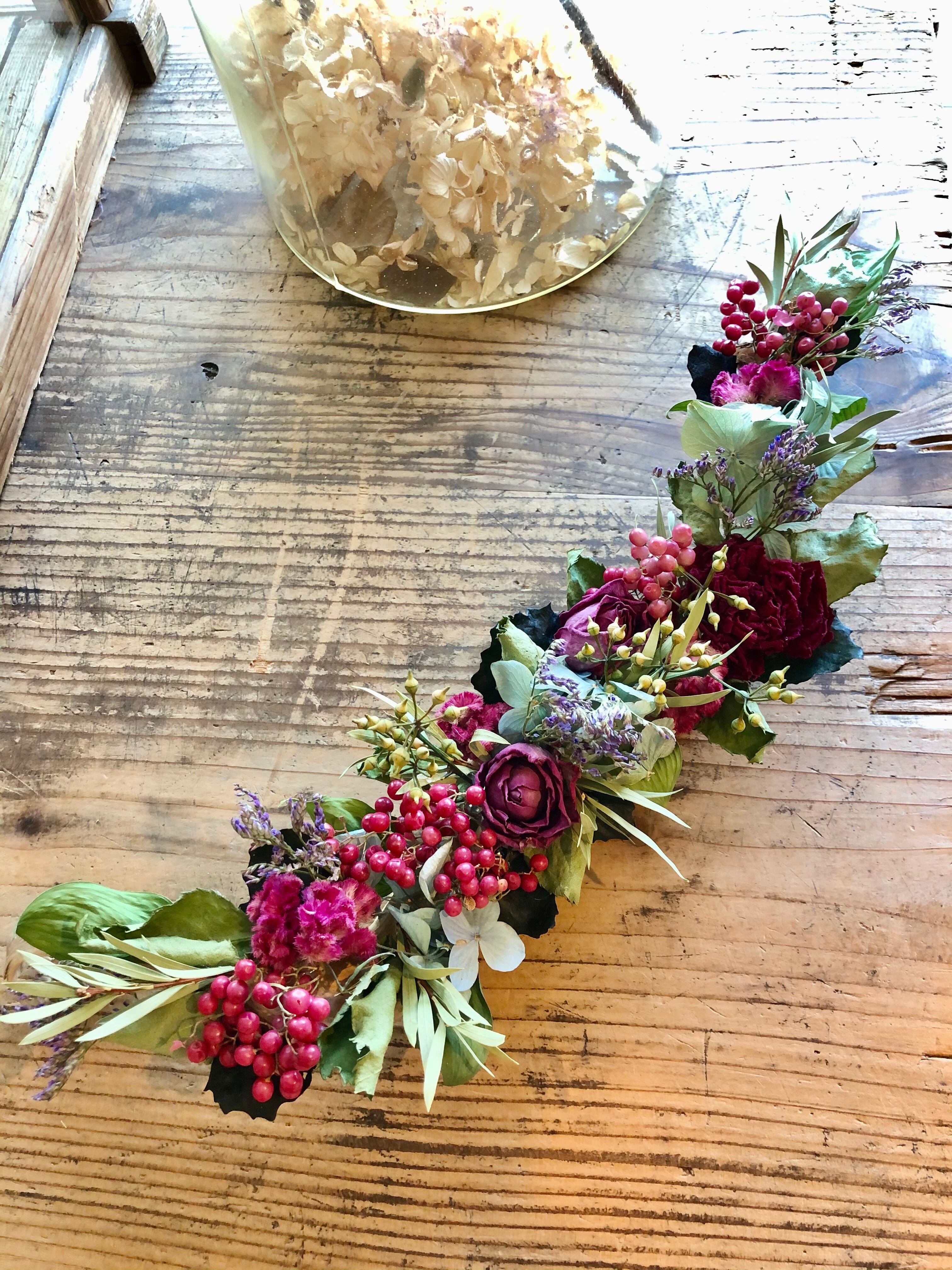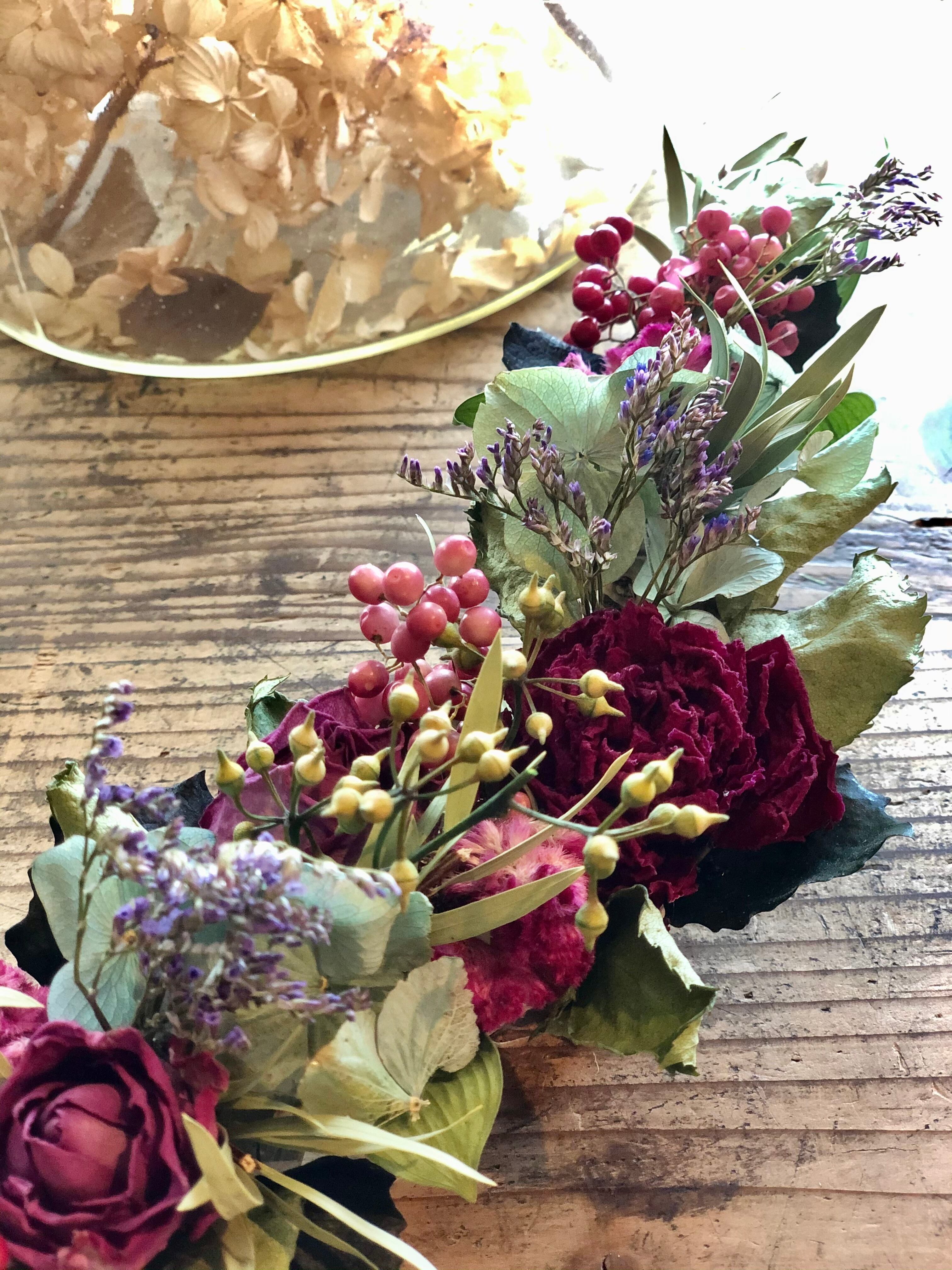 傷がついていたり、穴が開いていたり。その雰囲気はドライフラワーのシックな色合いともとても相性がいいです。