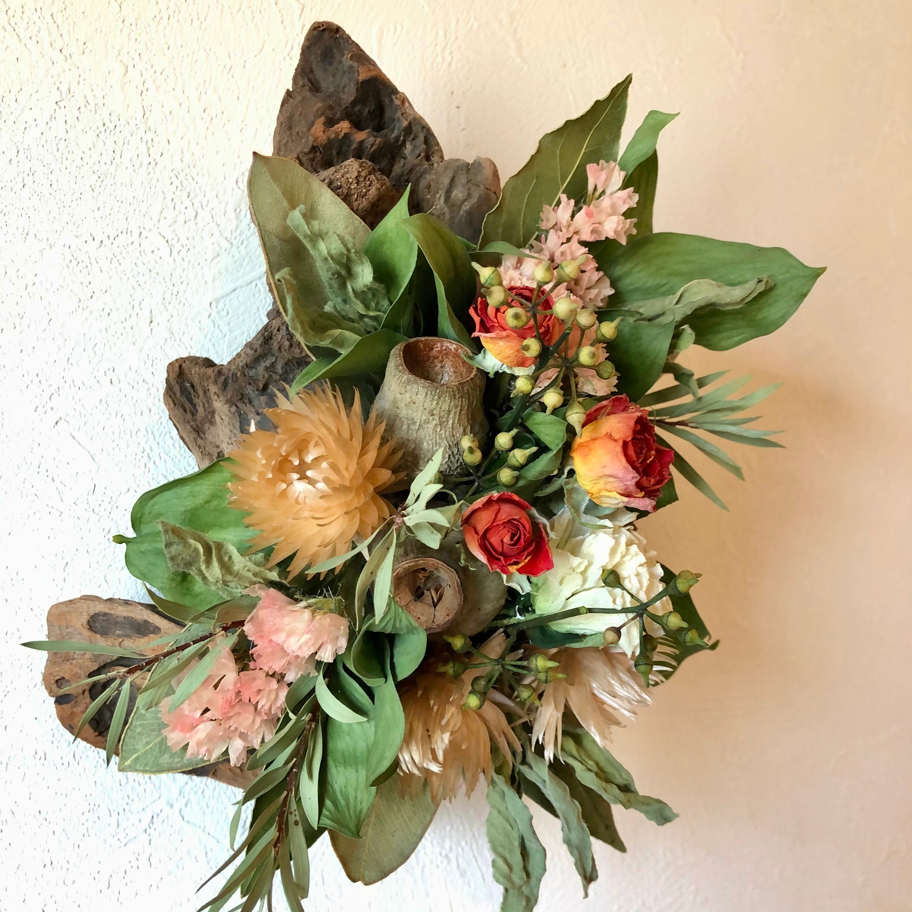 【DF-143 流木ドライフラワーアレンジ・オレンジ】