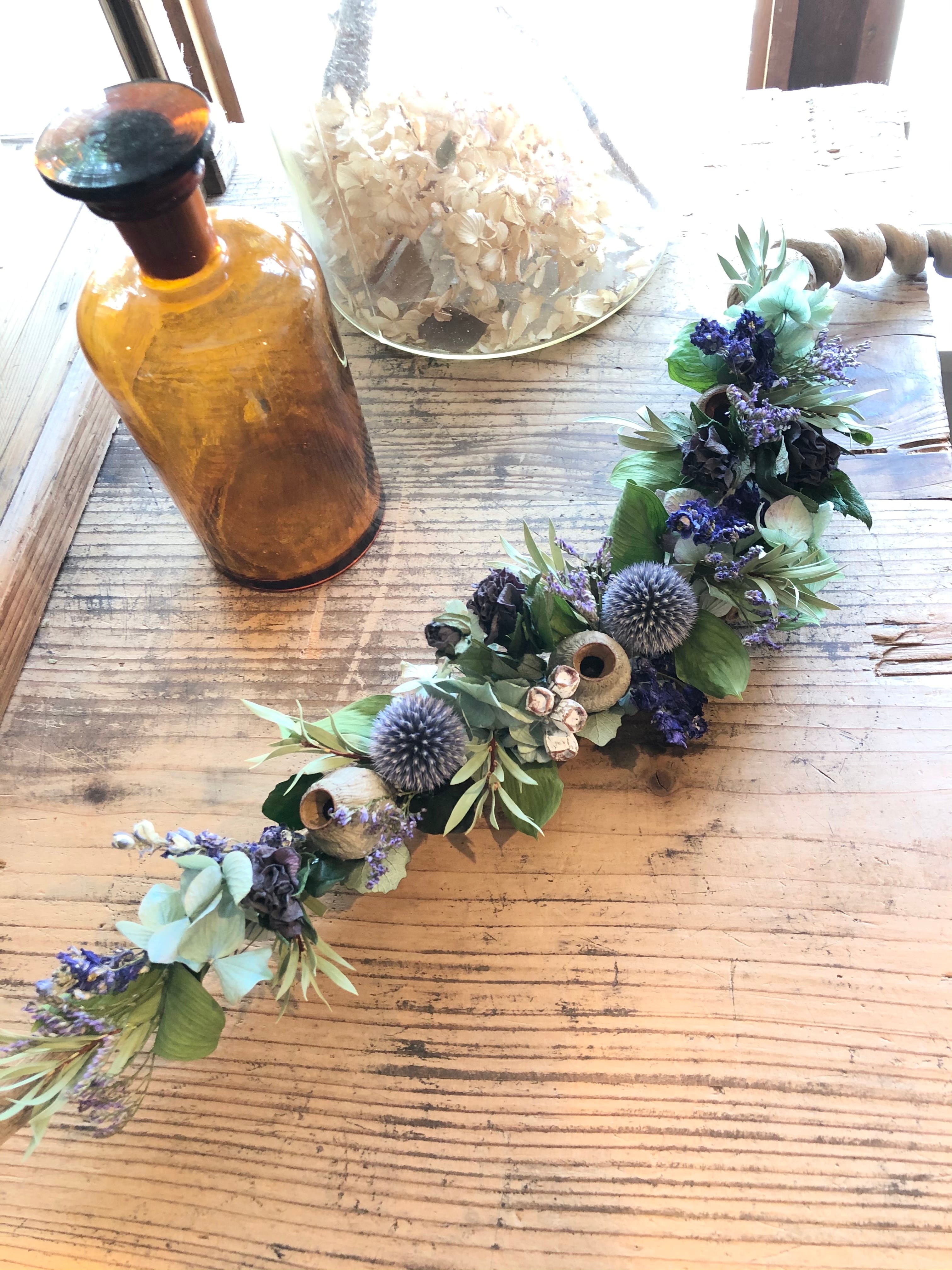傷がついていたり、穴が開いていたり。その雰囲気はドライフラワーのシックな色合いともとても相性がいいです。