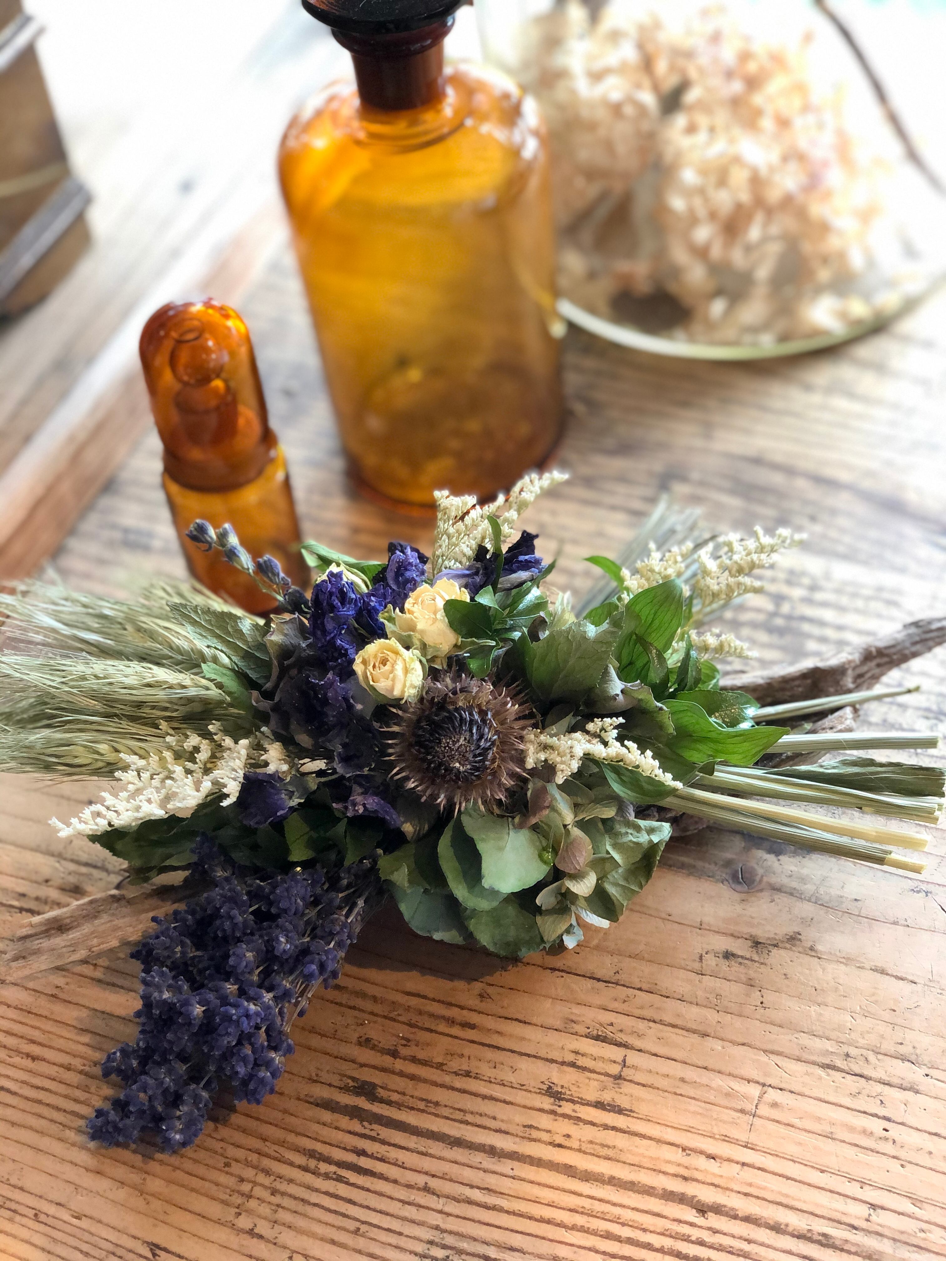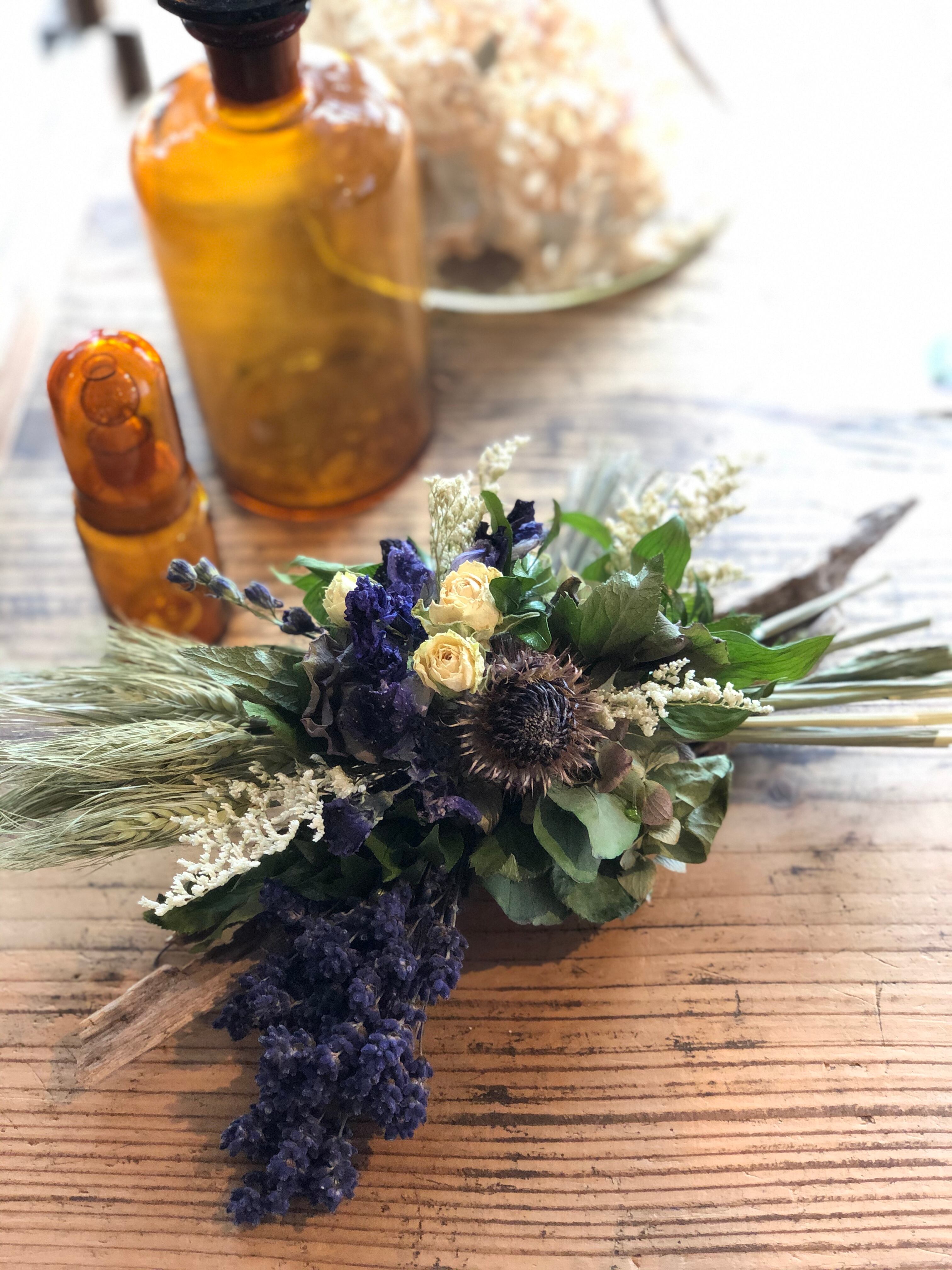新収穫の麦に、ラベンダー。香りも楽しめるアレンジです。