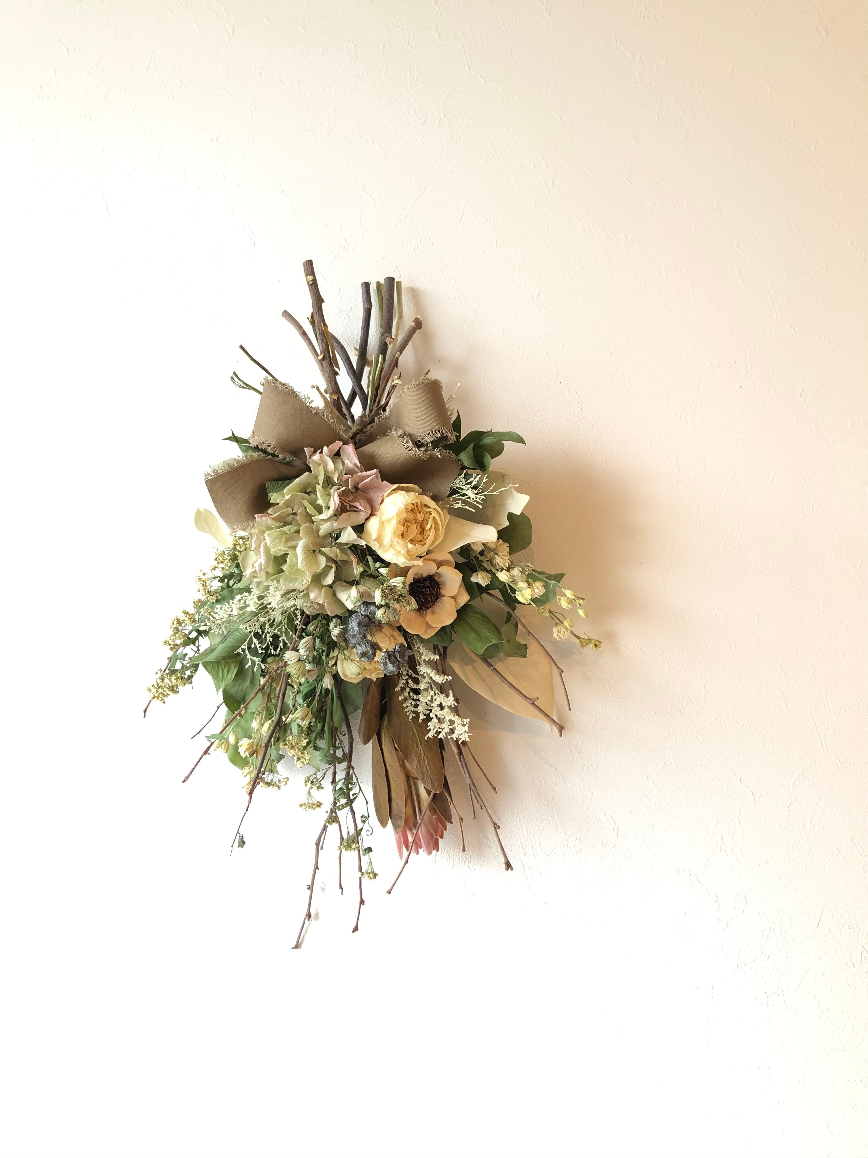 【DF-178 枝とコンパクタのスワッグ・ドライフラワー(白)】