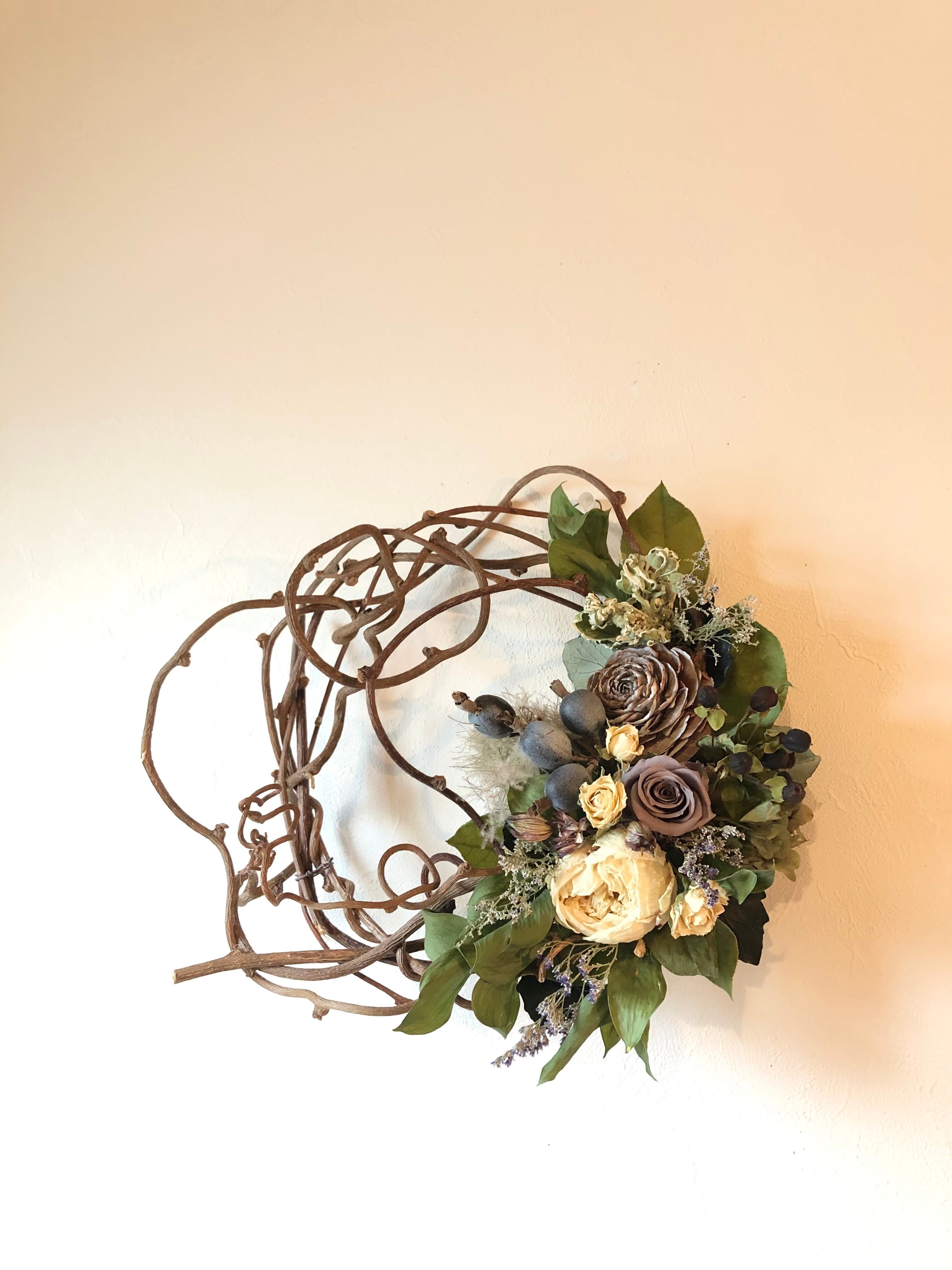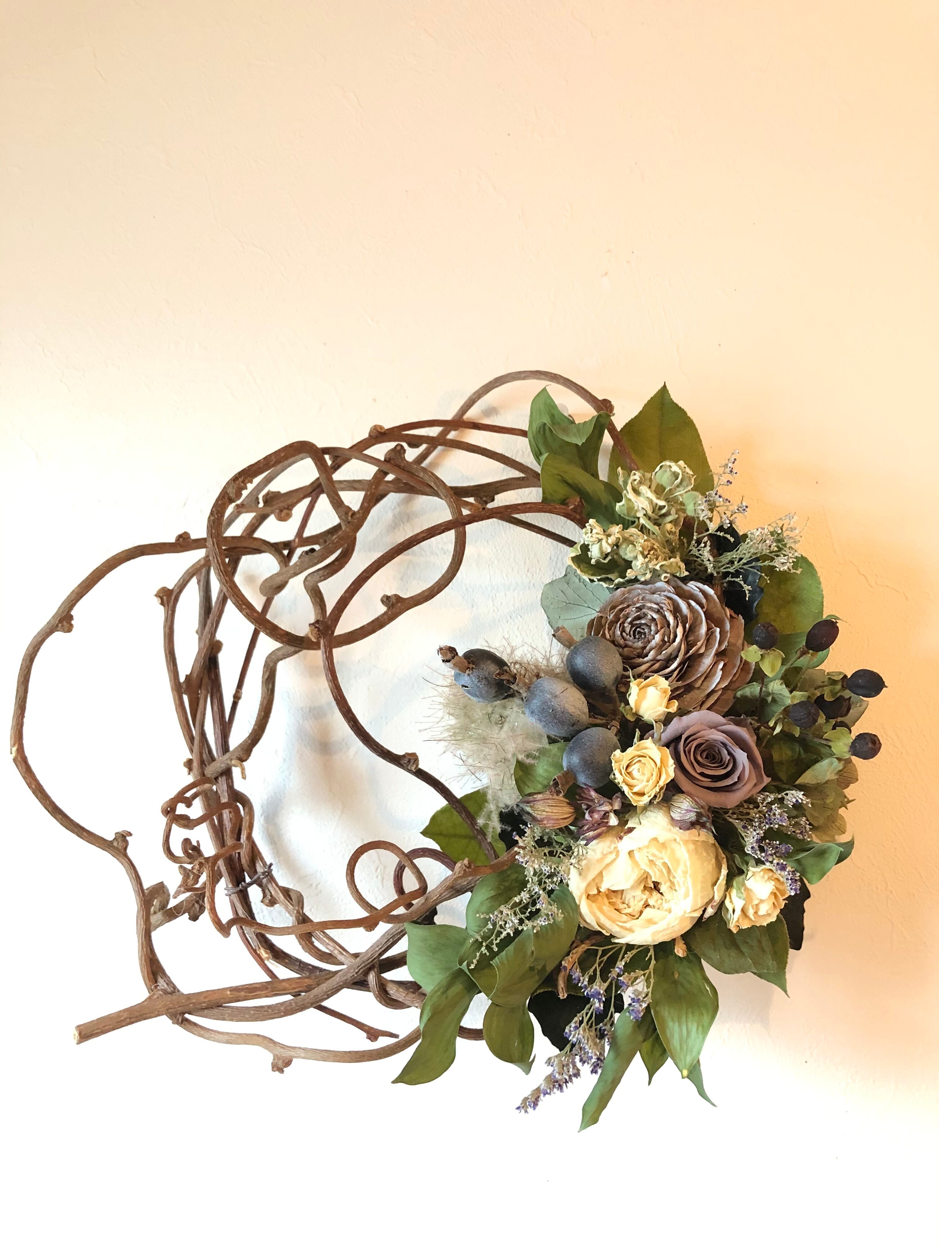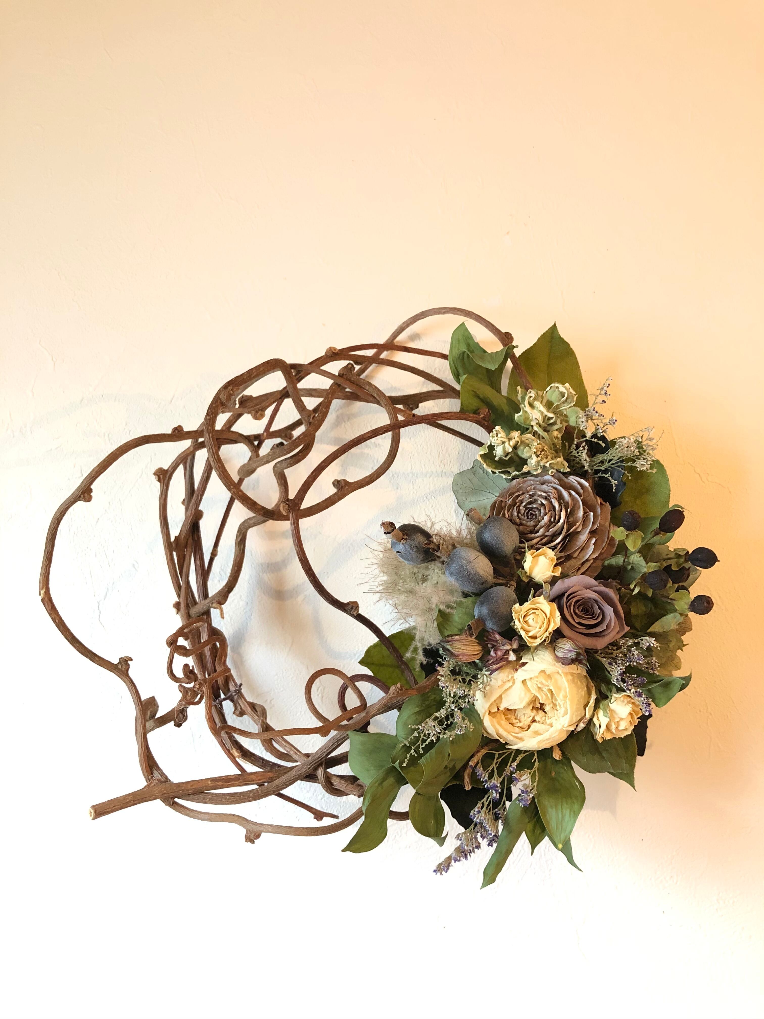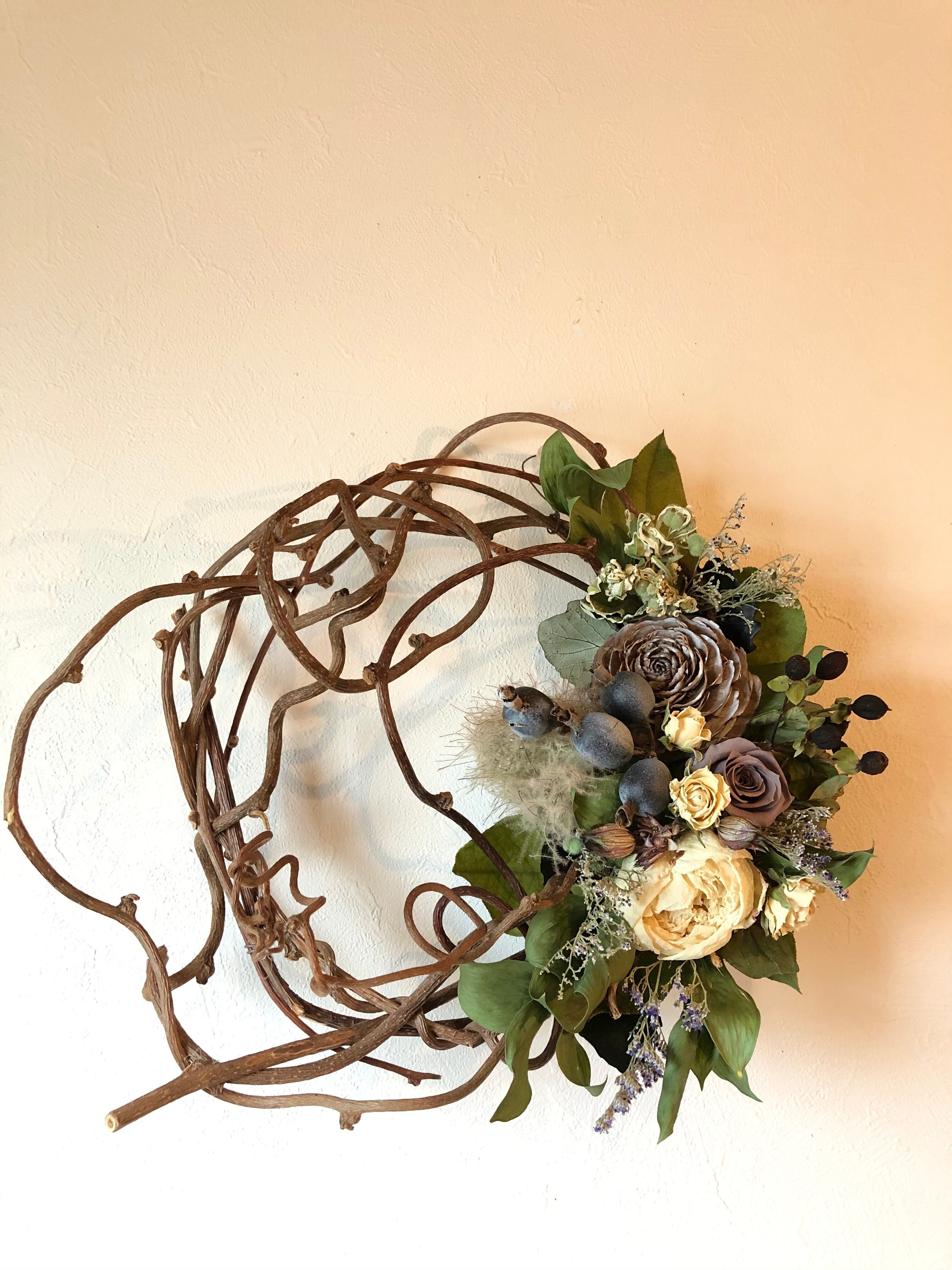 人気のキウイヅルリース、今期キウイヅルリースが全て終了のため、今年最後のキウイヅルアレンジです。