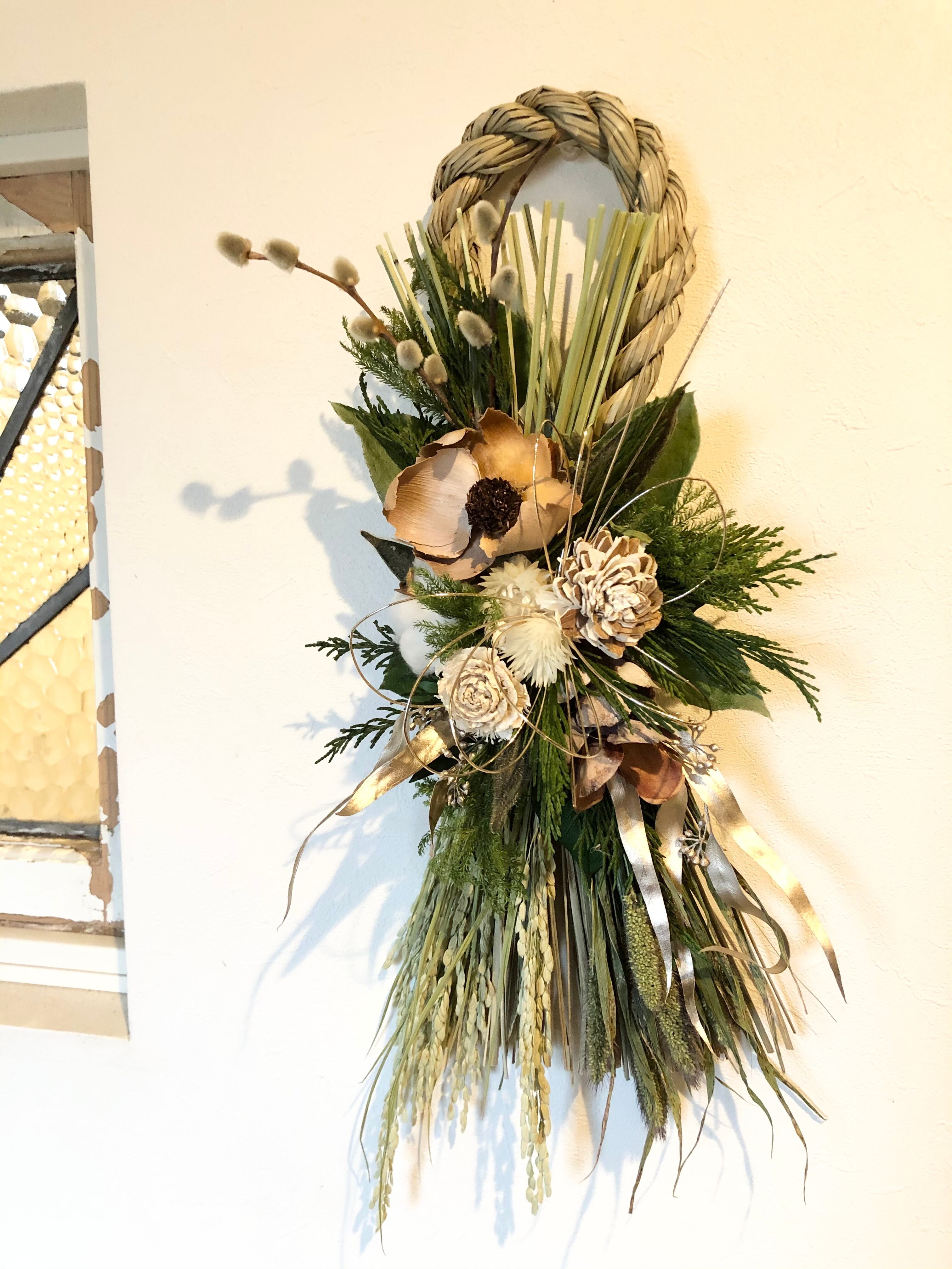 冬の間楽しんでいただける落ち着いた色合いのしめ飾り。冬のギフトにもお勧めです。