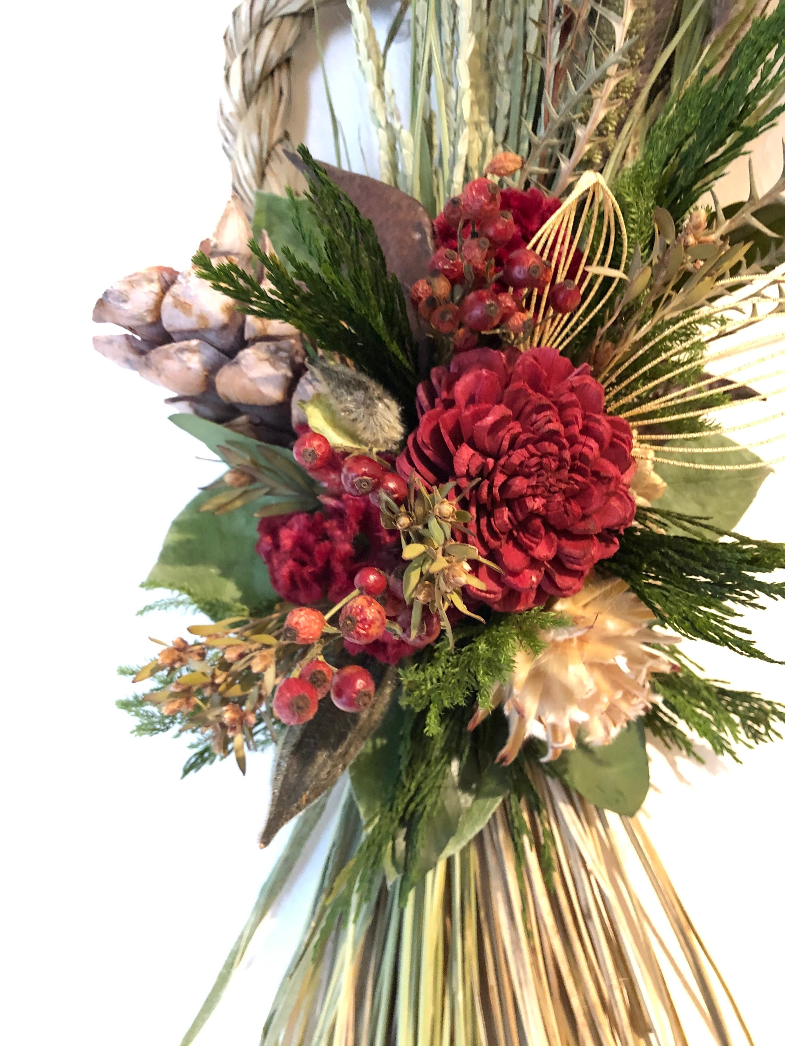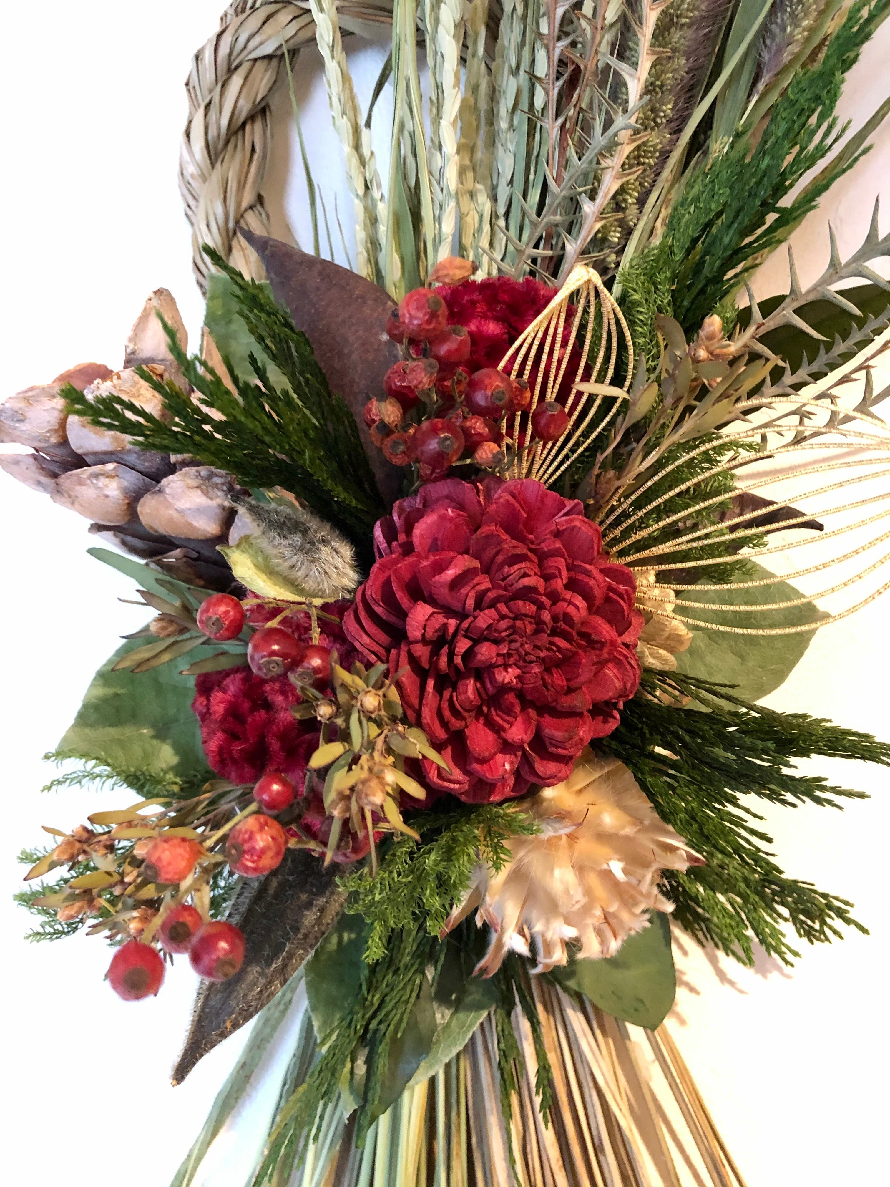 【DF-196 しめ飾り・縦・赤・ドライフラワー】