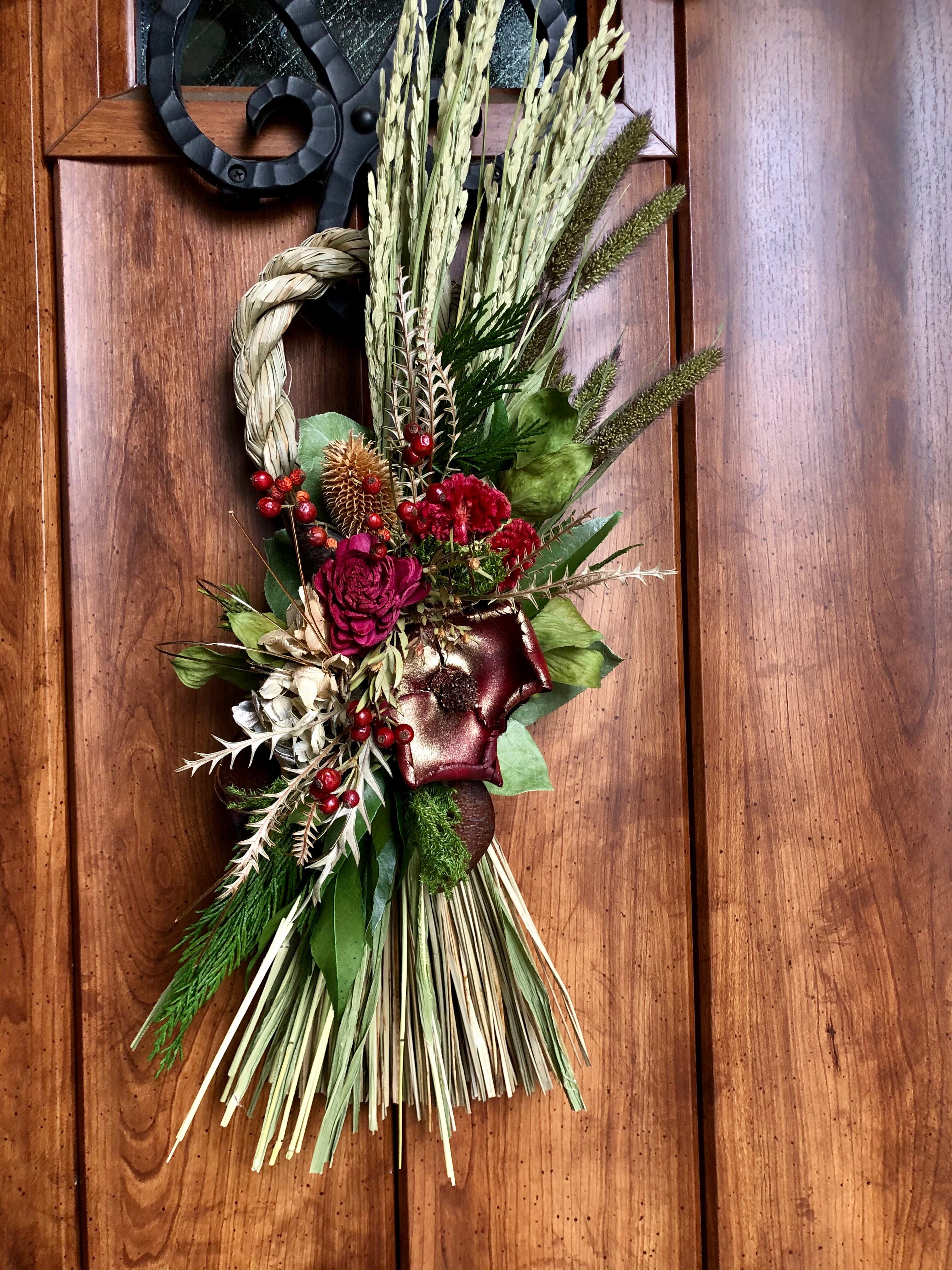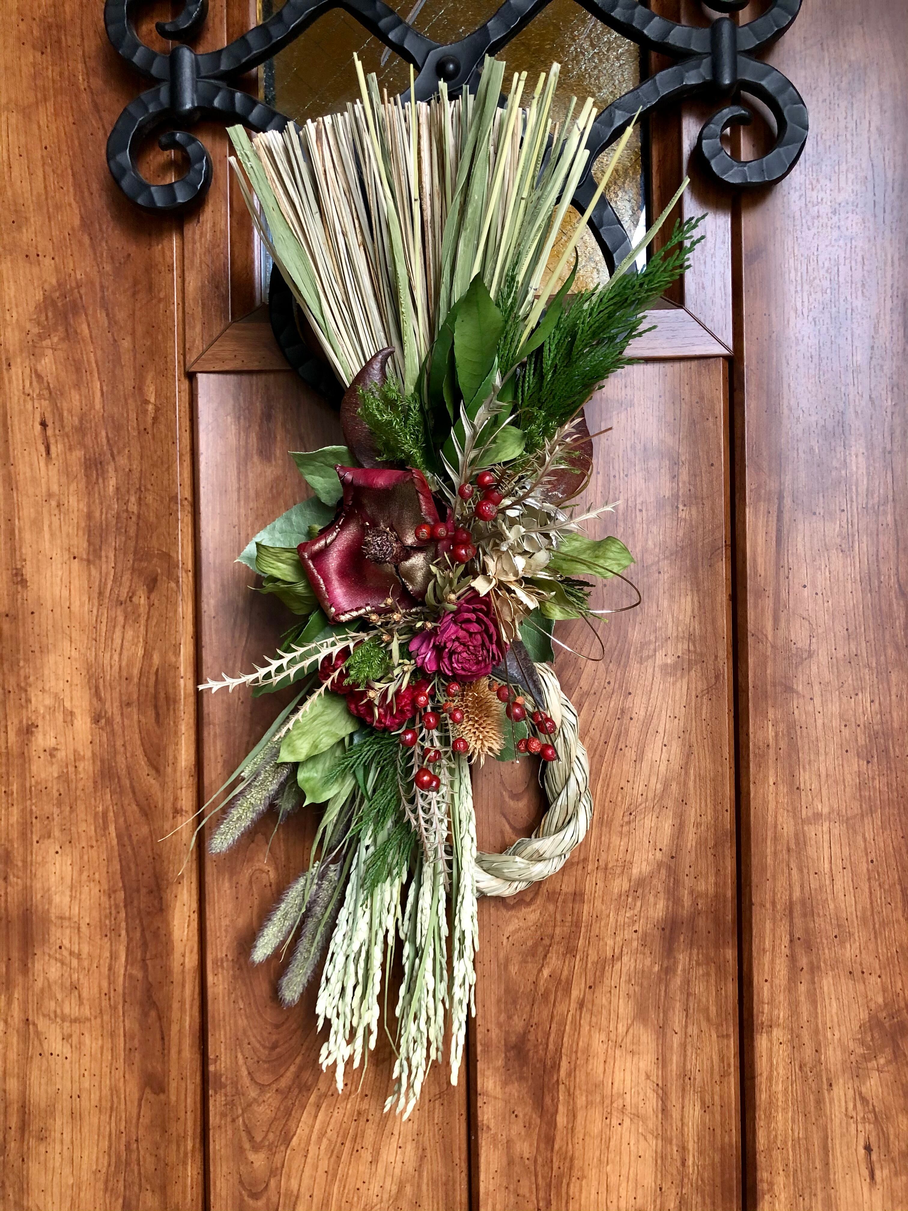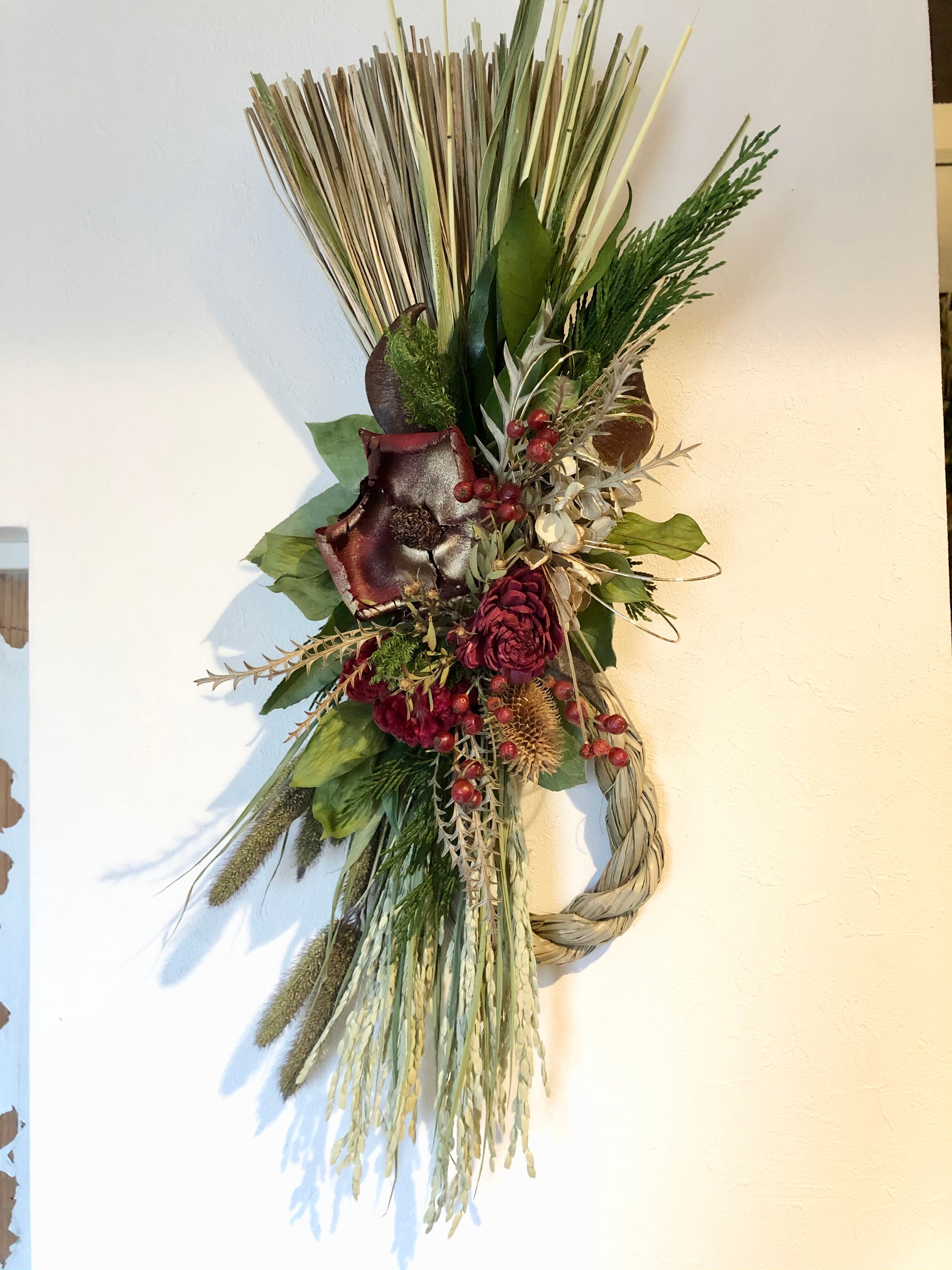 少し斜めに飾ったり、上下どちらでも飾れるデザインのしめ飾り。