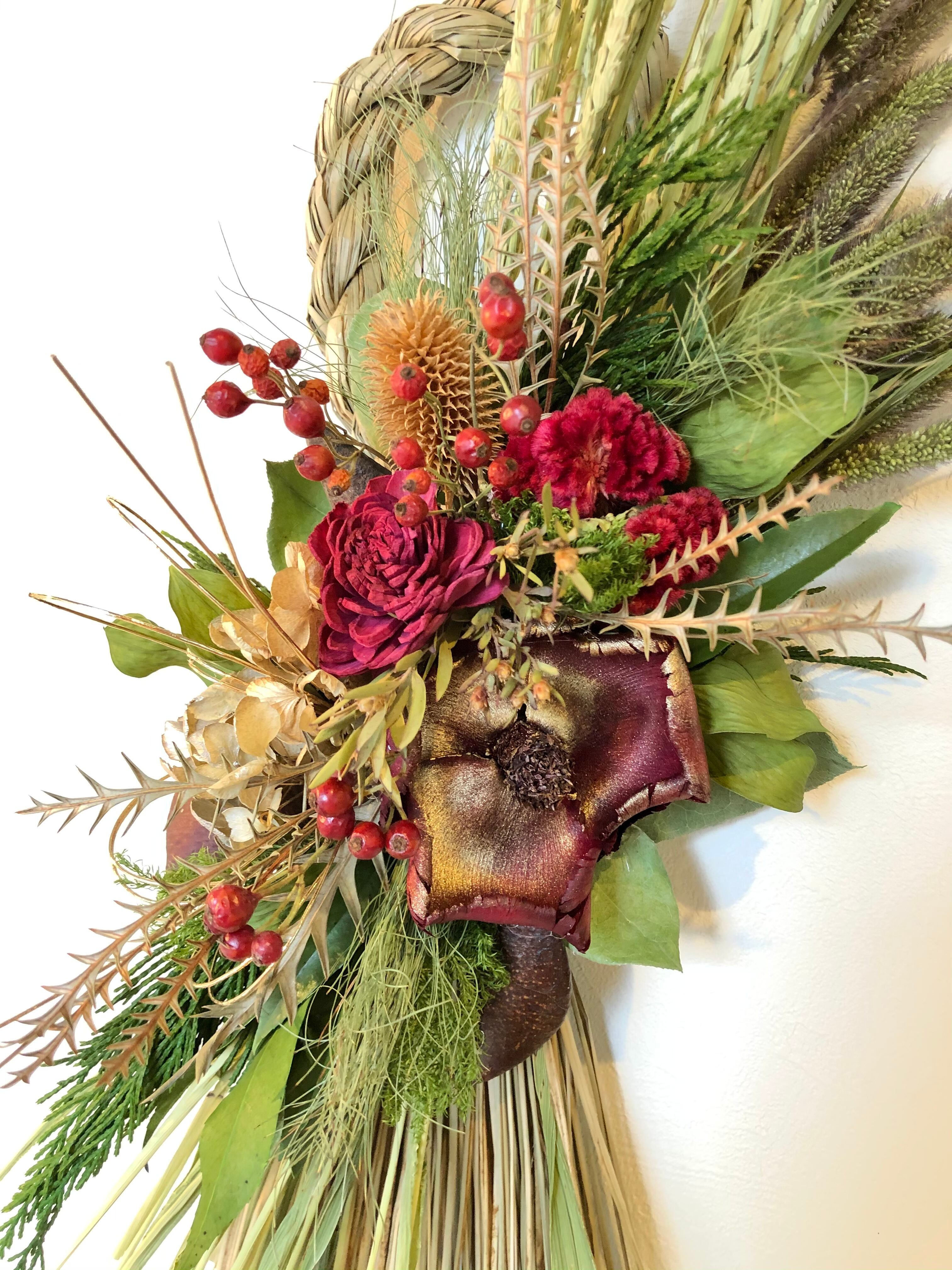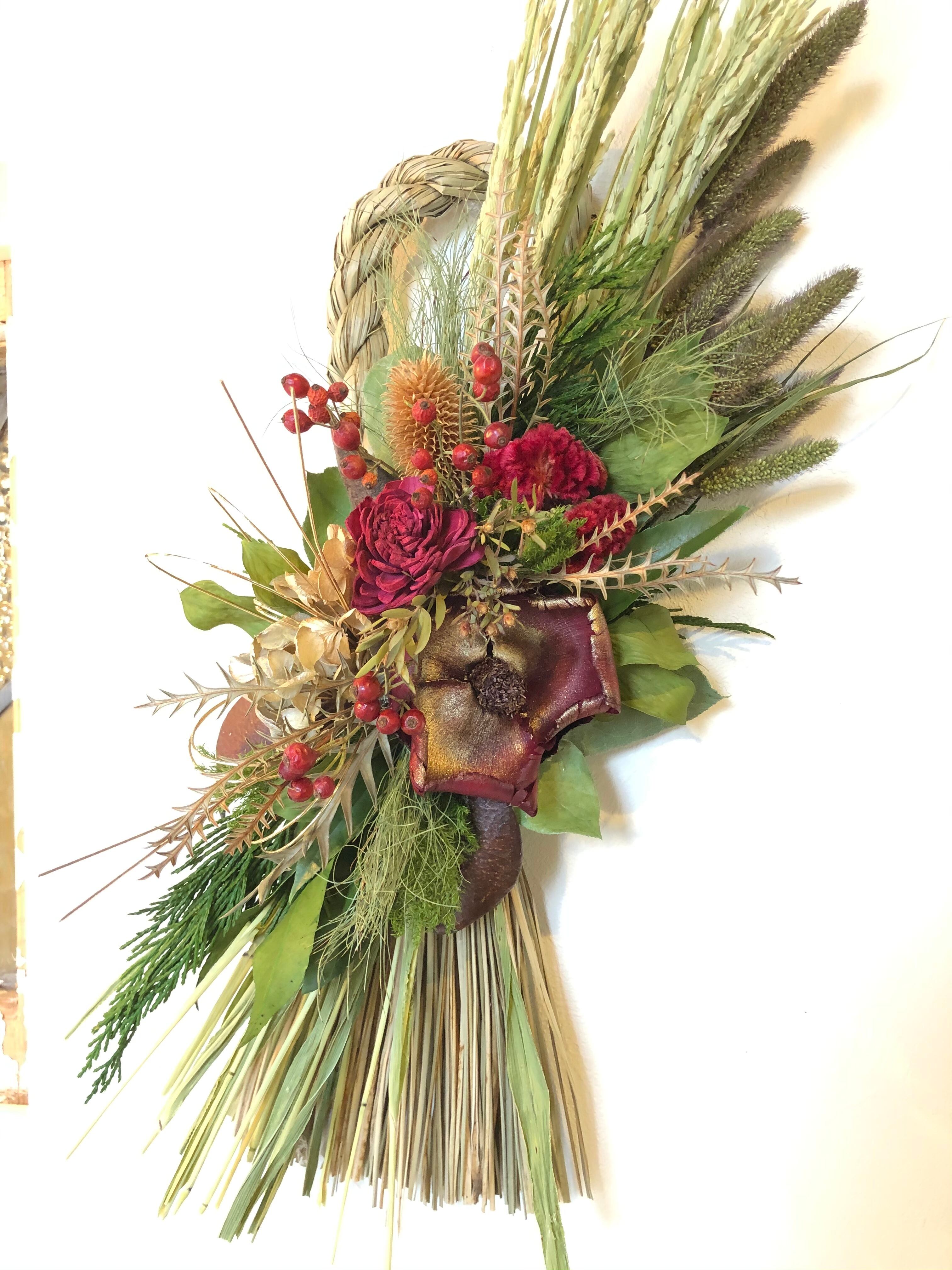 【DF-197 しめ飾り・縦・赤・ドライフラワー】