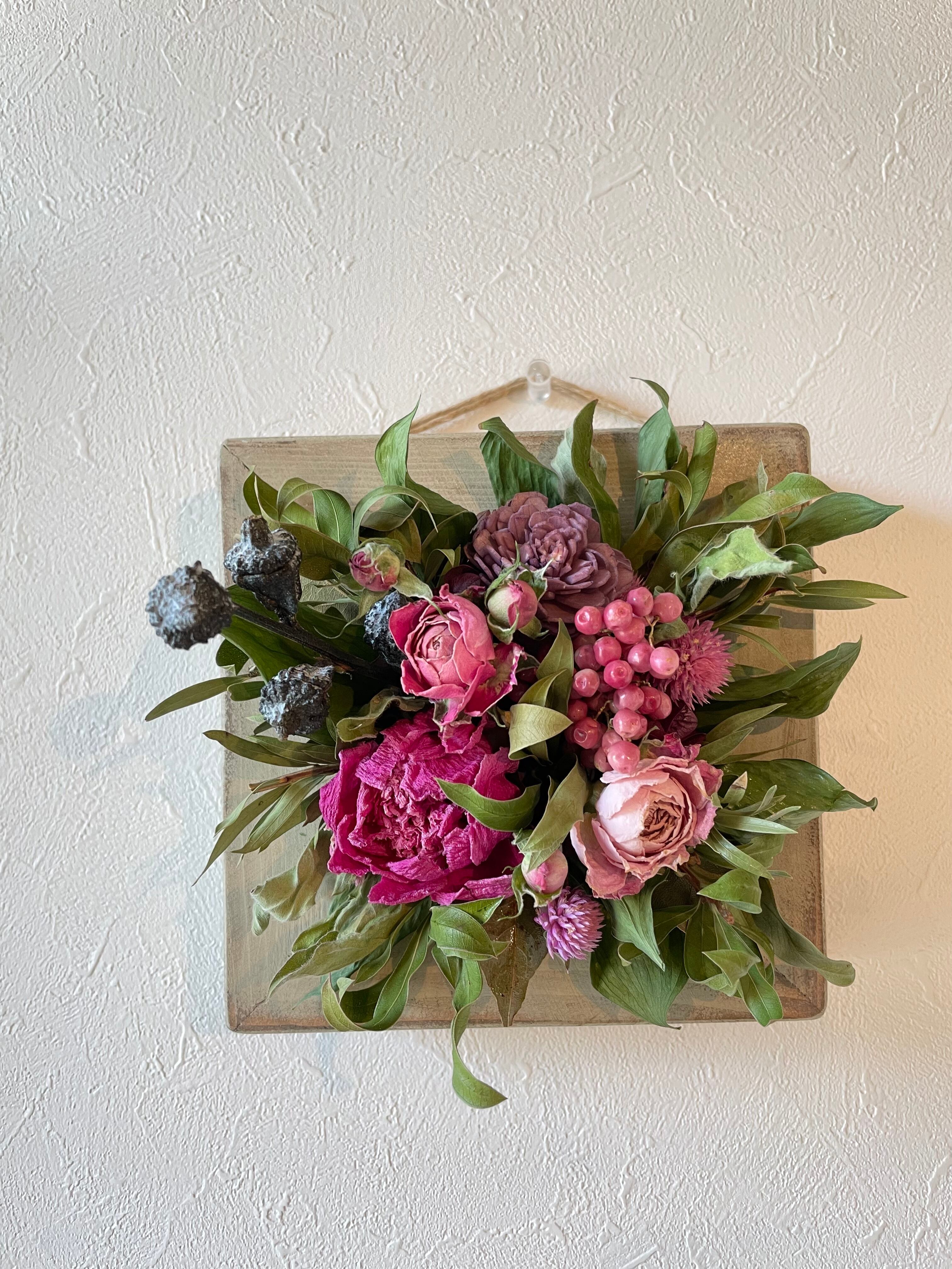 【DF-216 ウッドフレームアレンジ(ピンク①)・ドライフラワー】