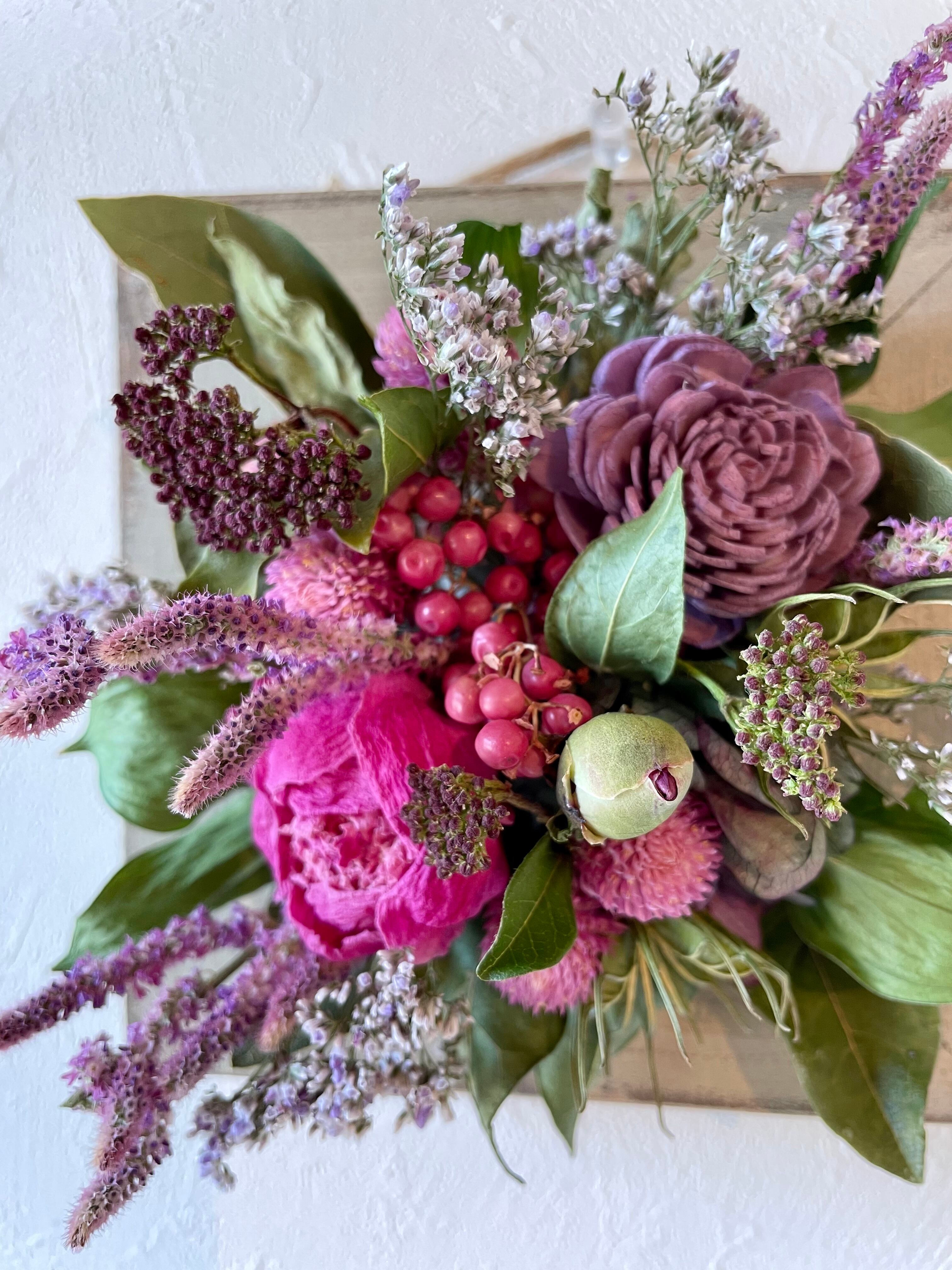 【DF-217 ウッドフレームアレンジ(ピンク②)・ドライフラワー】