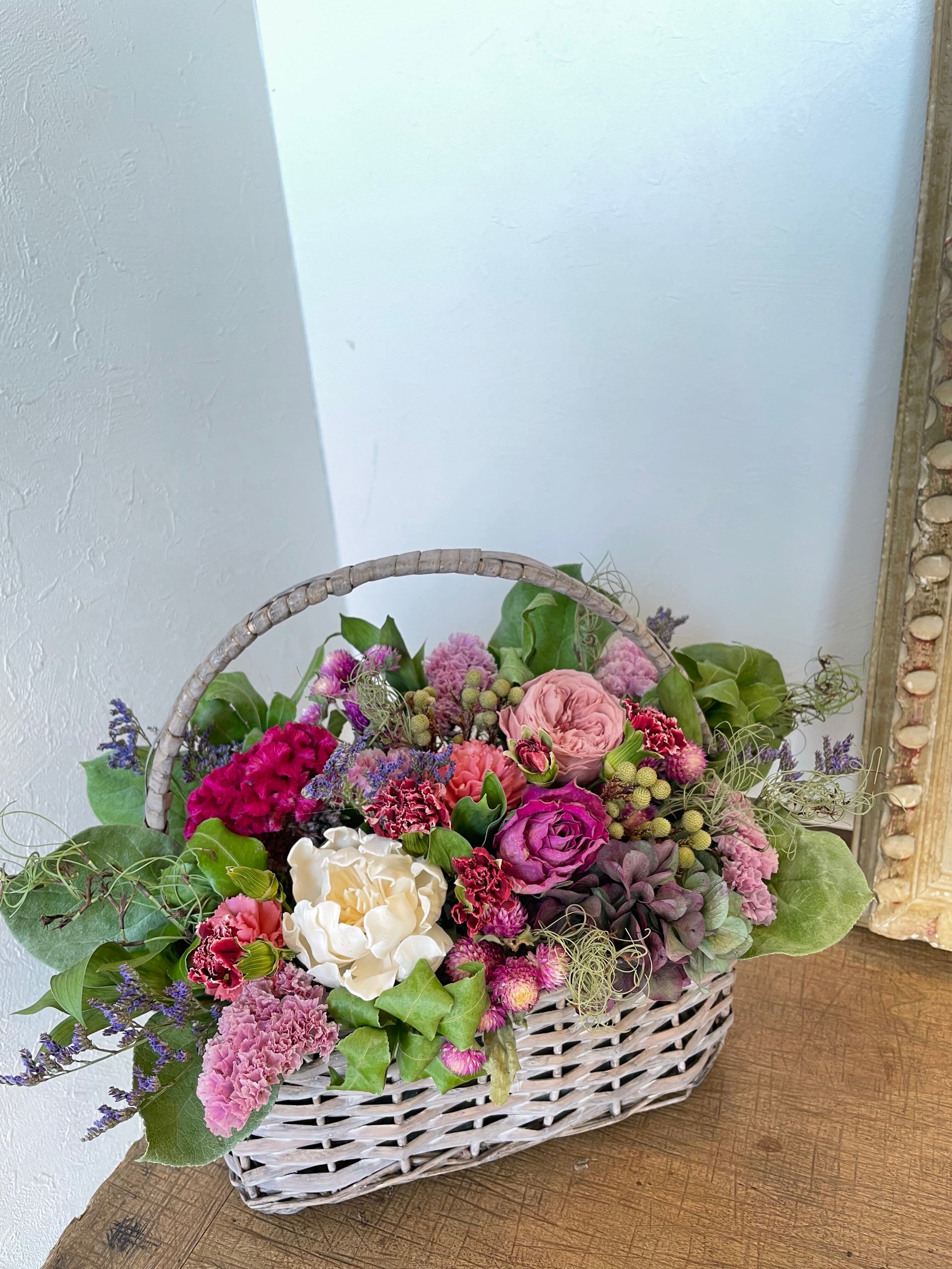 【DF-221 ★母の日特別企画★ 送料込・バスケットアレンジ・ドライフラワー】
