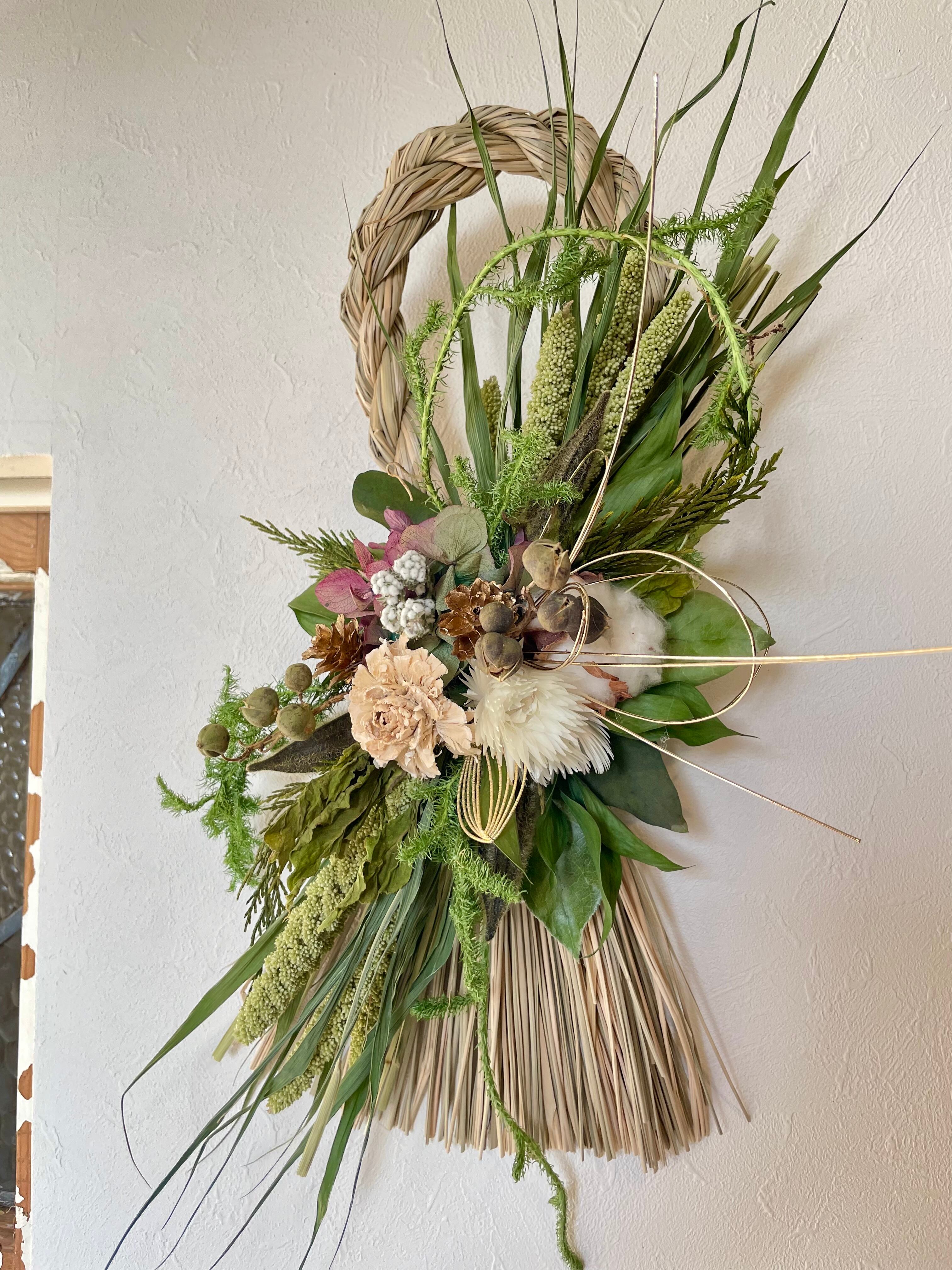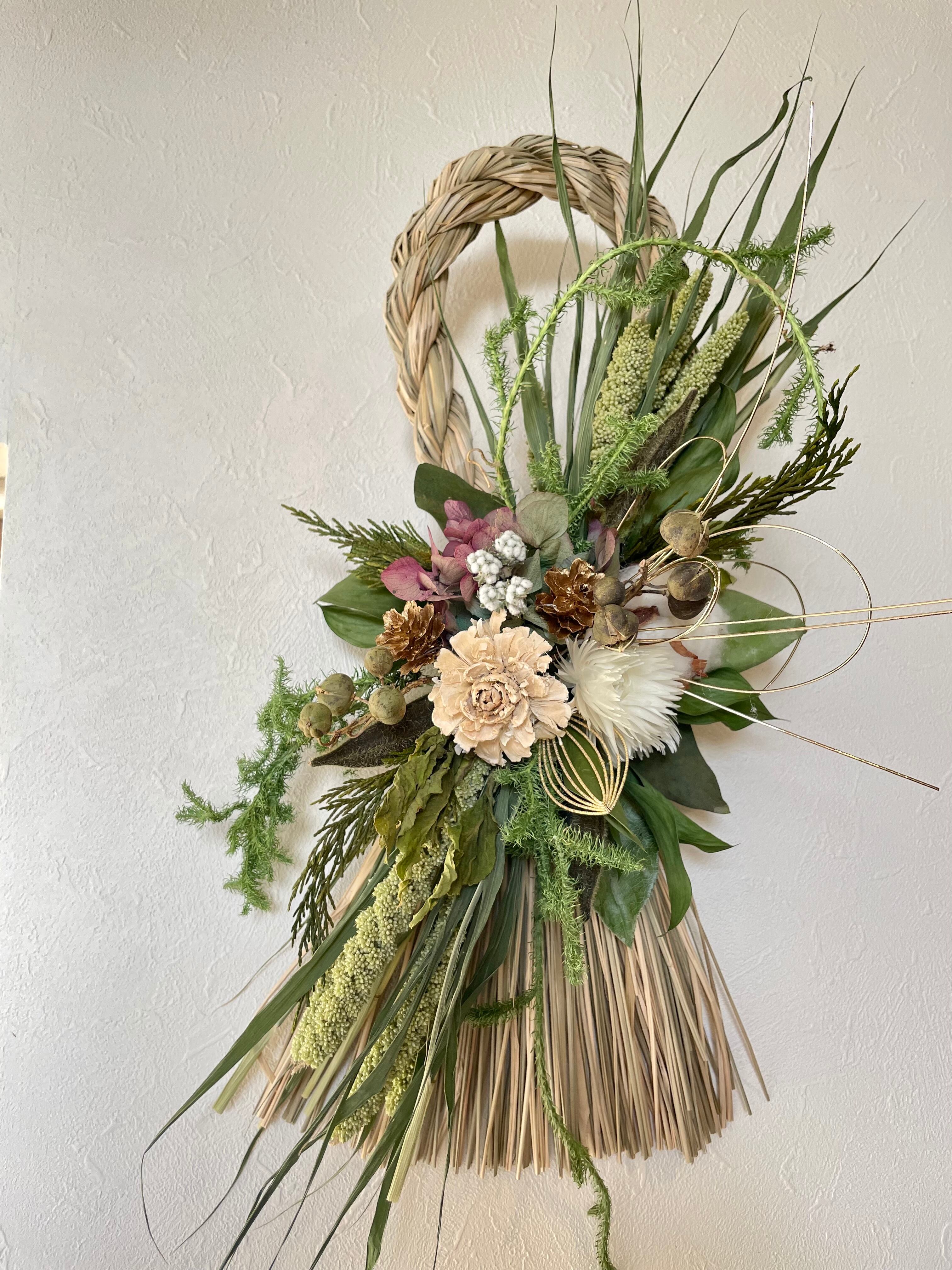 【DF-240 しめ飾り・白・中・ドライフラワー】