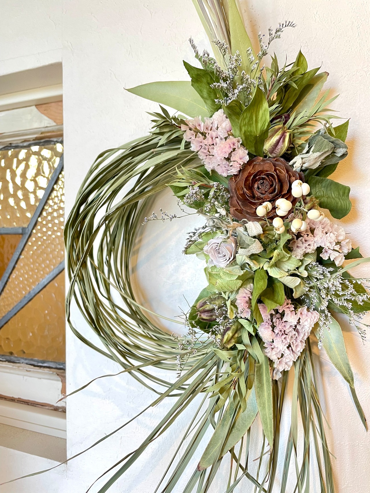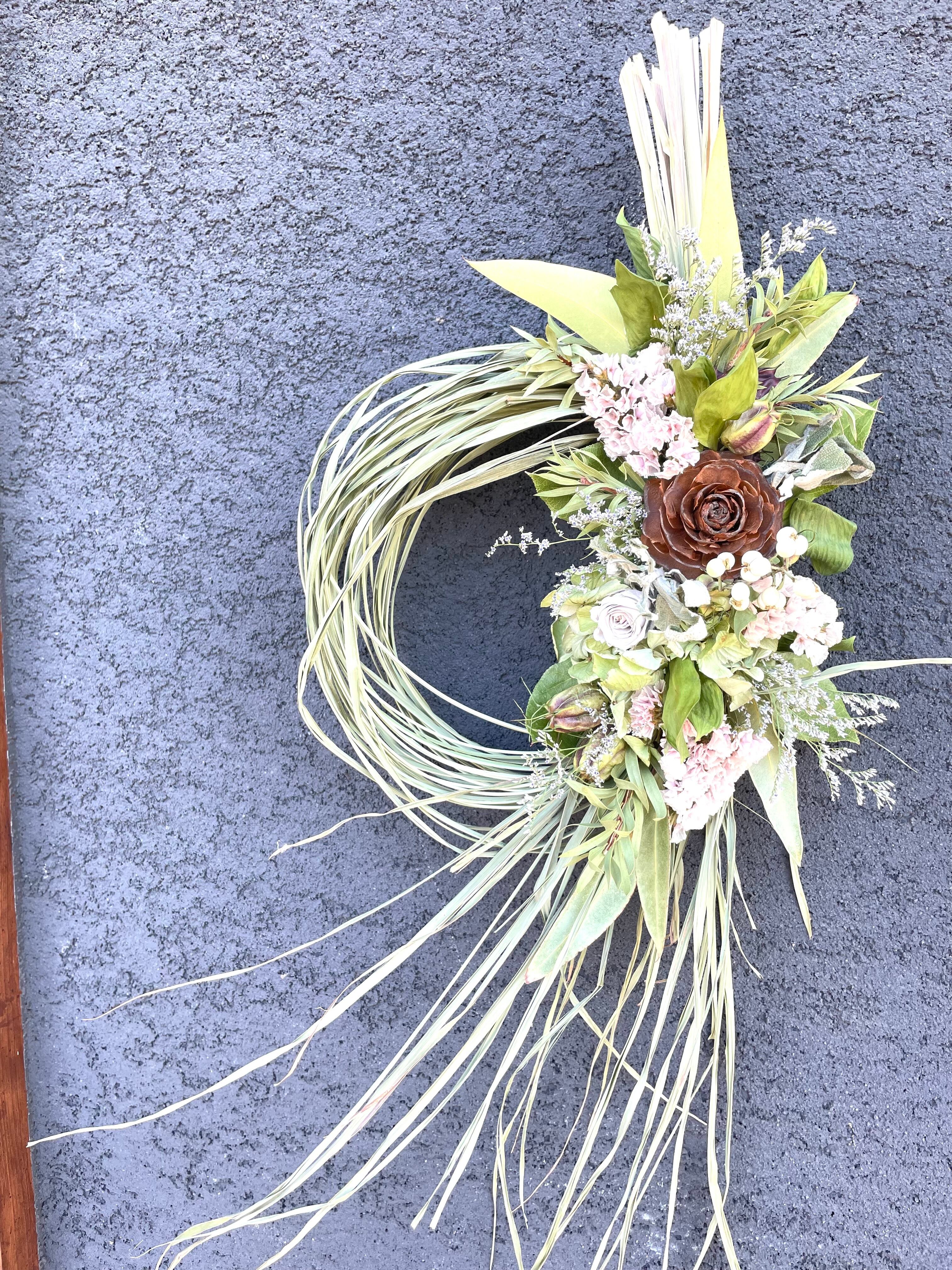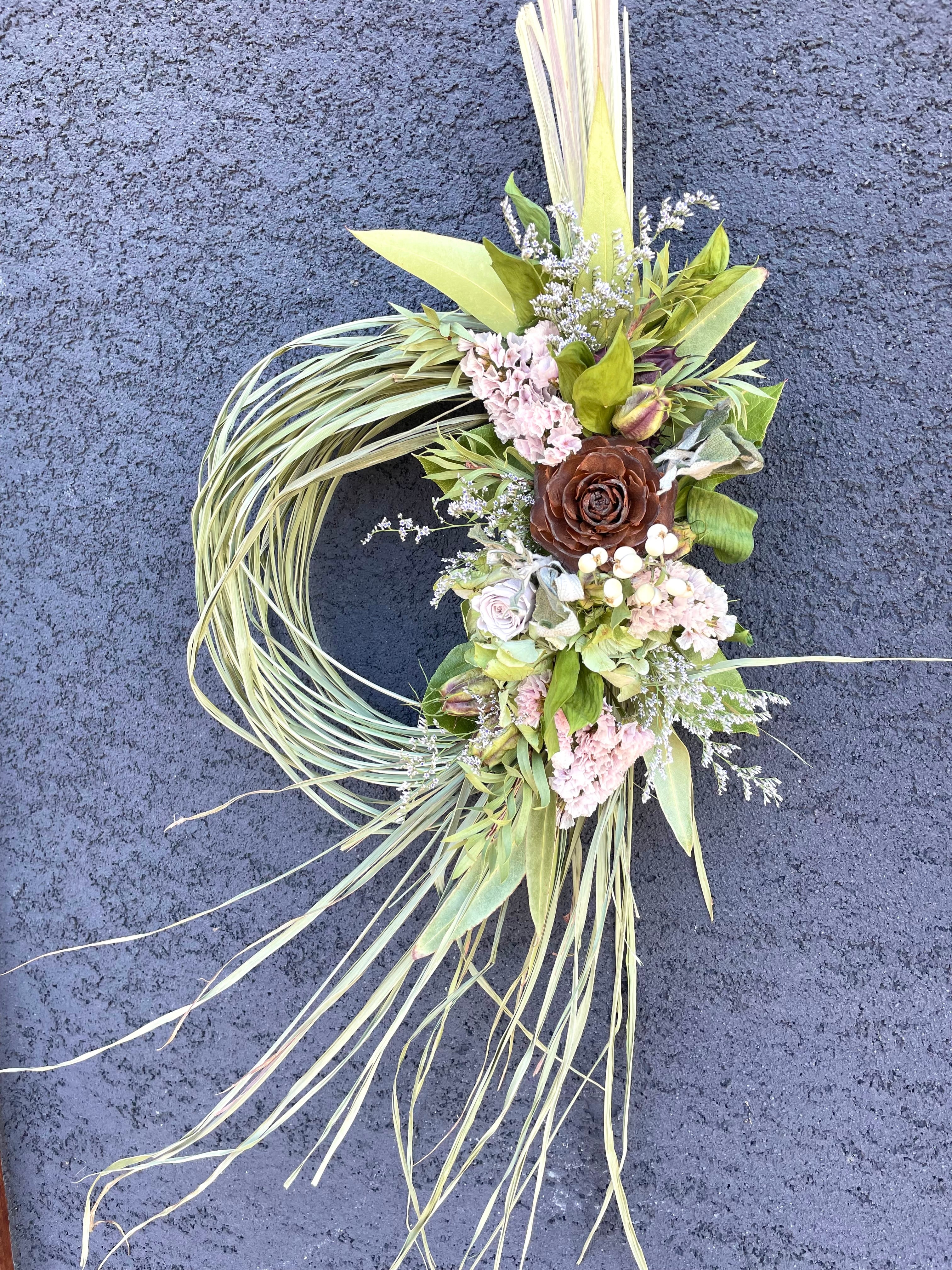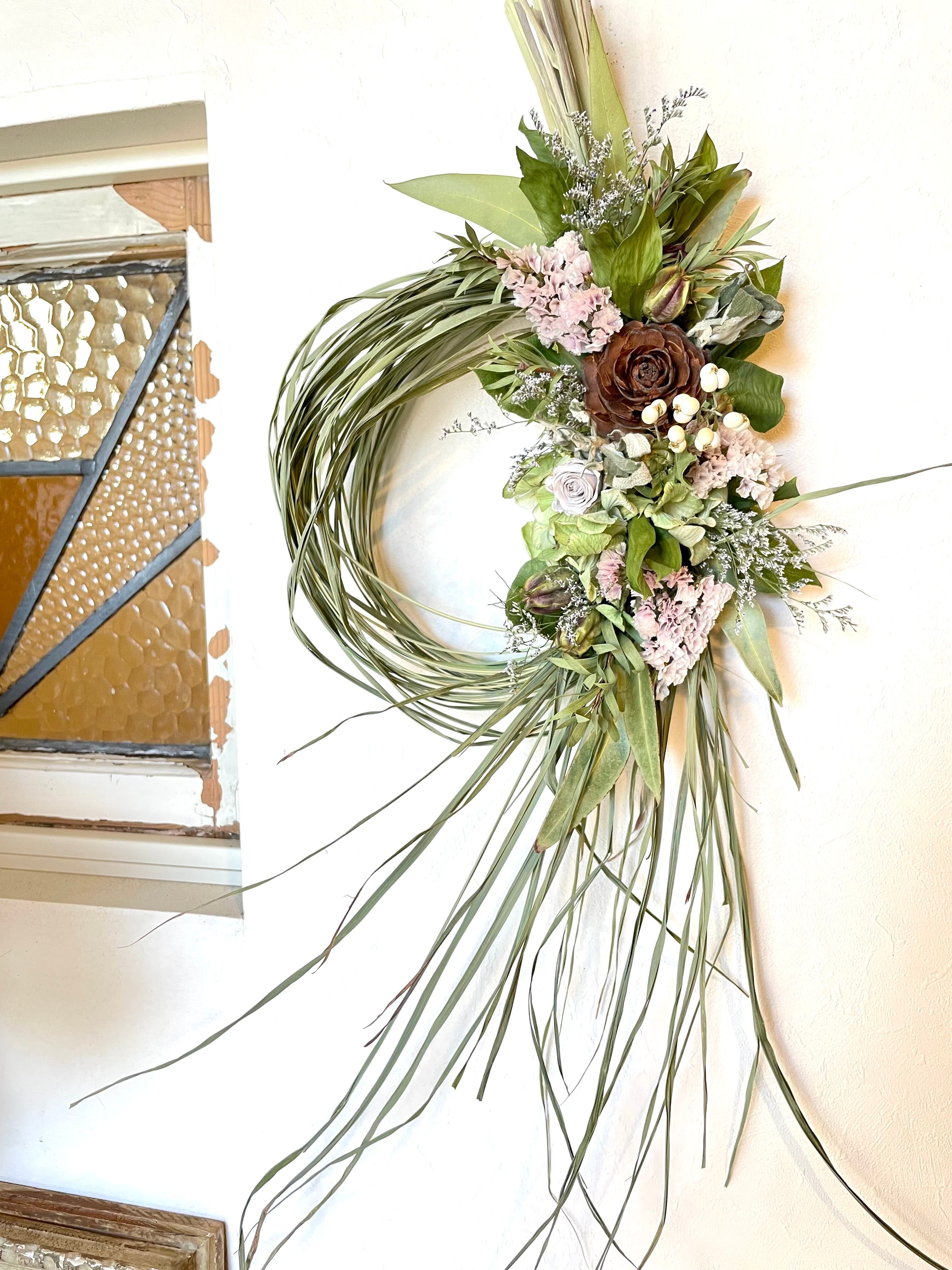 香りも色も楽しめる、ドライフラワーならではのリース。