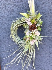 使って、シックな色合いのリースに仕上げました。ブラウンのシダローズで落ち着いた雰囲気に。