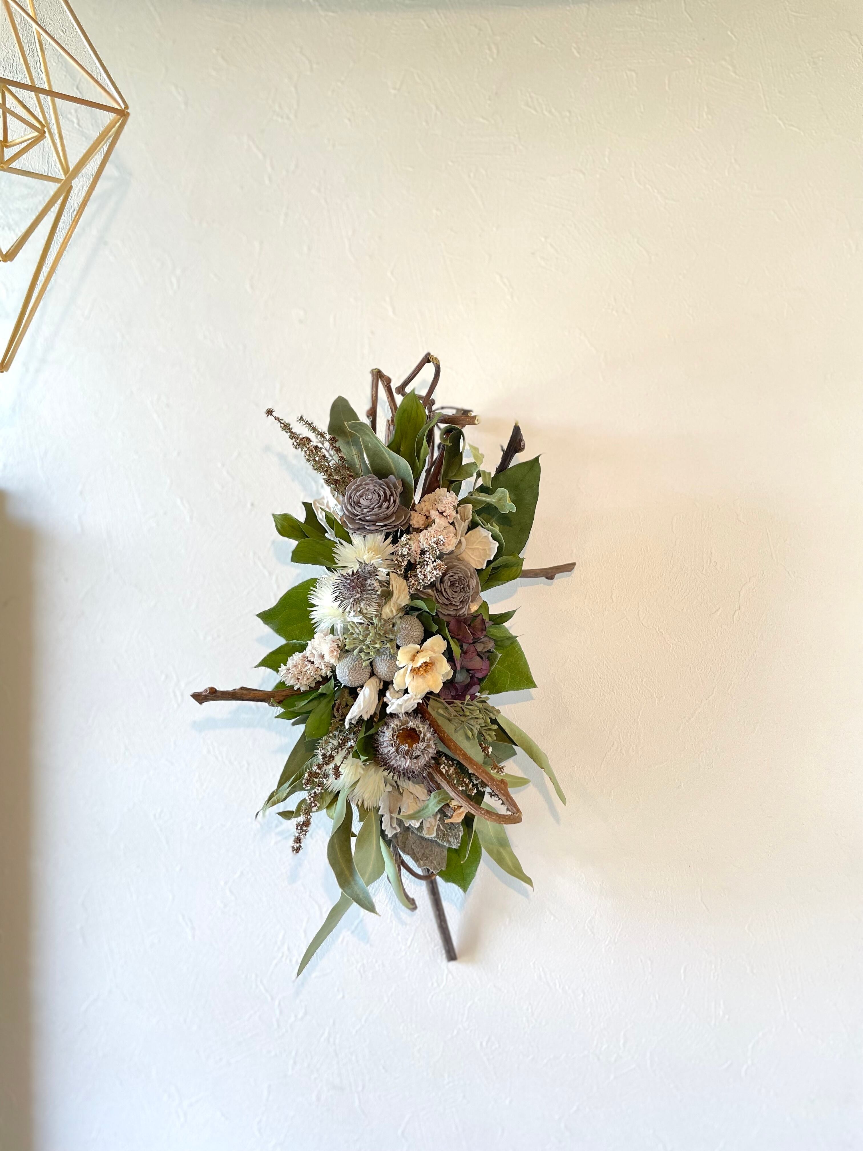 【DF-257 キウイヅルのアレンジ(白×グレー)・ドライフラワー】